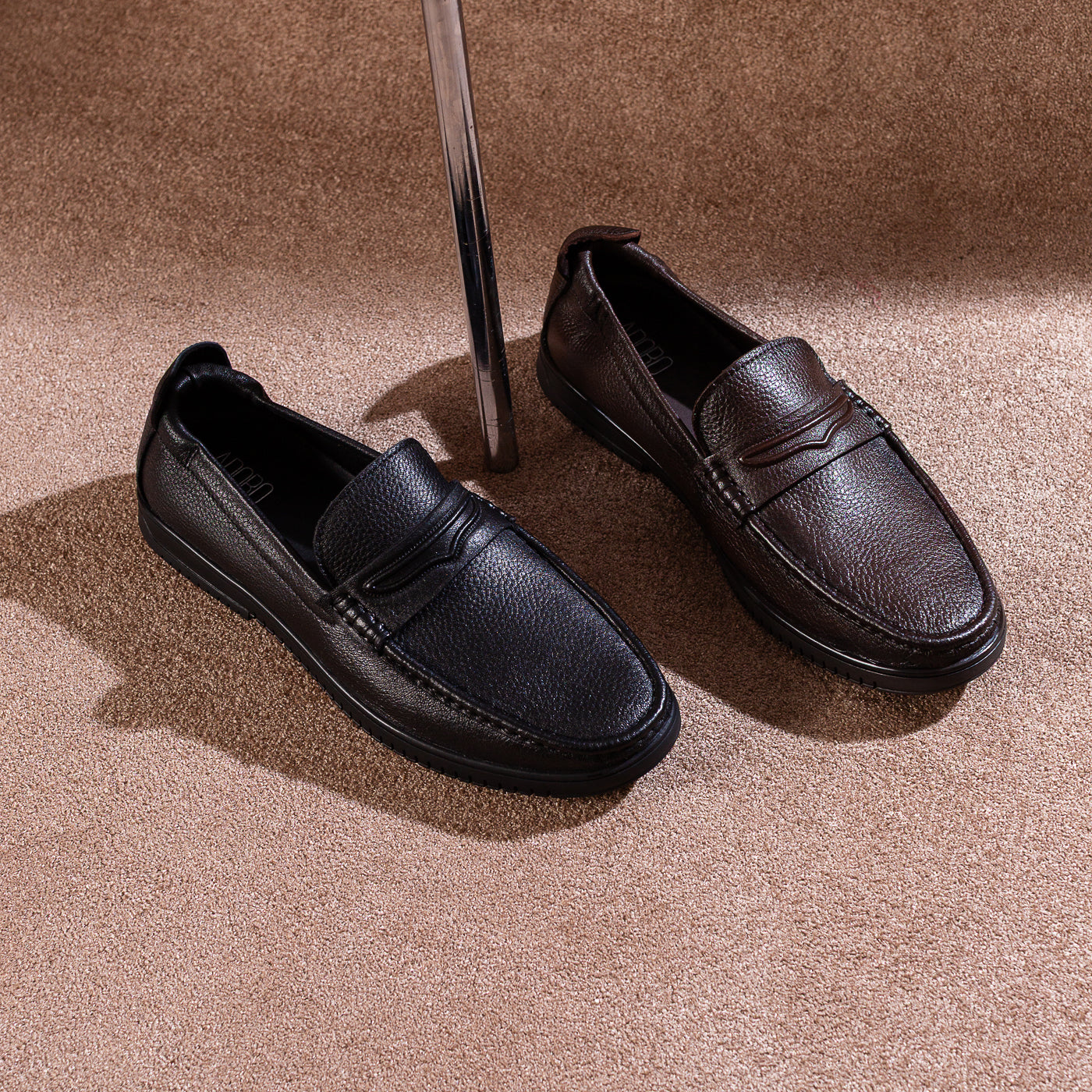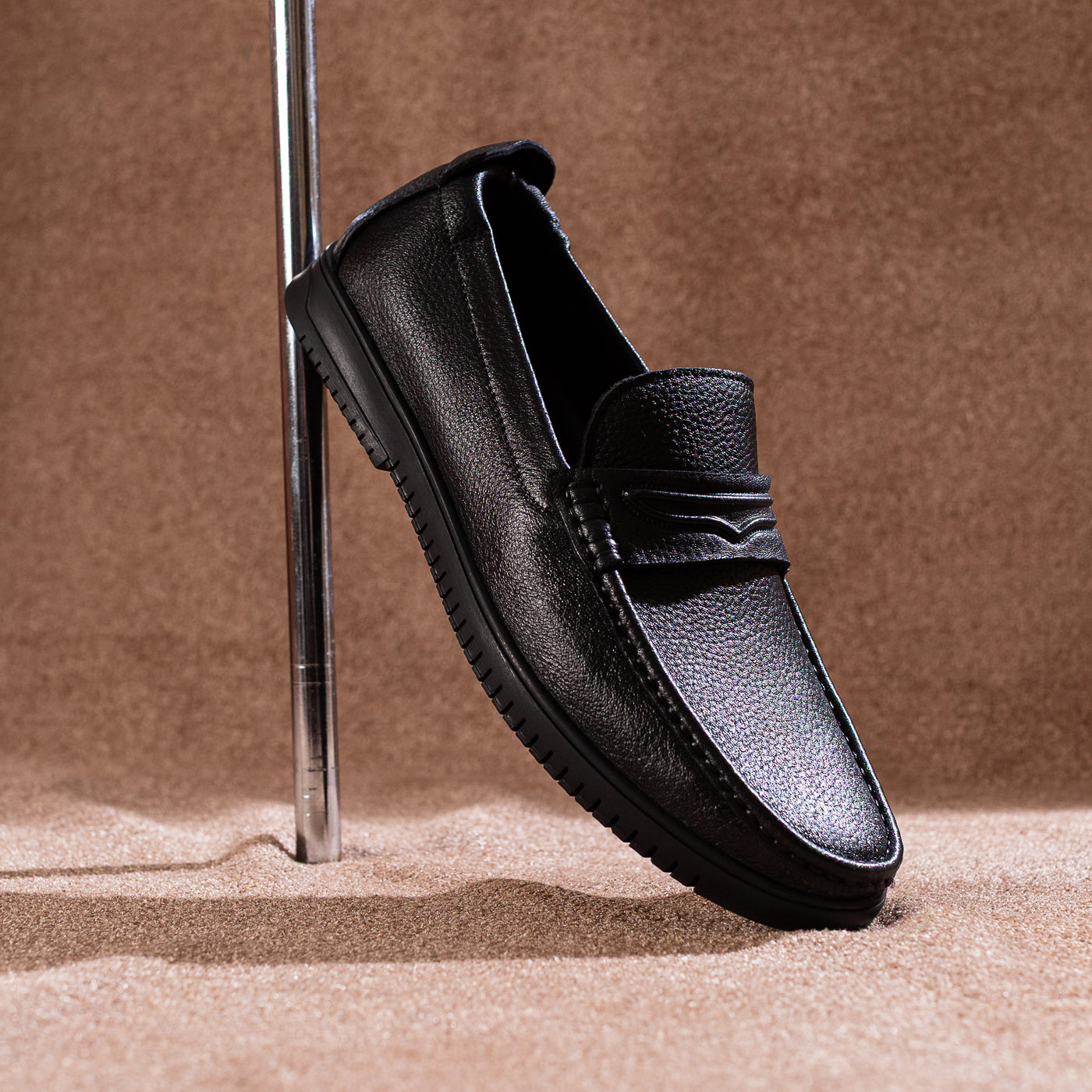 These men’s loafers are designed with a clean, streamlined profile that balances polish and practicality. The smooth upper is complemented by subtle stitching and a classic slip on construction, offering a sharp look without unnecessary detail. A flat sole ensures steady comfort and ease of movement, making them suitable for long hours of wear.
