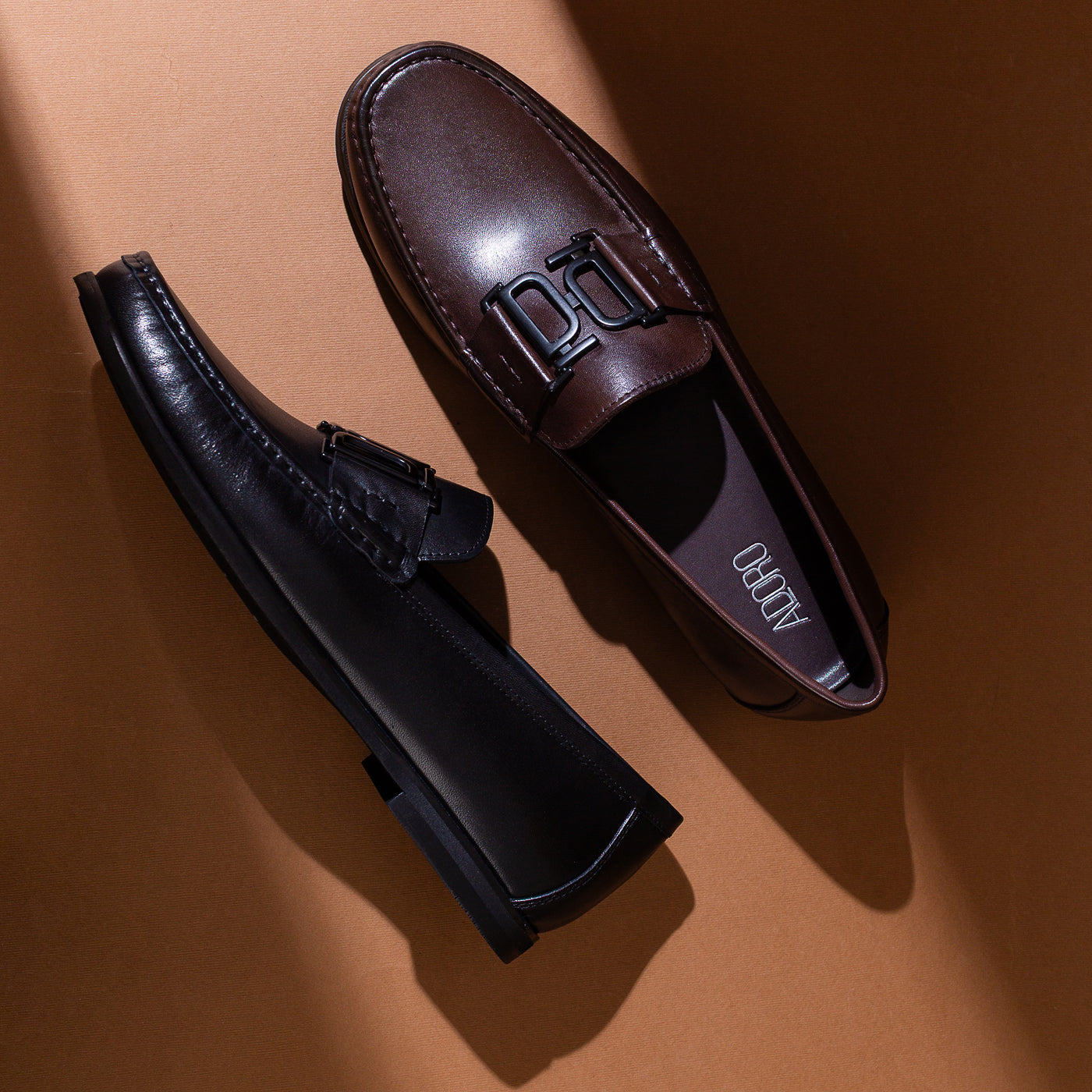 These men’s loafers bring a polished edge to everyday sophistication. Designed with a sleek silhouette and a distinguished metal accent, they offer a balance of timeless styling and modern detail. The smooth upper, structured profile, and cushioned interior ensure comfort without compromising on presence.