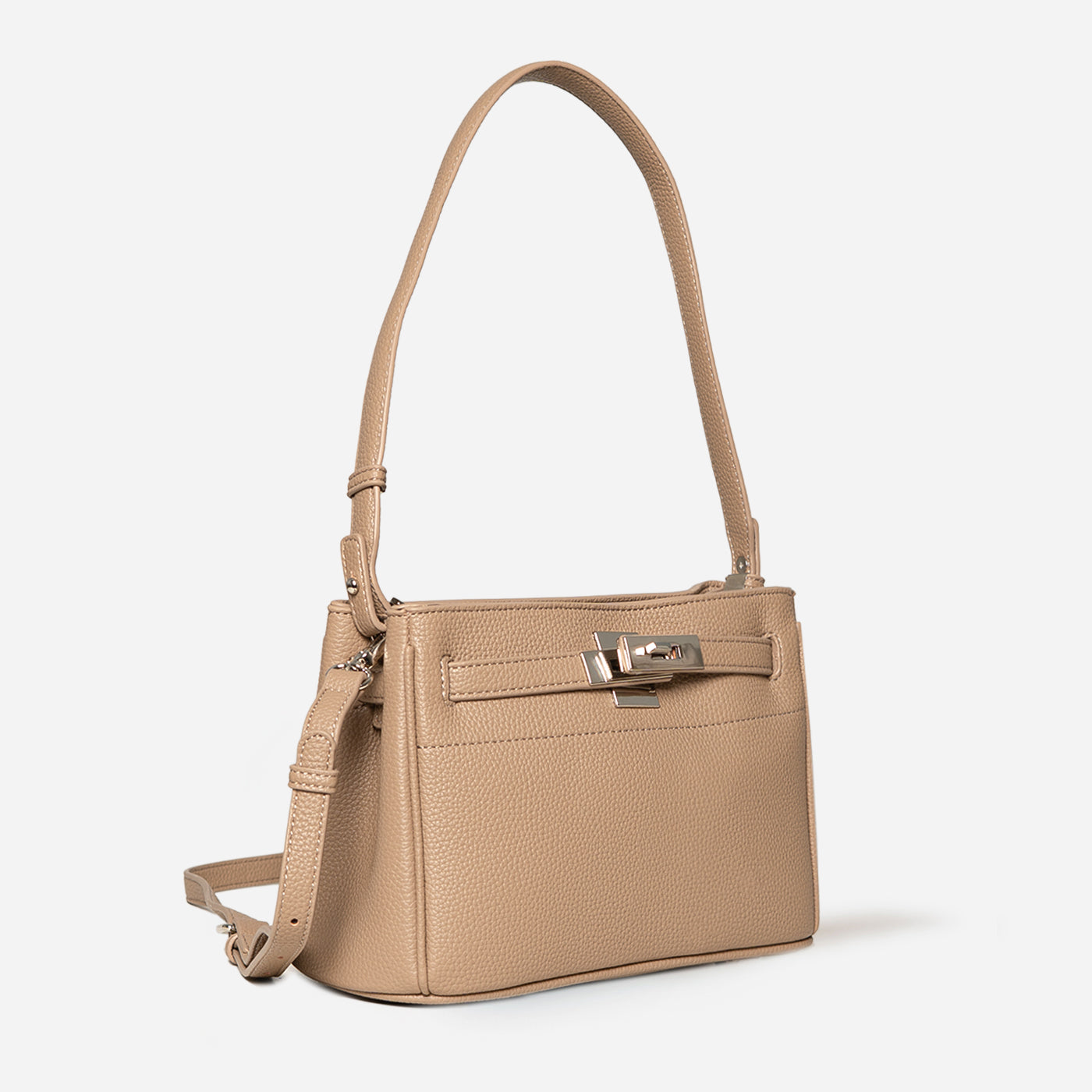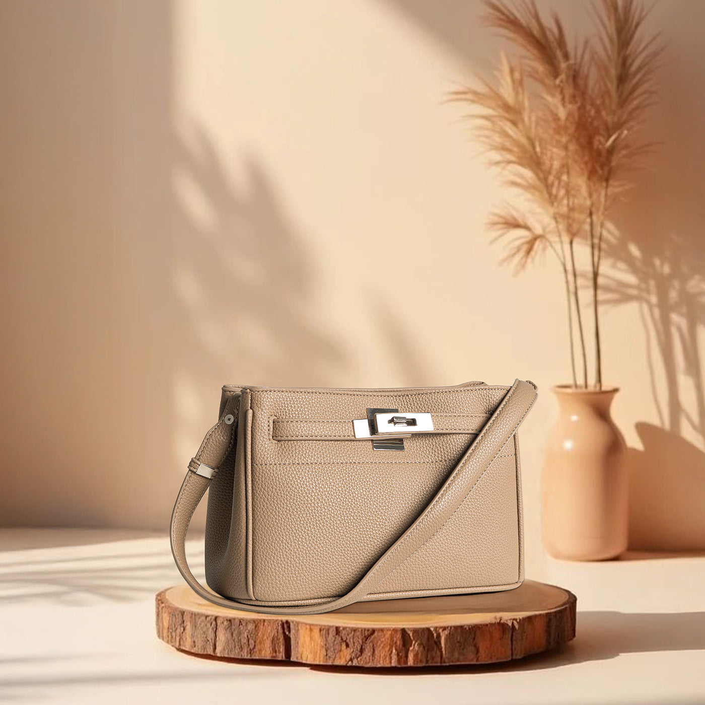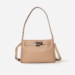 The Vogue Edge Satchel is a refined blend of sophistication and everyday practicality. With its structured silhouette and textured finish, this satchel exudes understated luxury while offering ample space for your daily essentials. The sleek metallic clasp at the front adds a modern edge, making it a versatile accessory that transitions seamlessly from office hours to evening outings. Designed with both top handles and an adjustable crossbody strap, it provides flexibility in carrying style, while the interior compartments keep your belongings organized. Perfect for the woman who values elegance with function, this satchel elevates every look with timeless charm and contemporary flair.