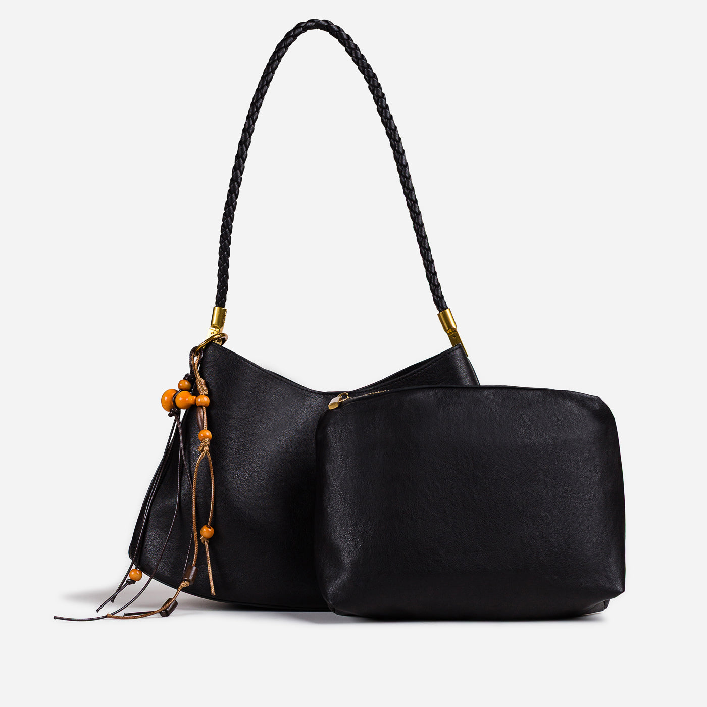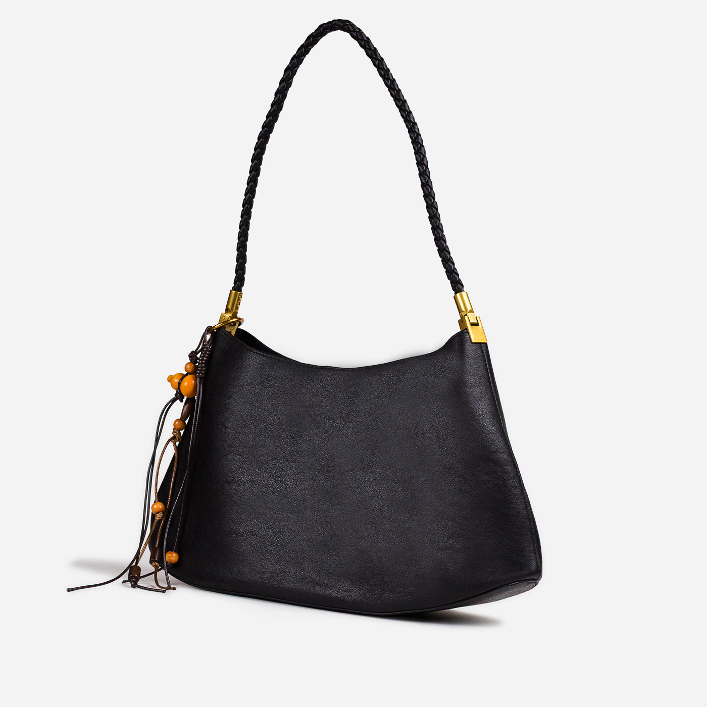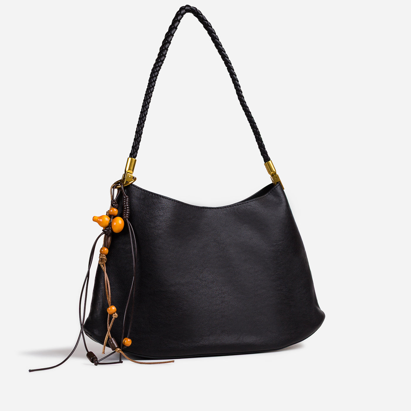 Sleek and versatile, this shoulder bag brings together modern simplicity and handcrafted charm. Featuring a smooth, structured body with a softly curved silhouette, it’s elevated by a braided shoulder strap and subtle tassel detailing for a refined yet relaxed feel. Designed to move effortlessly from day to evening, this piece offers understated elegance with practical appeal.
