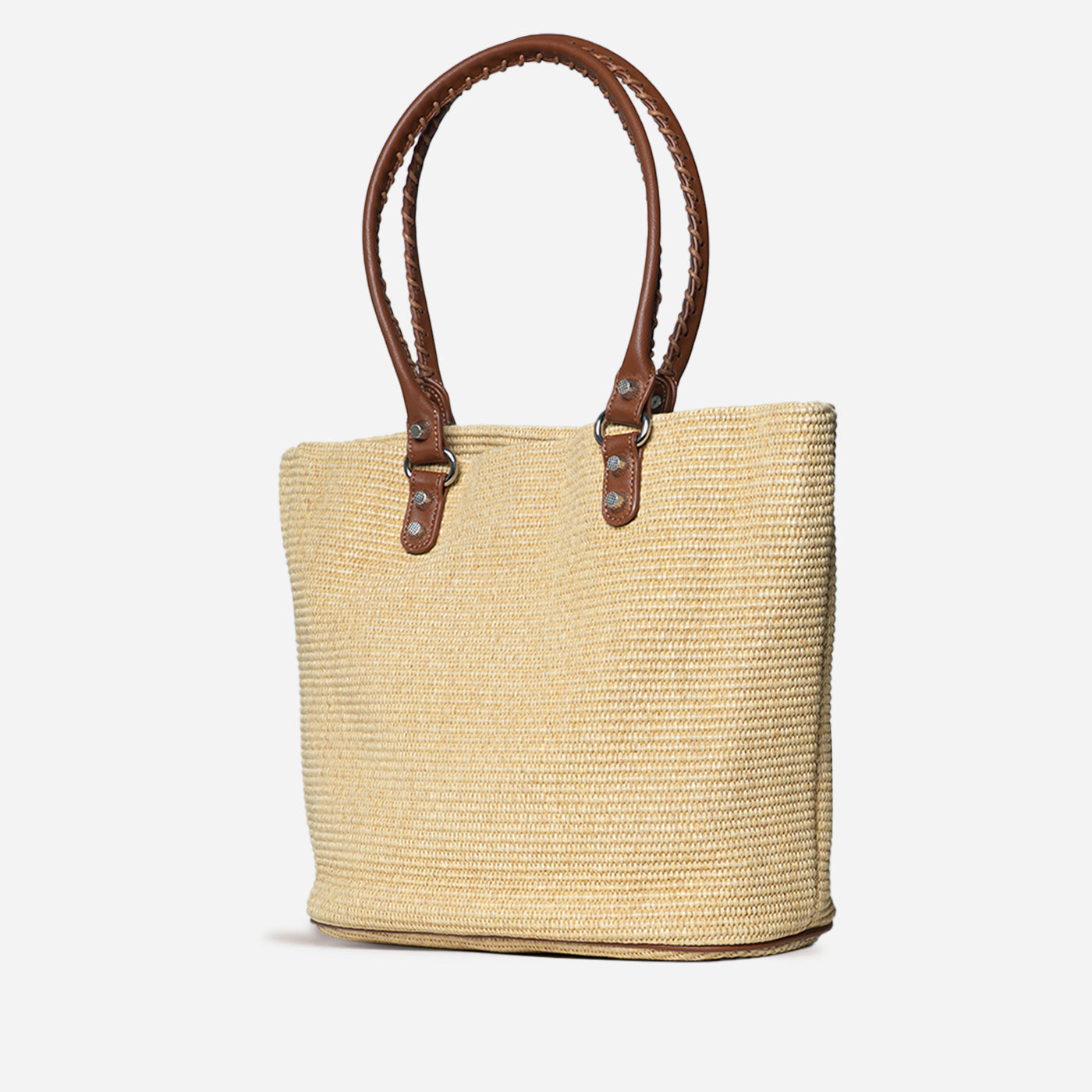 Effortlessly chic and perfect for warm-weather styling, this woven tote blends natural texture with refined leather detailing. Designed for everyday ease, it offers a spacious interior while maintaining a lightweight, polished look ideal for casual outings or relaxed weekends.