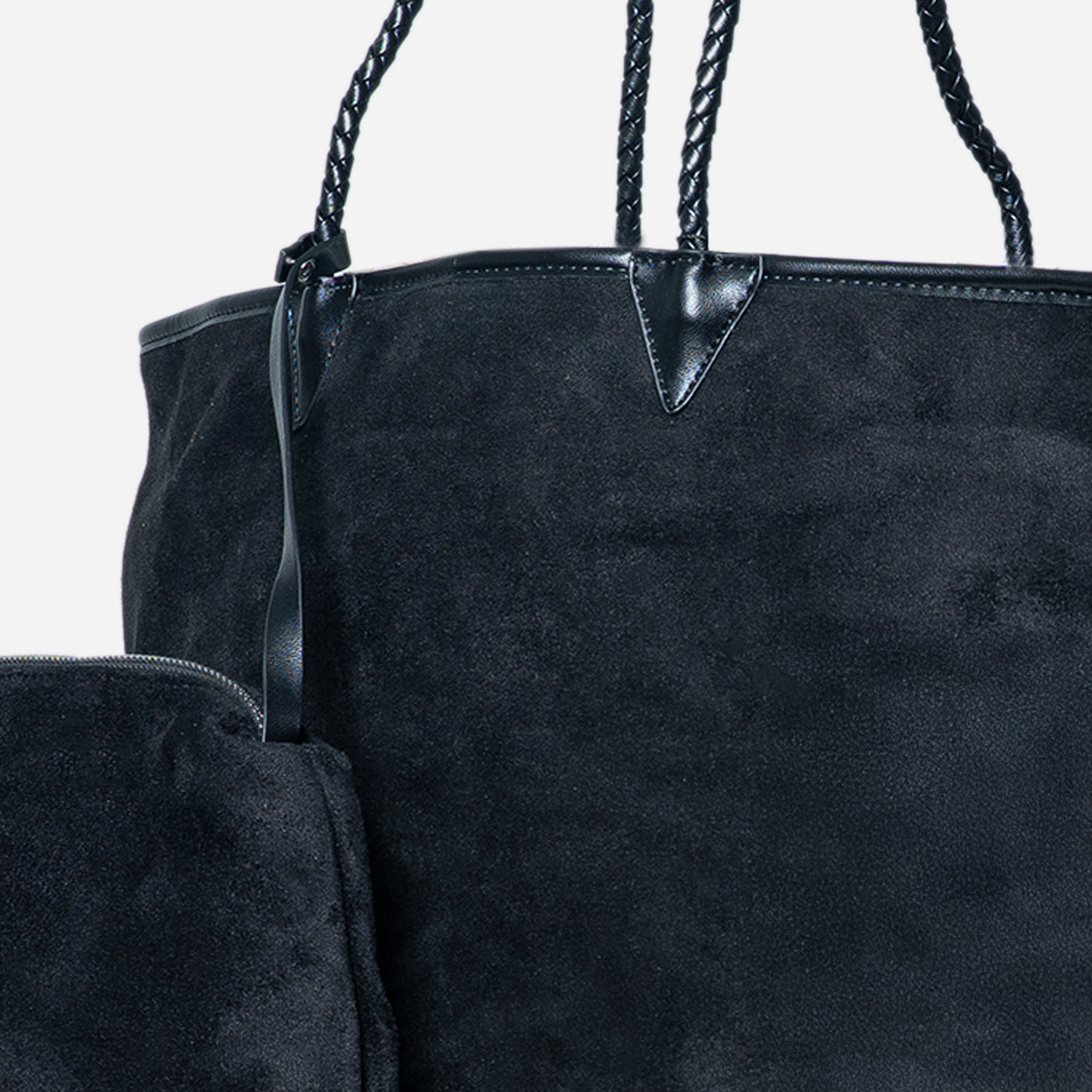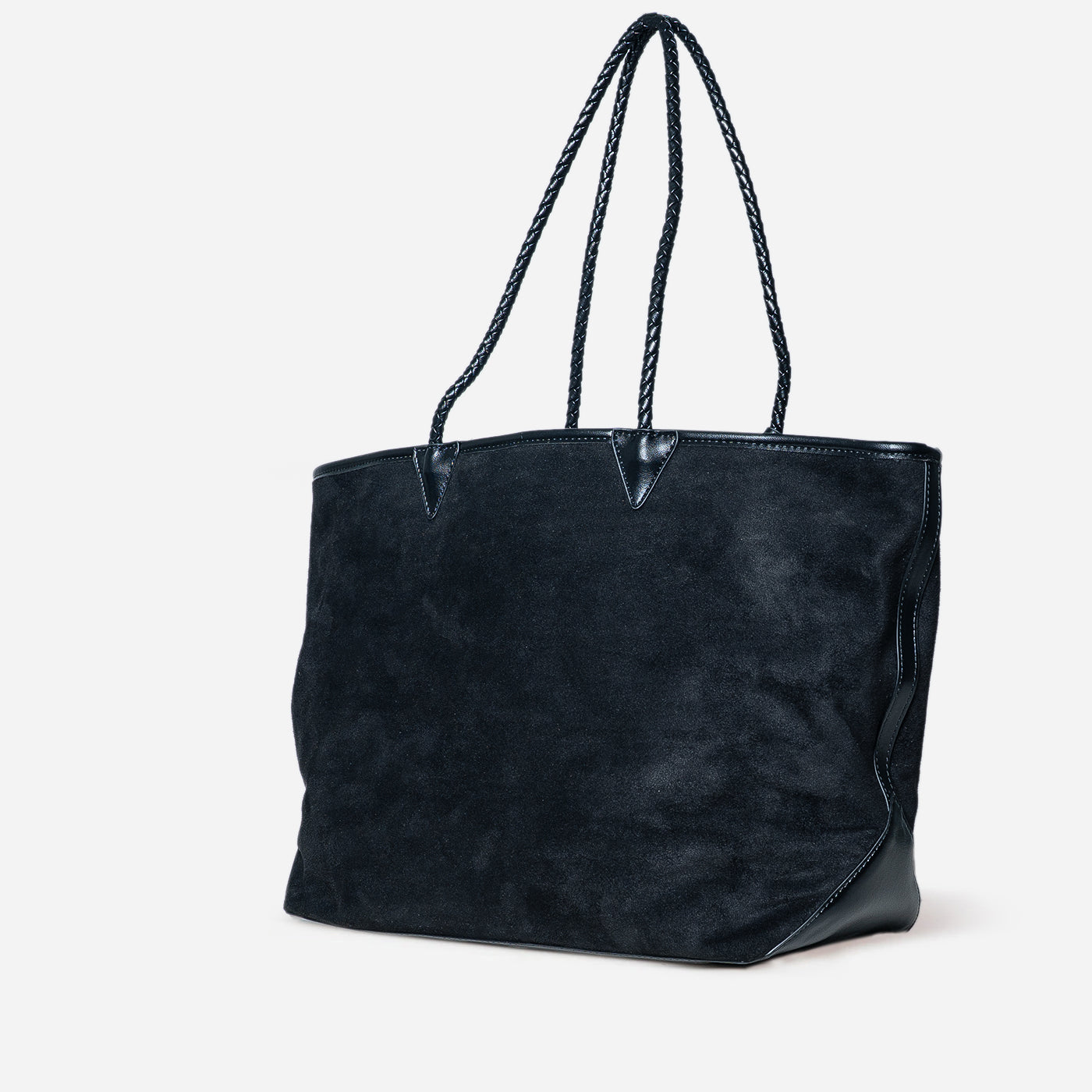This elegant tote showcases deep navy suede with a luxurious matte finish. The slouchy silhouette creates effortless style, while the braided leather handles provide comfortable carrying. The spacious interior accommodates daily essentials with ease. Ideal for shopping trips, casual meetings, and relaxed occasions where sophisticated simplicity meets everyday practicality.