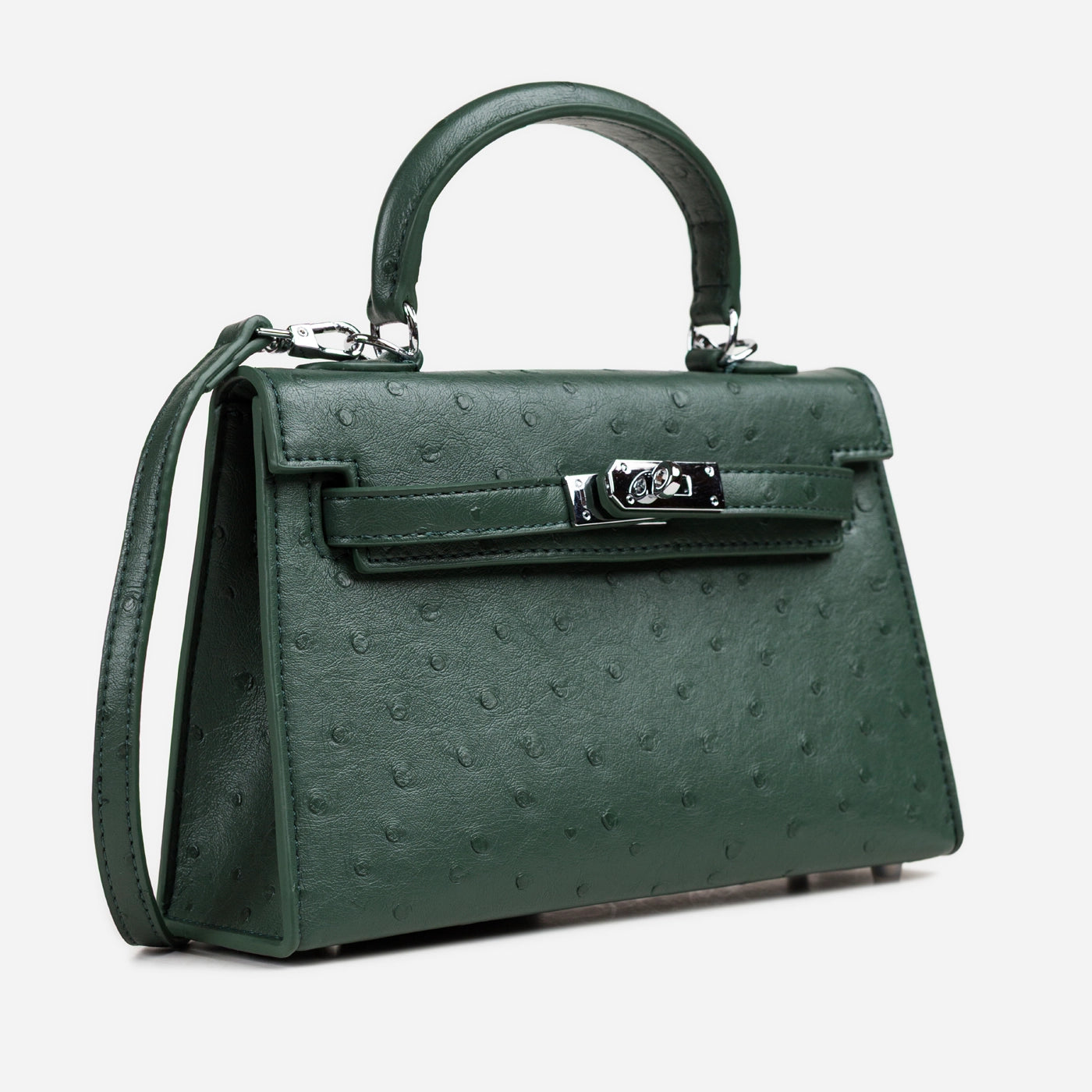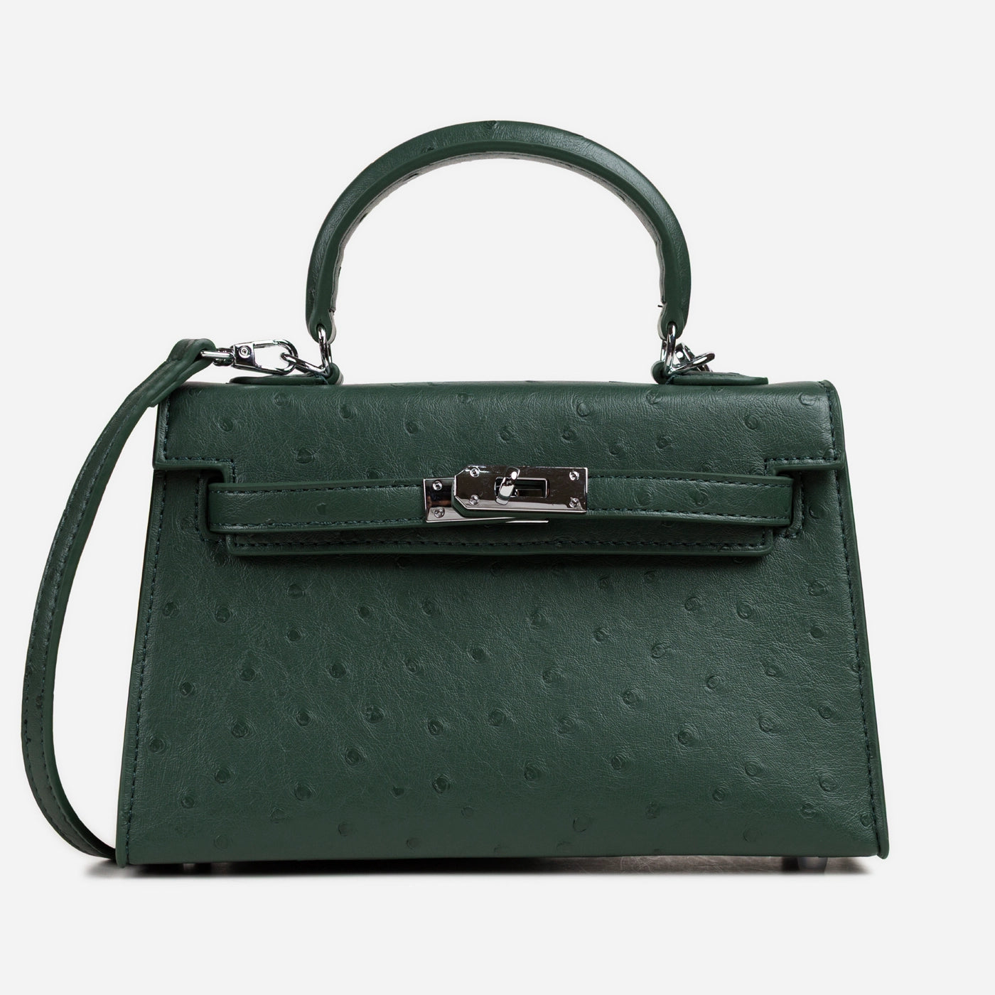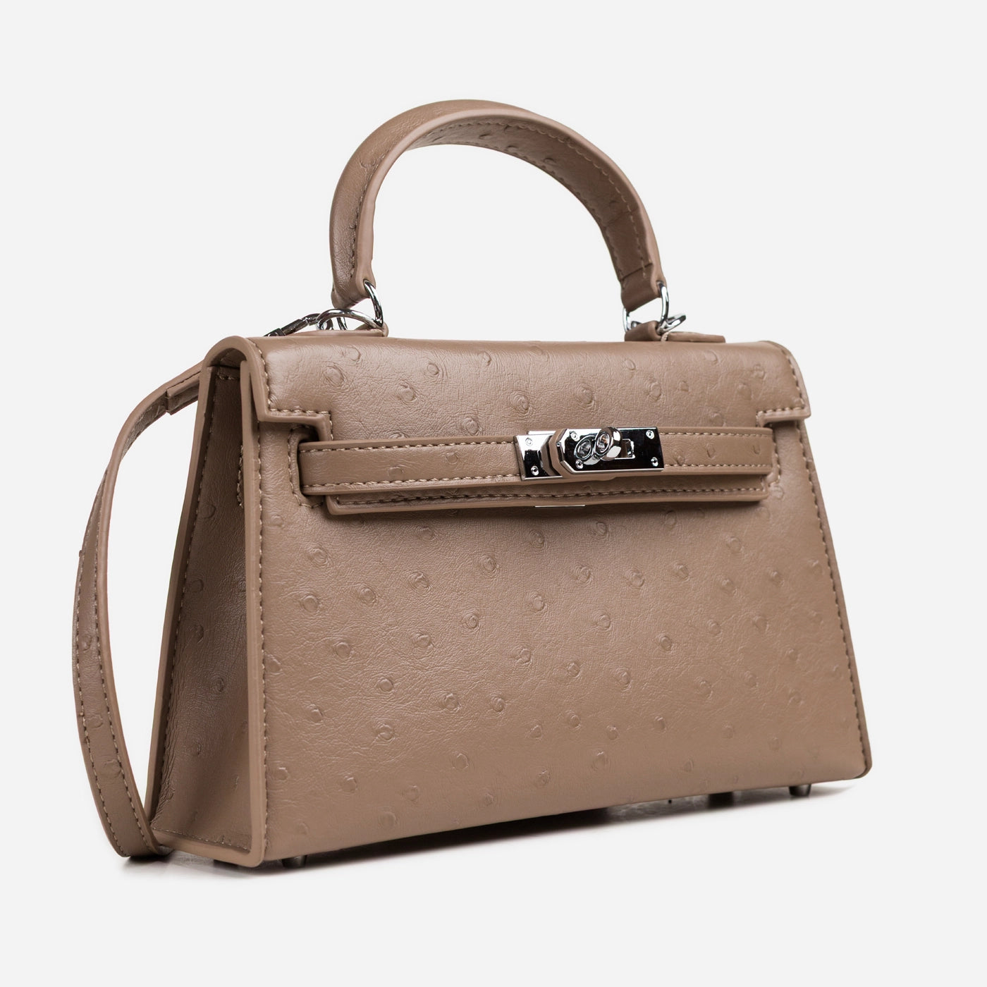 Ostrich Emboss Mini Bag, Turn-Lock Flap.