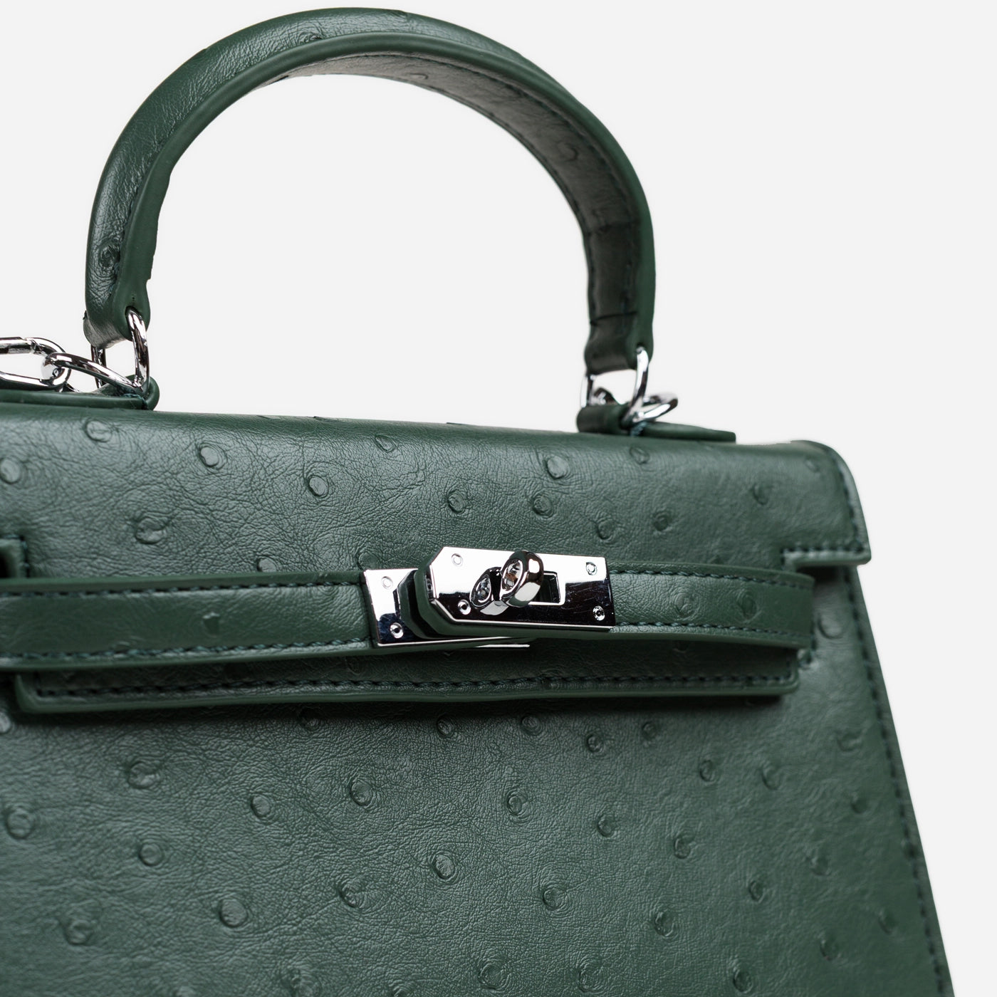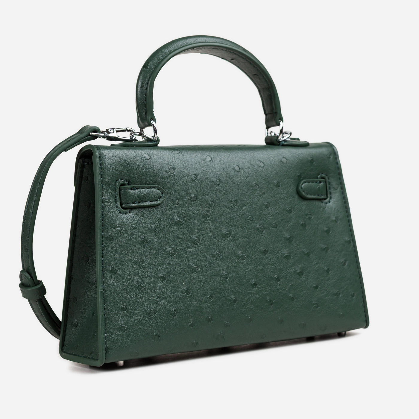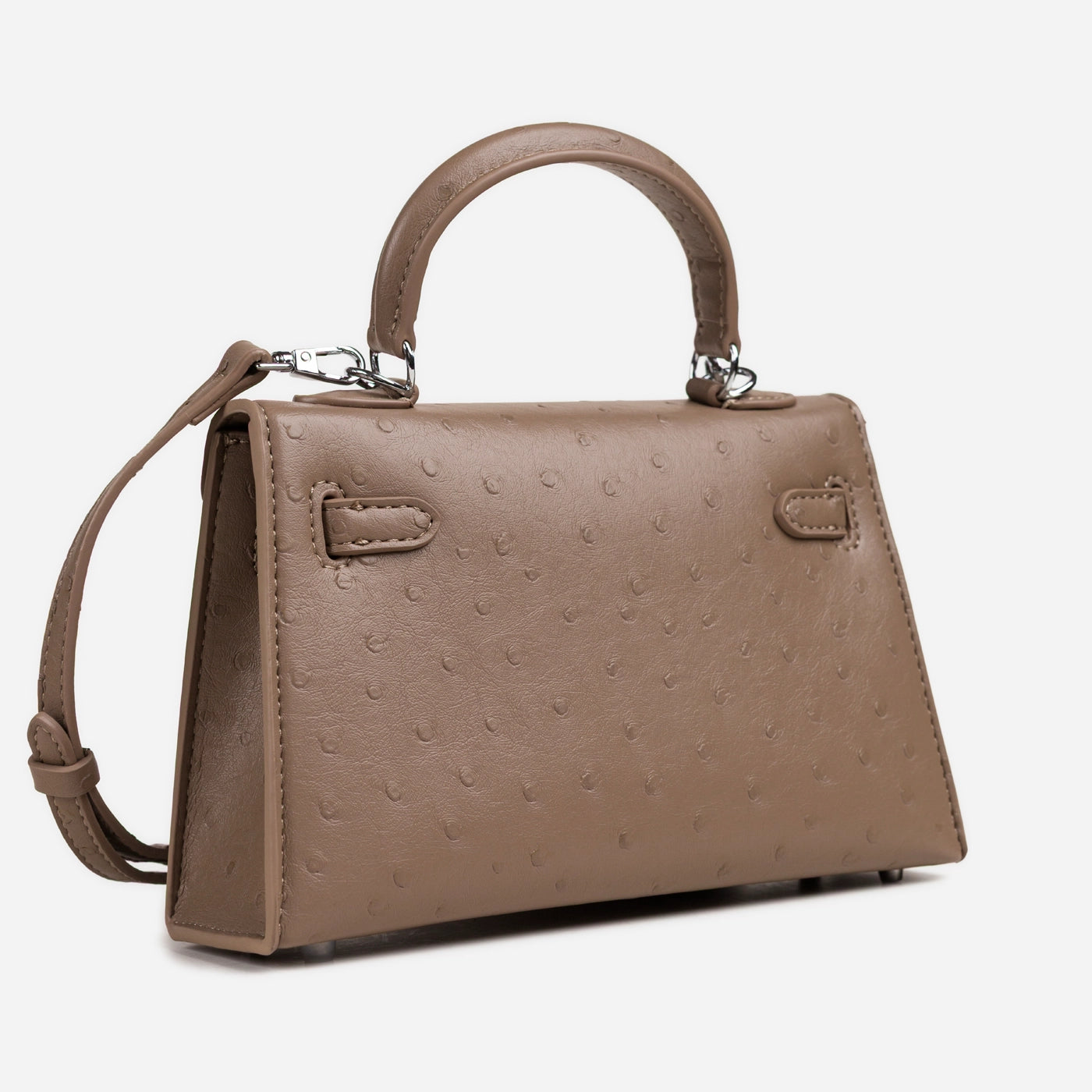 Ostrich Emboss Mini Bag, Turn-Lock Flap.