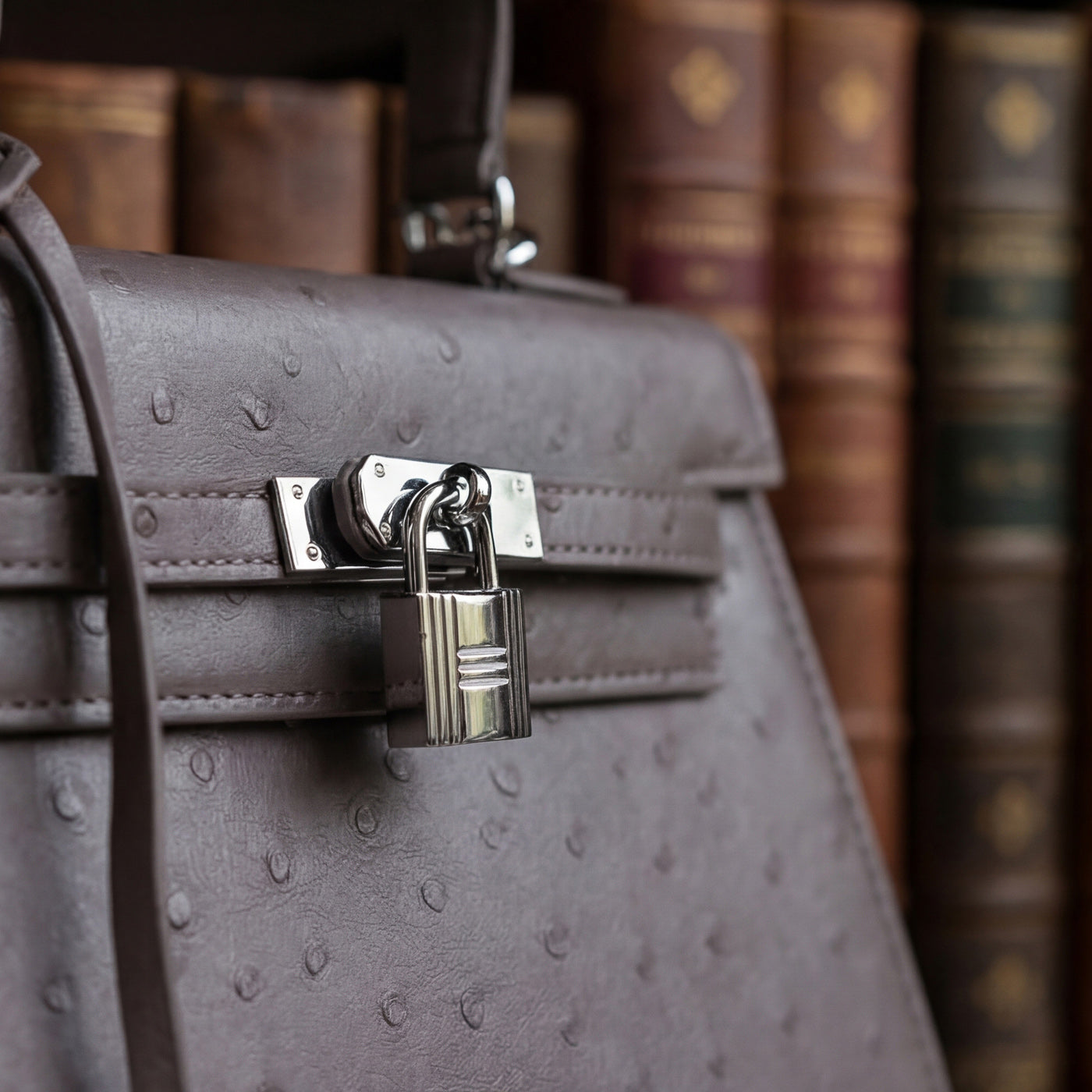 - Hardware: Polished metal hardware with padlock detail and premium finish