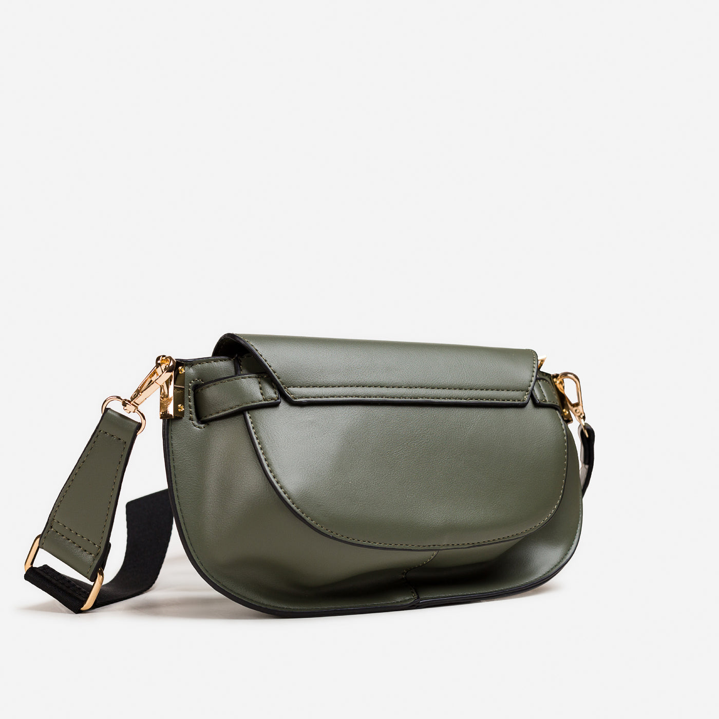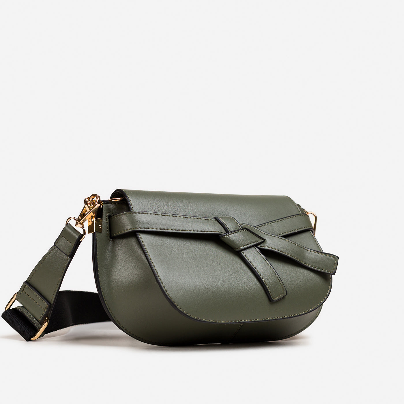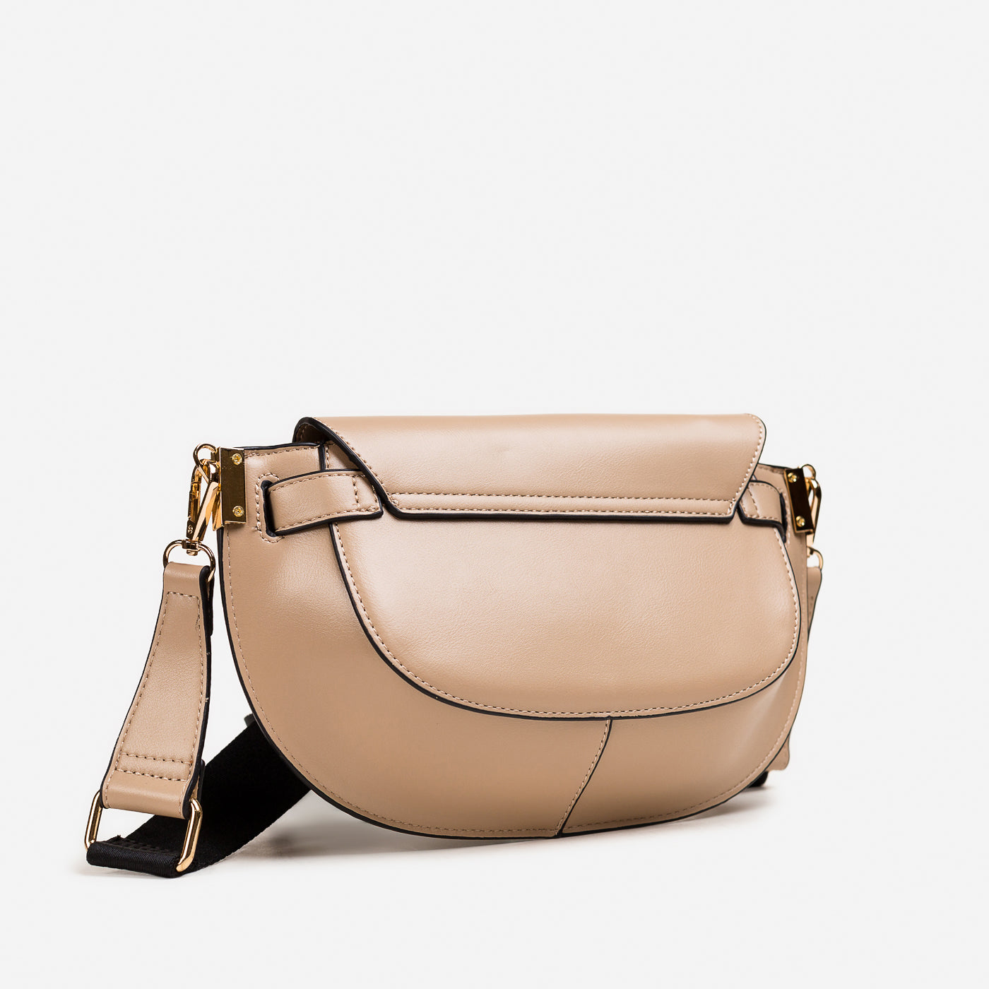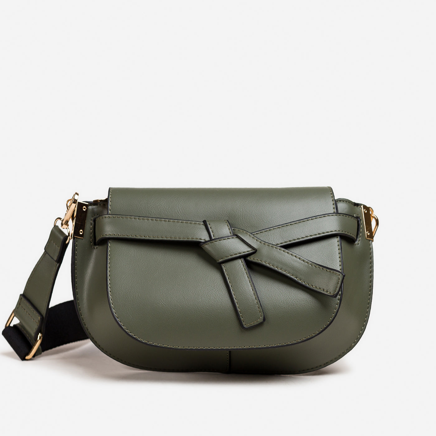 The Adoro Knot Luxe saddle bag brings a modern twist to classic elegance. Crafted from premium smooth synthetic material, it features a distinctive knotted strap detail on the flap, adding a refined yet playful edge. The curved silhouette sits comfortably at your side, while the spacious interior and soft lining ensure practical storage. Designed with a detachable adjustable strap, it can be worn crossbody or on the shoulder for versatile styling. Perfect for both everyday wear and chic outings, it’s a statement of effortless sophistication.