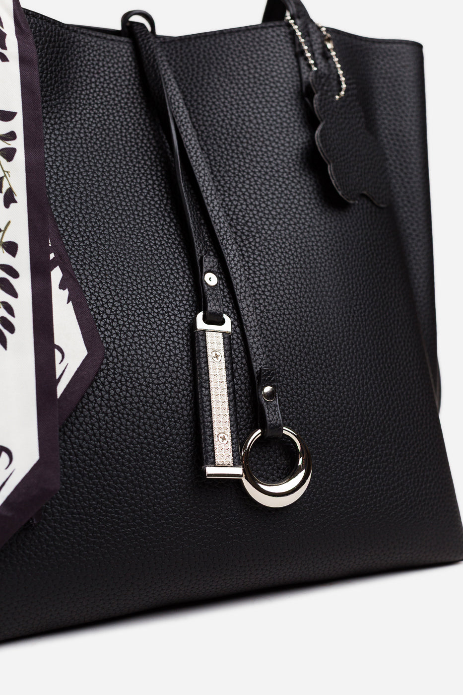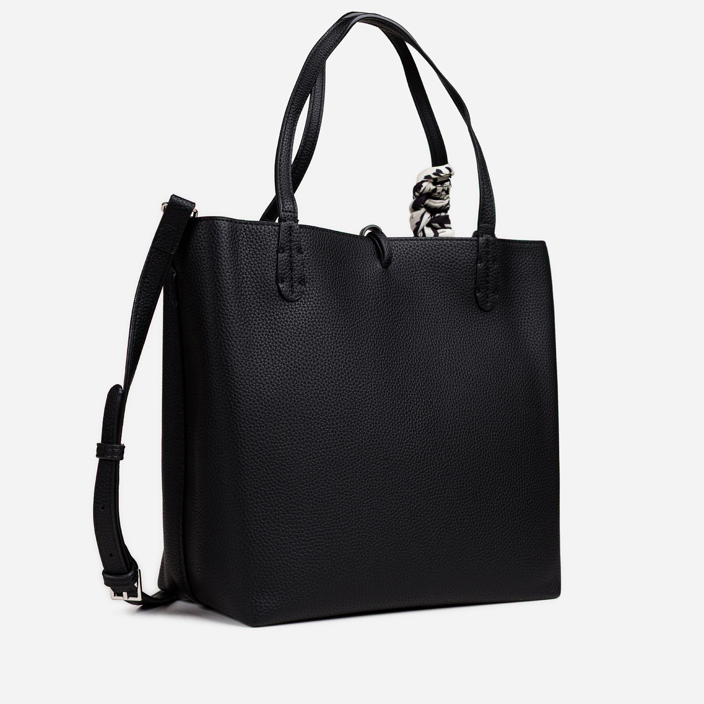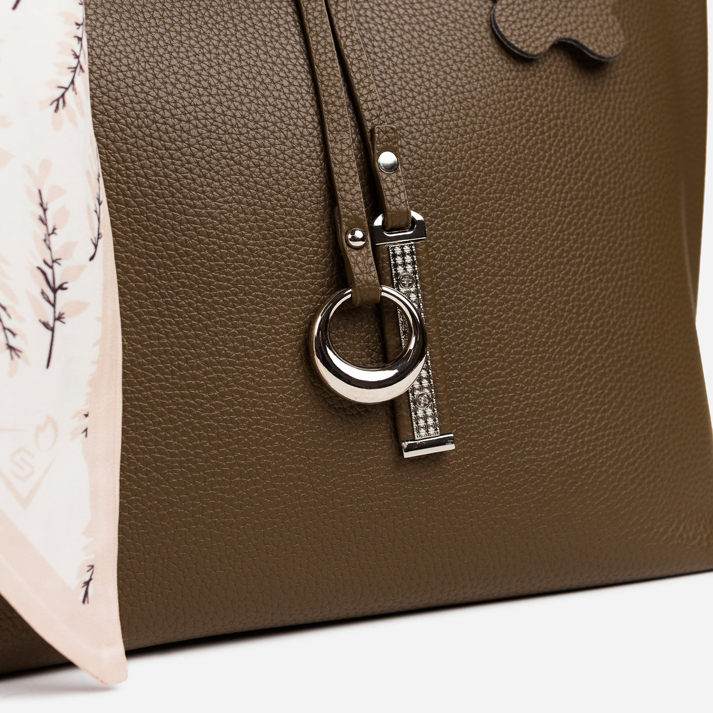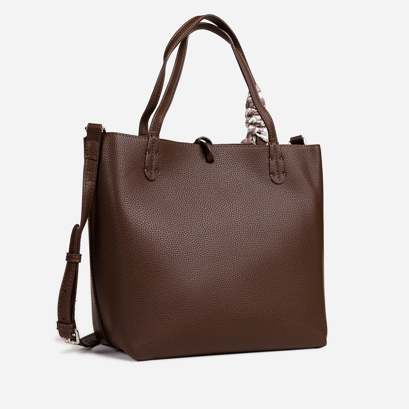 Timeless and effortlessly stylish, this tote is designed for everyday sophistication. Featuring a structured silhouette with a rich textured finish, it’s accented by elegant scarf detailing and subtle metallic charms that add character without overwhelming the look. Spacious and versatile, it’s the perfect companion for workdays, errands, or casual outings.