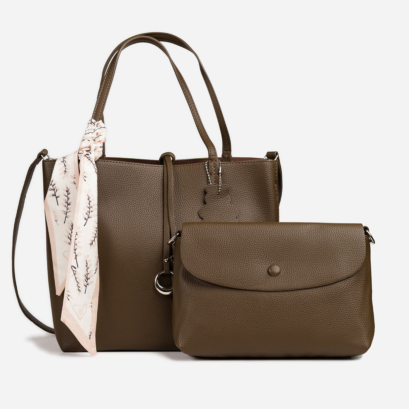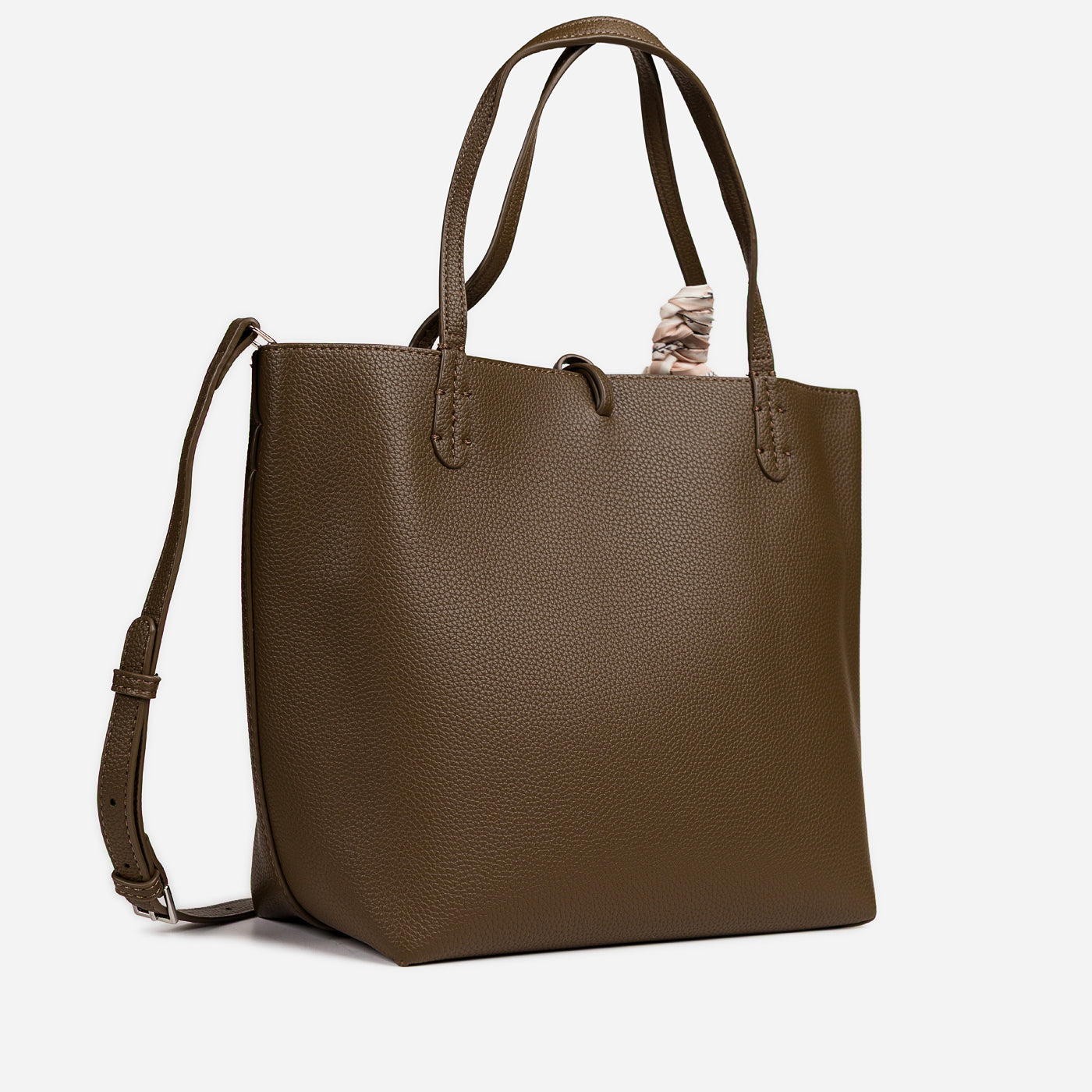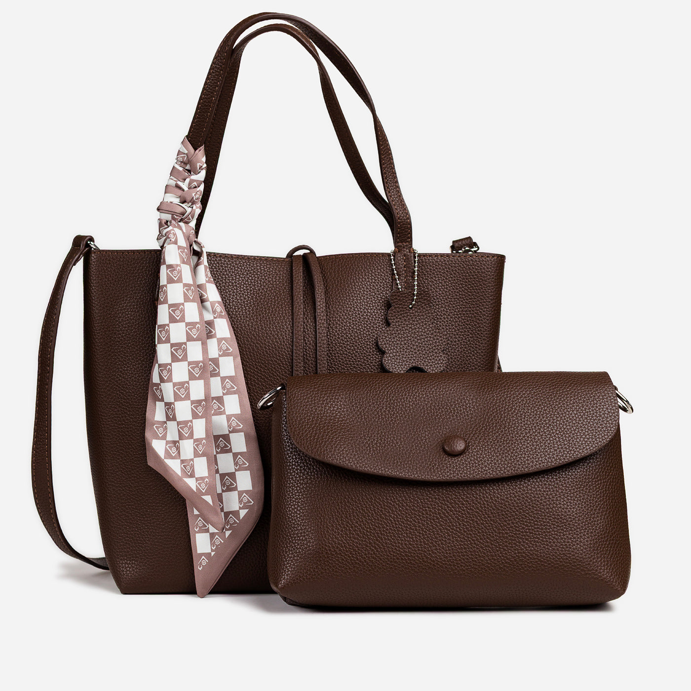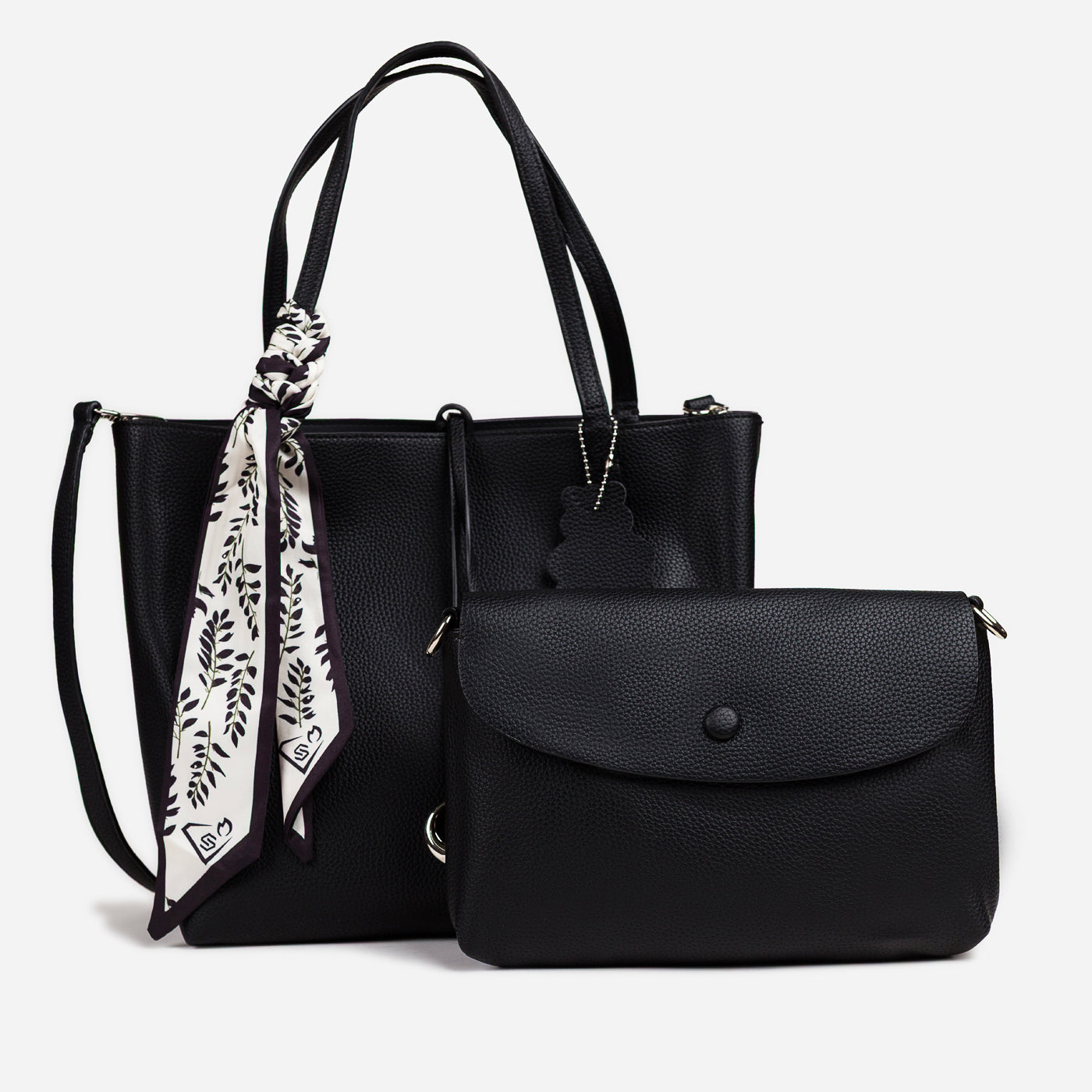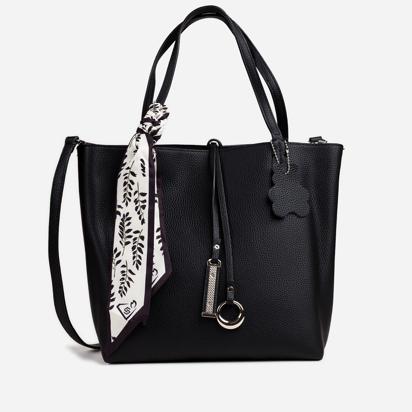 Timeless and effortlessly stylish, this tote is designed for everyday sophistication. Featuring a structured silhouette with a rich textured finish, it’s accented by elegant scarf detailing and subtle metallic charms that add character without overwhelming the look. Spacious and versatile, it’s the perfect companion for workdays, errands, or casual outings.