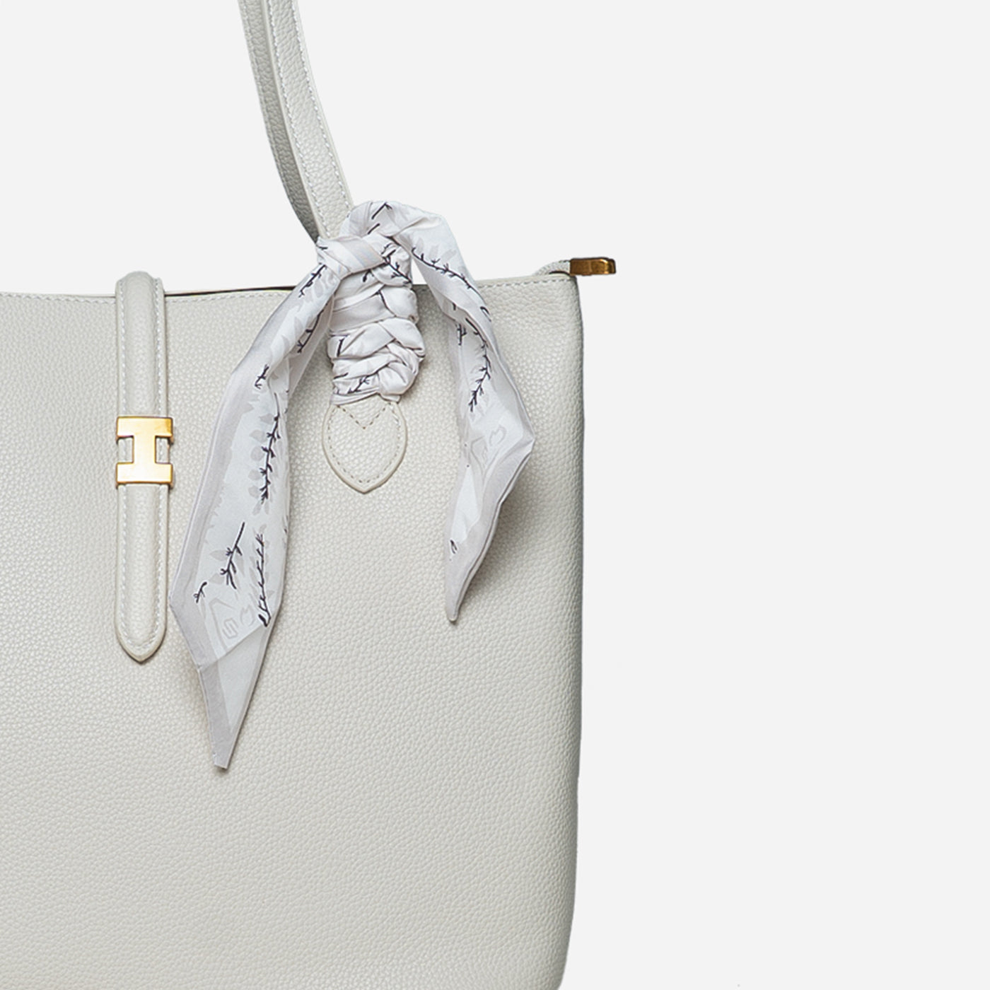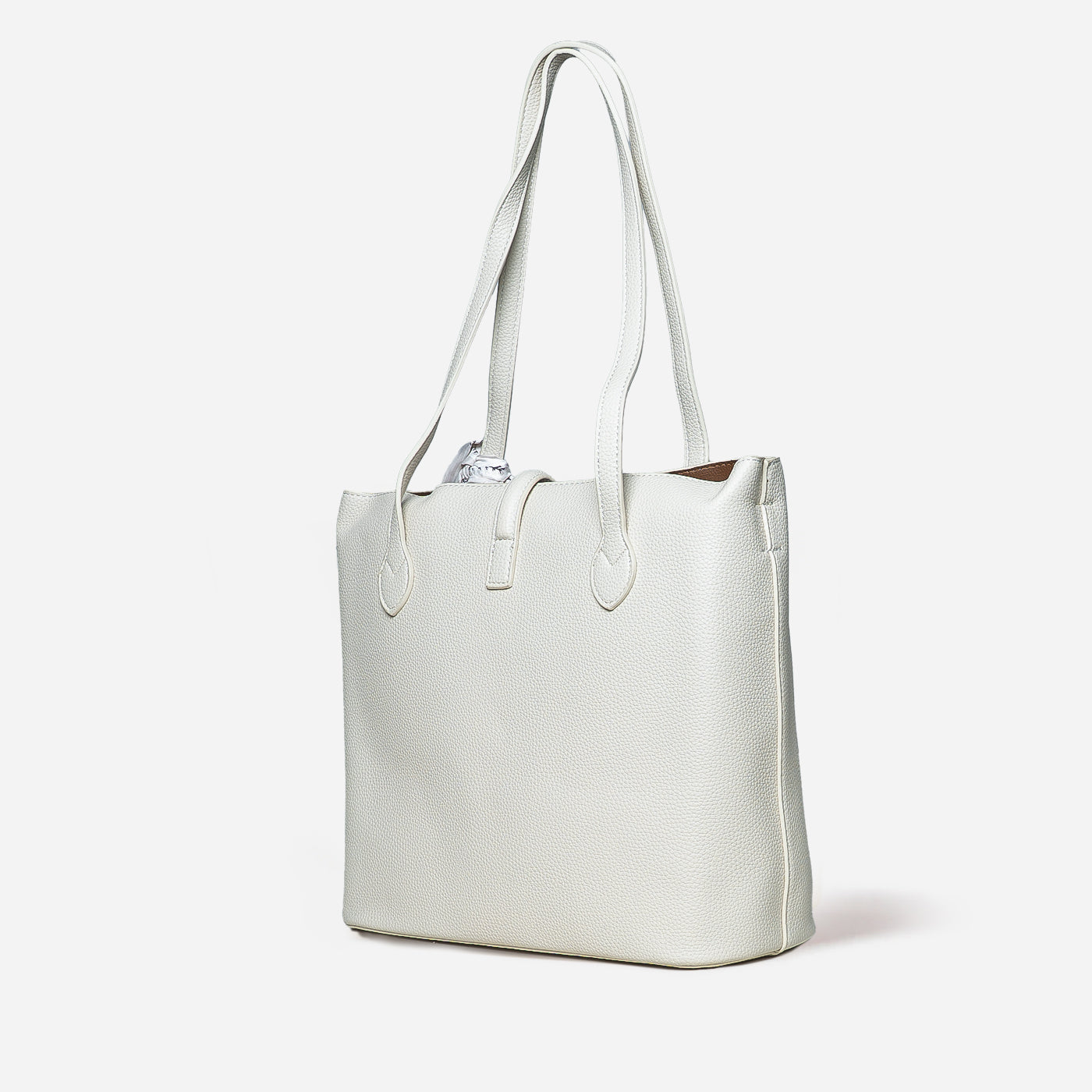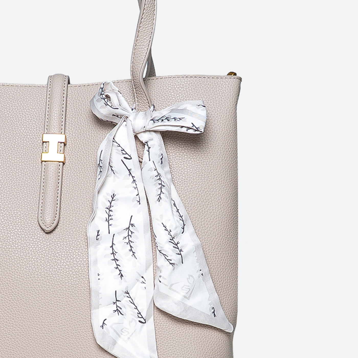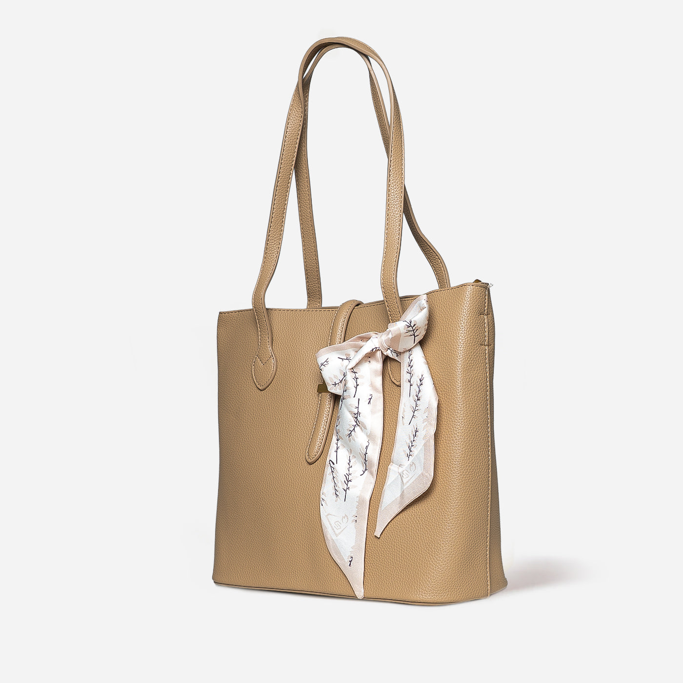 Graceful and timeless, this refined tote blends clean structure with a soft, feminine touch. The smooth textured finish and delicate scarf detail add effortless charm, making it perfect for everyday sophistication.