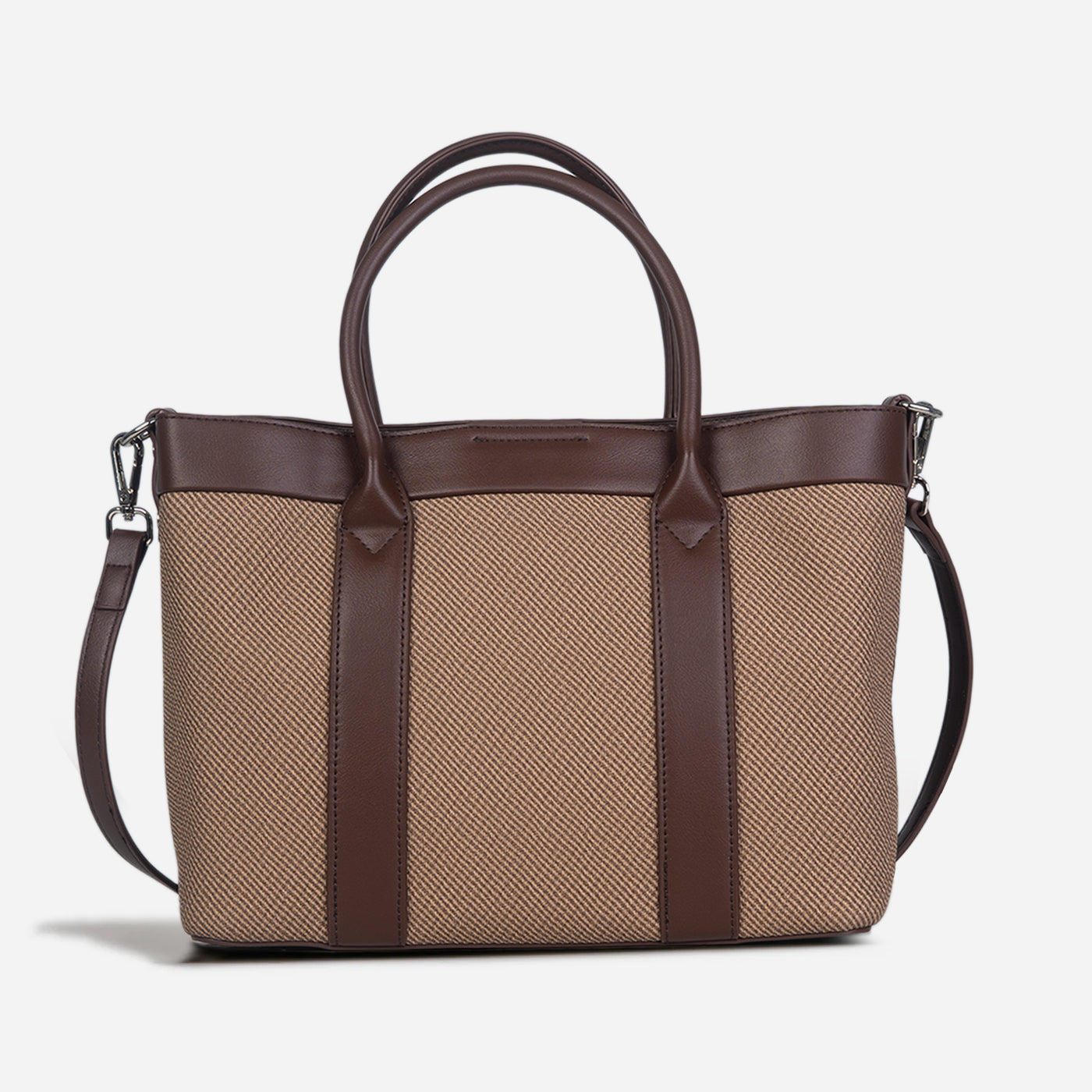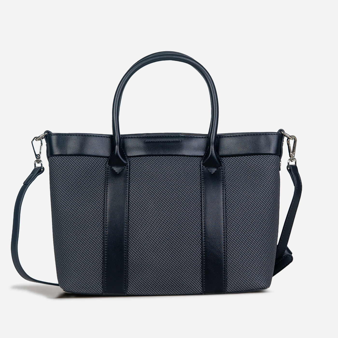 Effortlessly refined and designed for everyday elegance, this structured tote brings together timeless style and modern practicality. Crafted with a textured body and smooth leather accents, it offers a balanced blend of durability and sophistication. The structured silhouette keeps its shape beautifully, while the sturdy top handles and optional shoulder strap provide versatile carrying options.