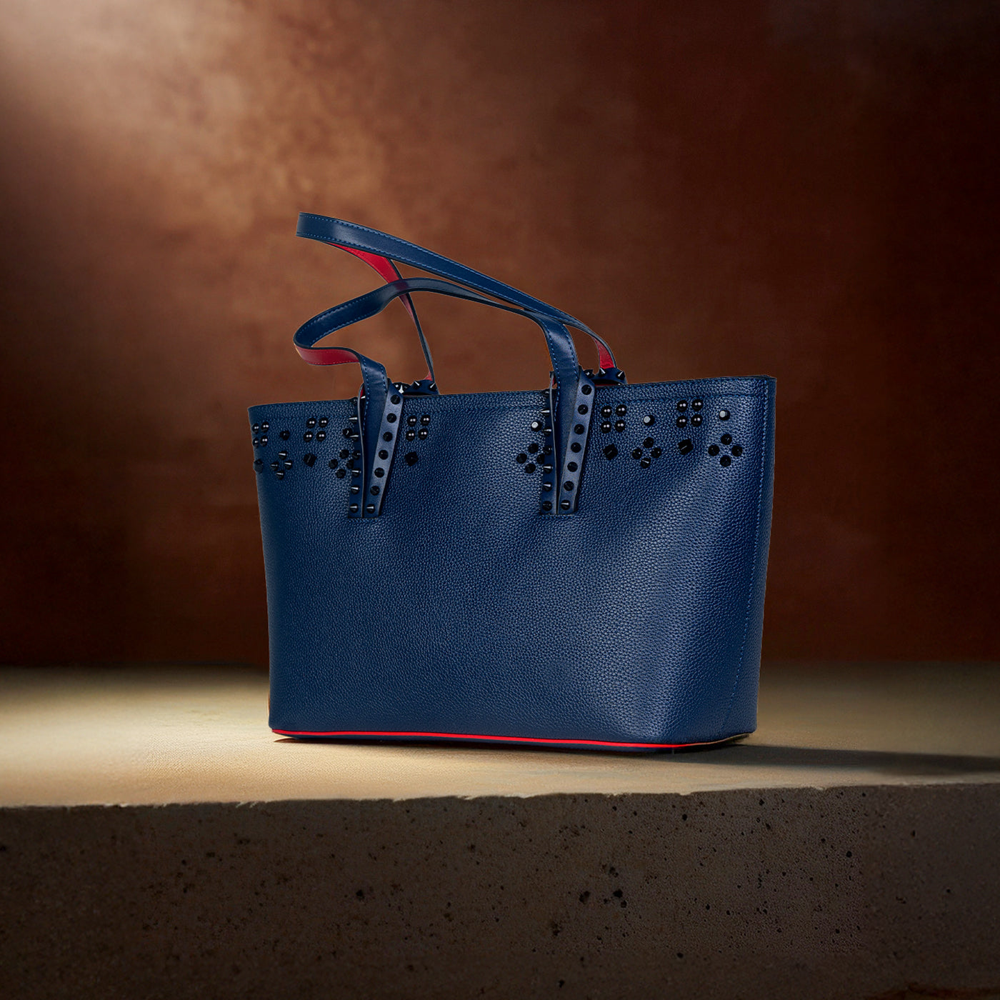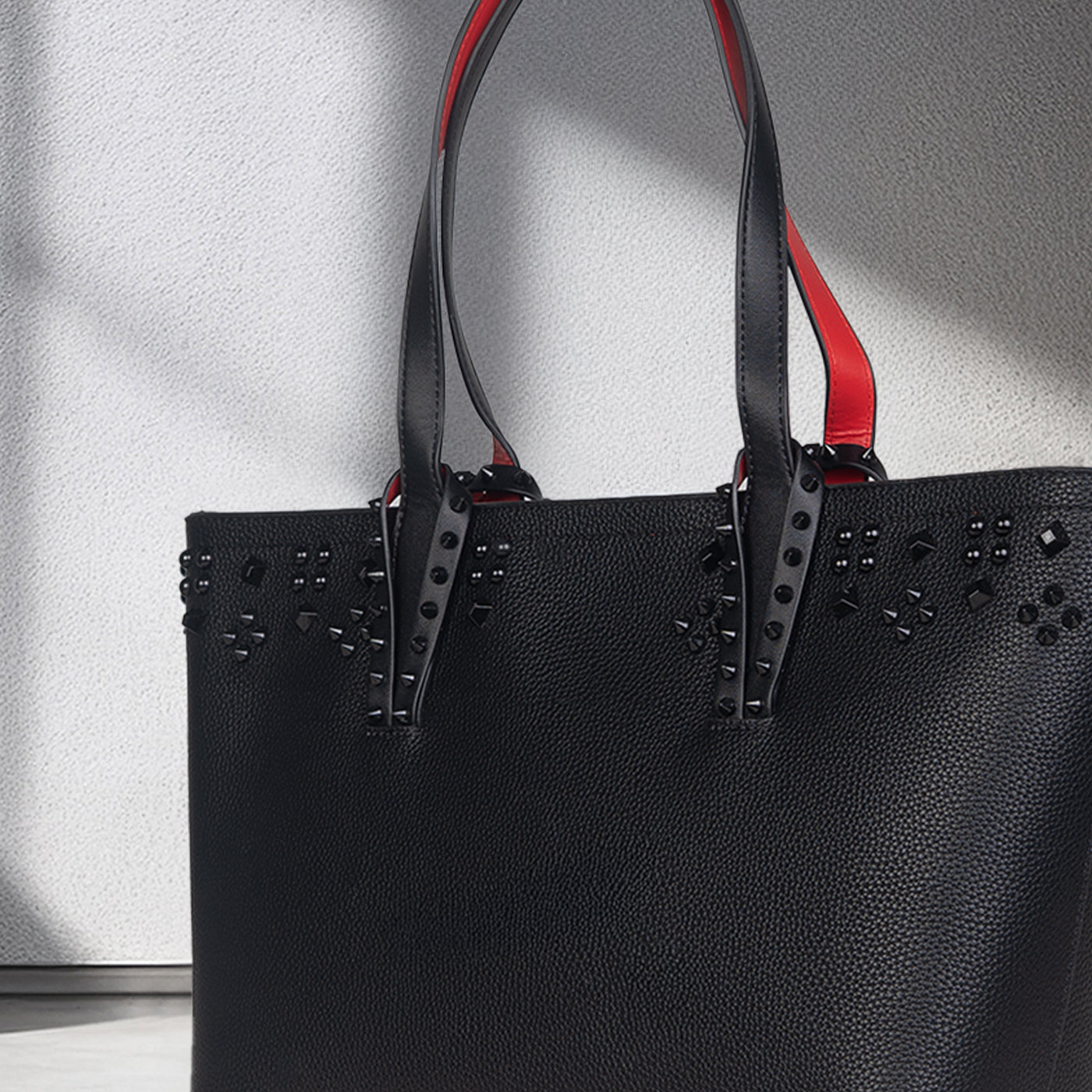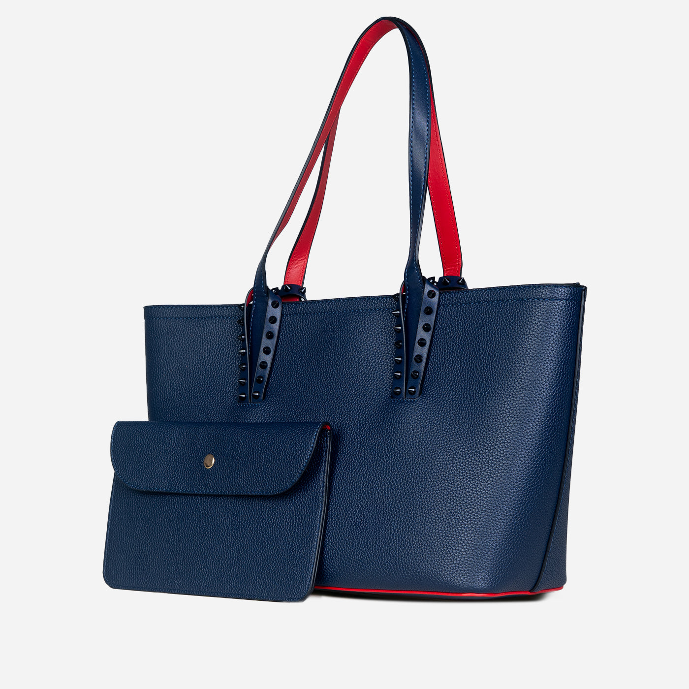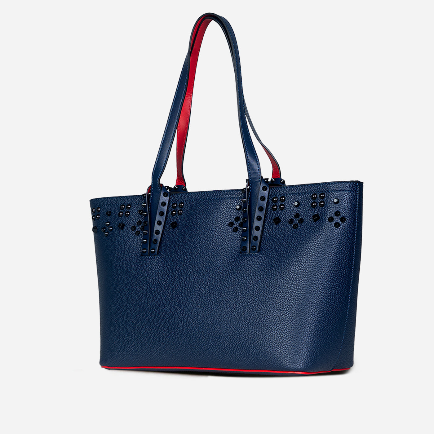 This sophisticated tote features a clean, structured silhouette accented with subtle stud detailing for a modern edge. Crafted with a smooth, durable finish, it balances elegance and functionality with ease. The spacious interior offers ample room for daily essentials, while the sturdy handles provide comfortable carry throughout the day.
