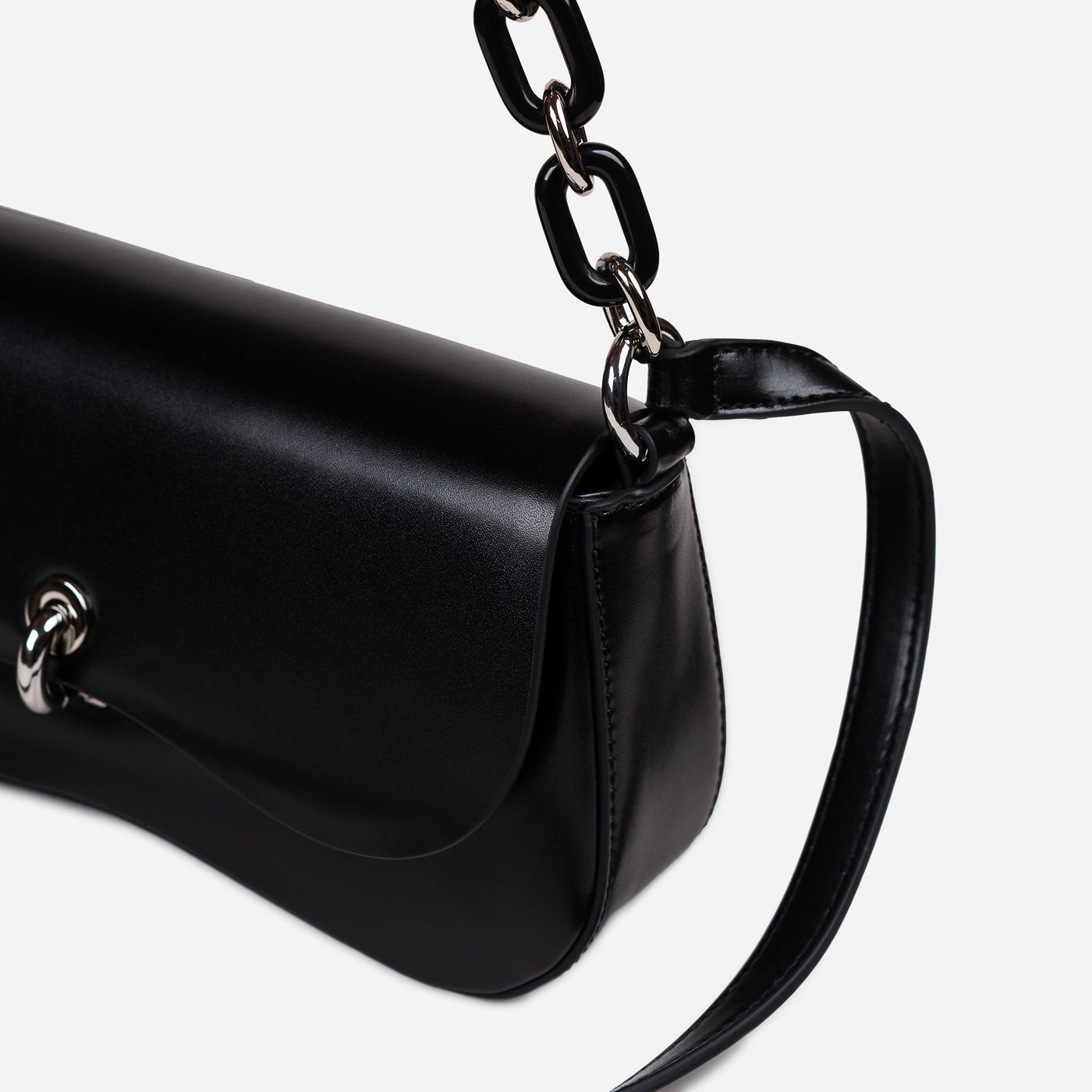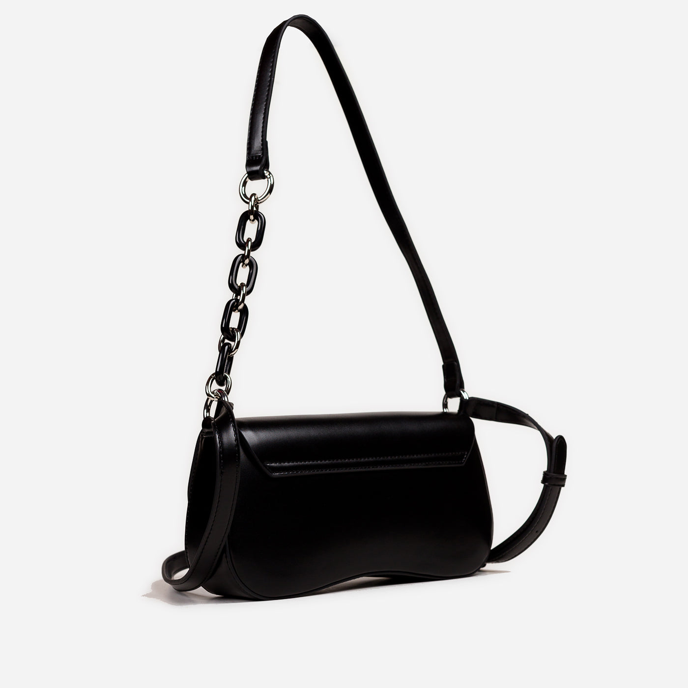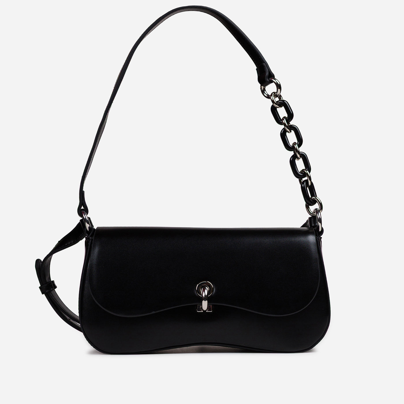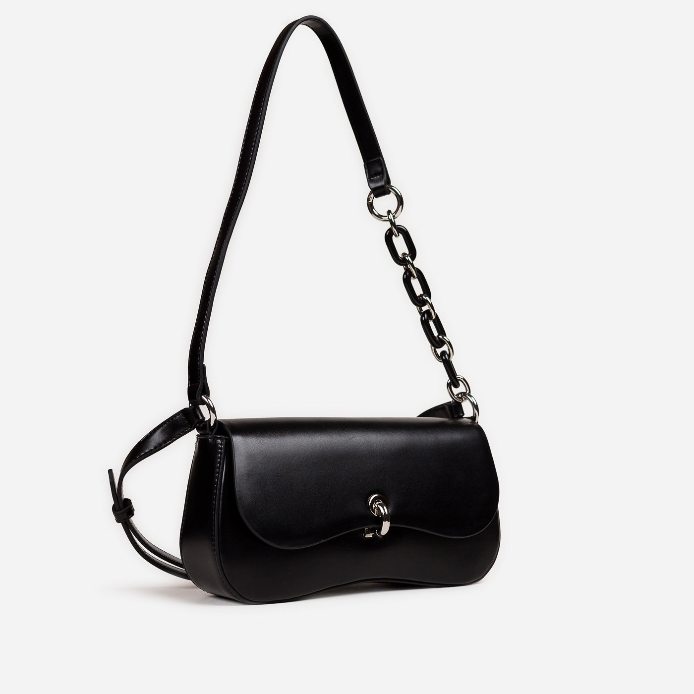Sleek and contemporary, this structured shoulder bag brings modern elegance to everyday styling. Designed with a smooth finish and refined hardware, it offers a compact yet functional silhouette that transitions effortlessly from day to night. The mixed strap detailing adds a subtle statement while keeping the look polished and versatile.