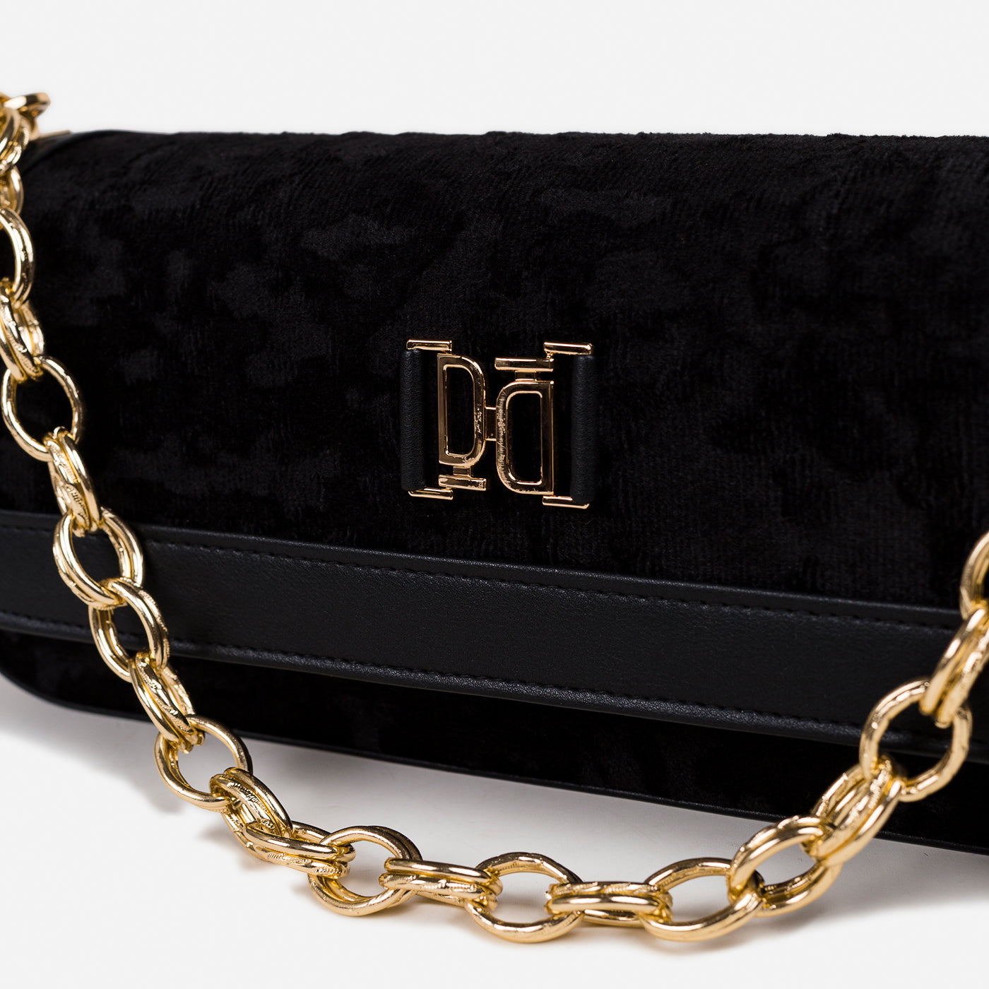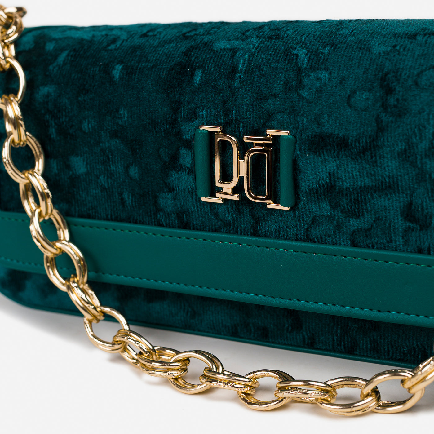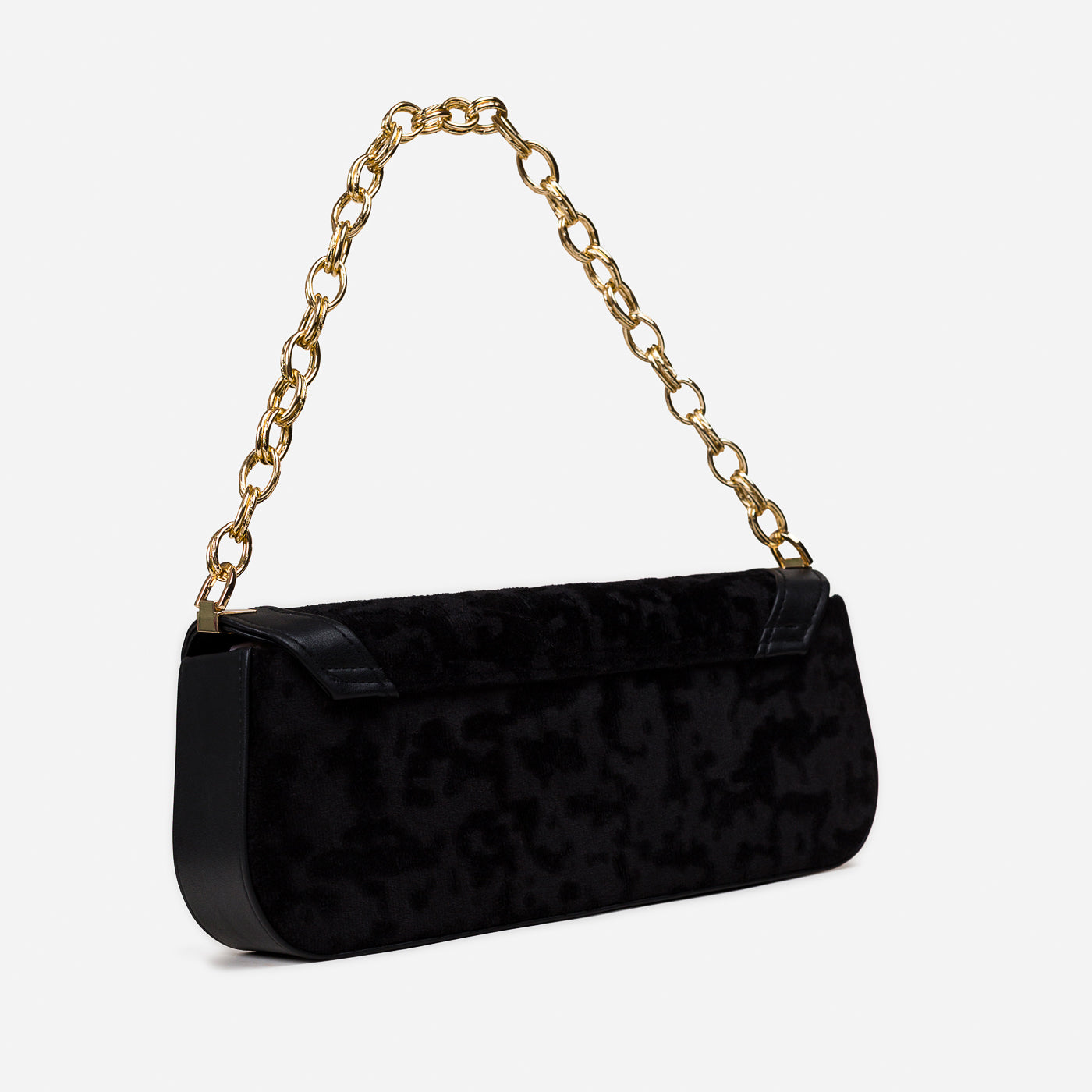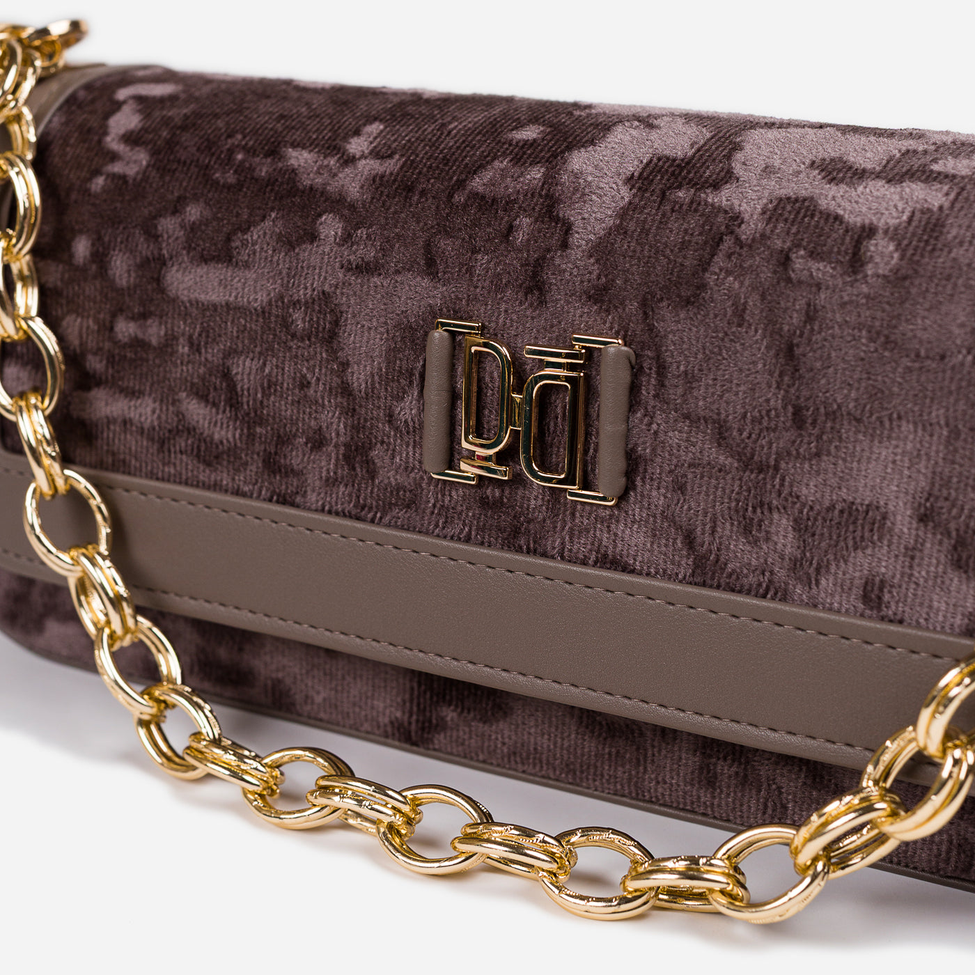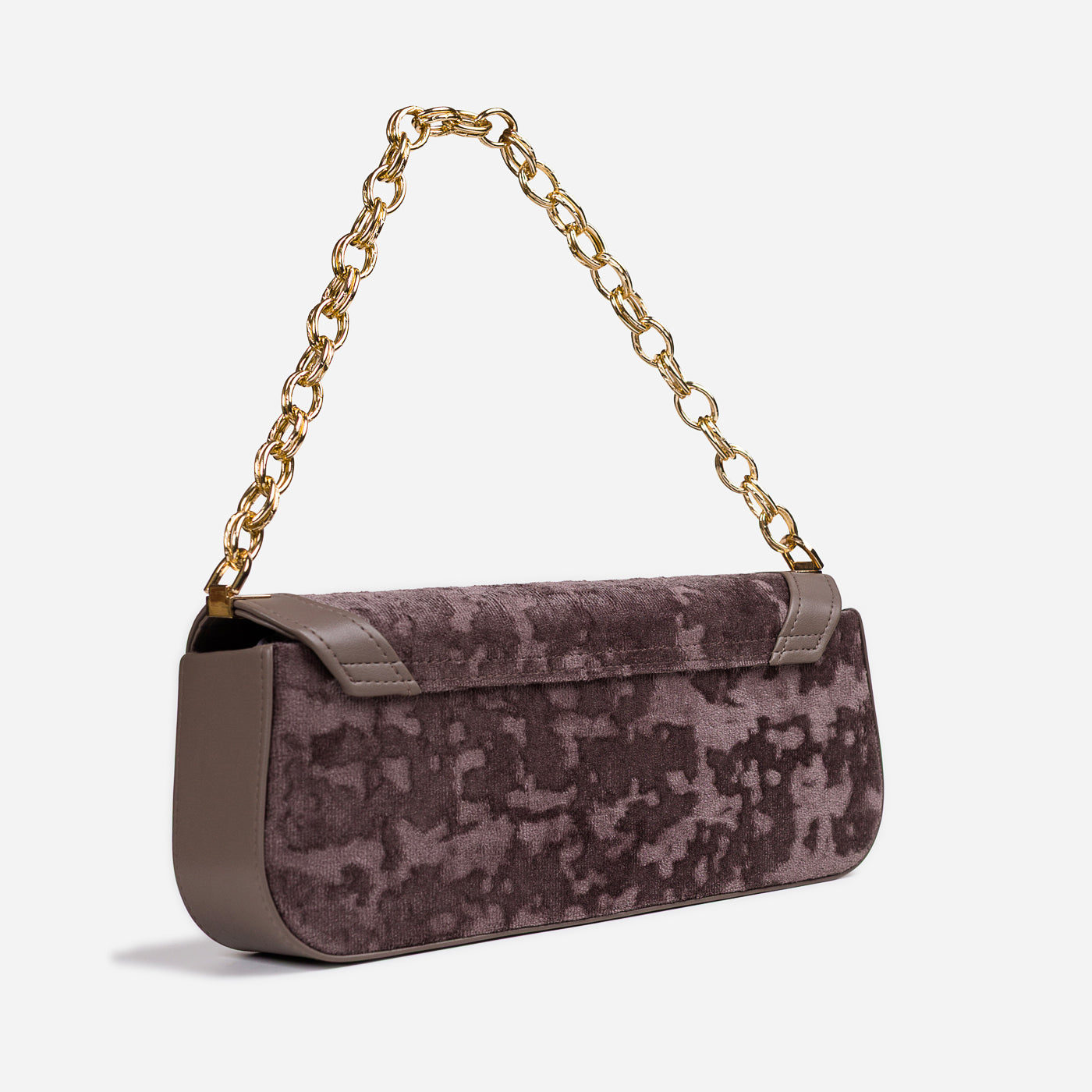 A sleek and refined shoulder bag designed for modern elegance. With its structured silhouette, plush textured fabric, and polished gold-tone chain strap, this bag adds sophistication to both day and evening looks. The secure flap closure and spacious interior make it not just stylish but functional too.