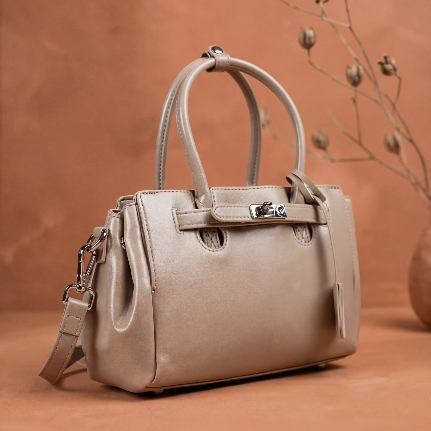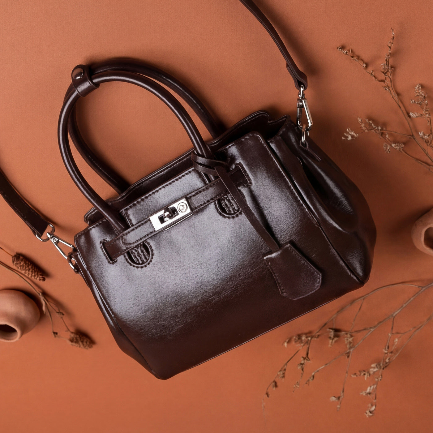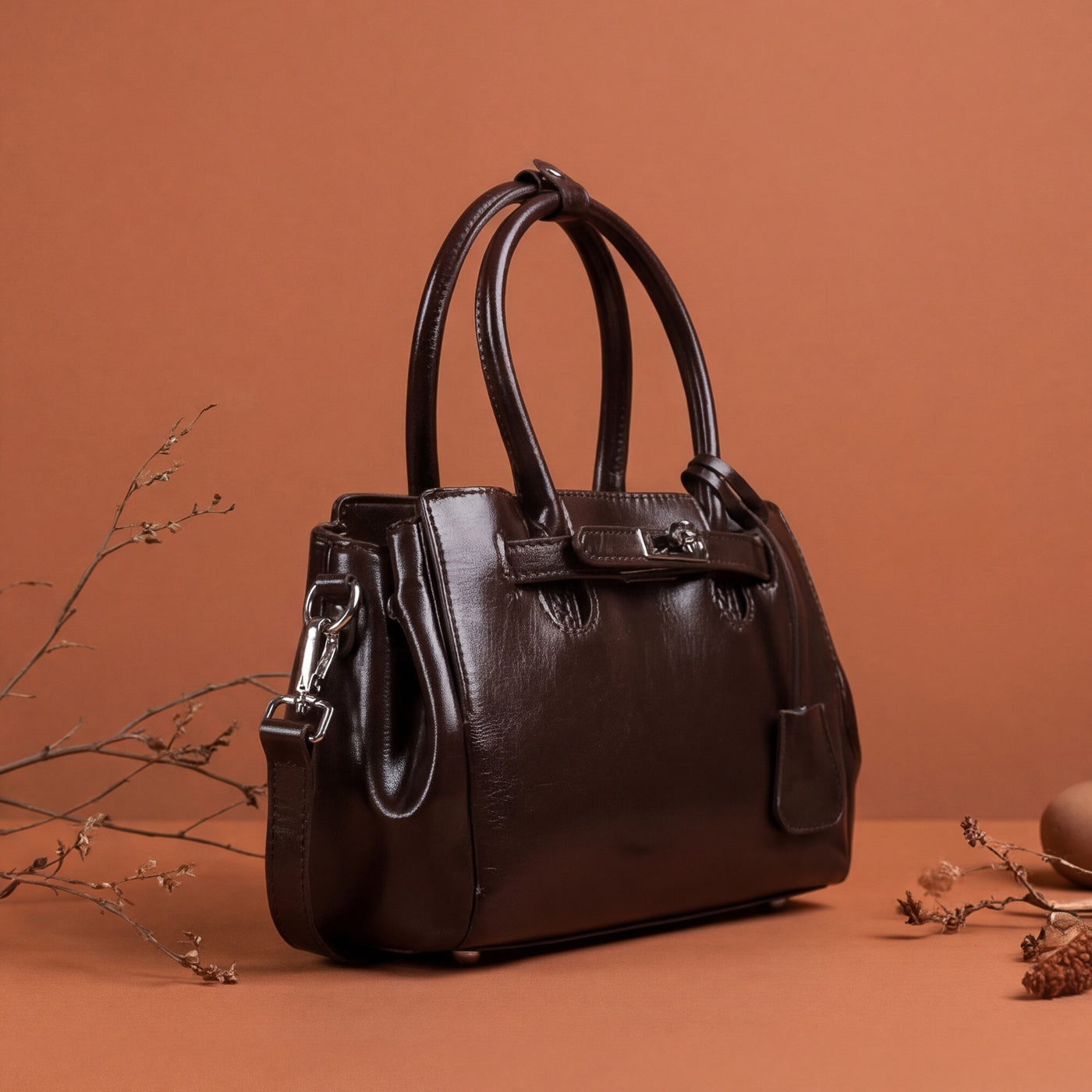 - Hardware: Polished metal turnlock with premium detailing
