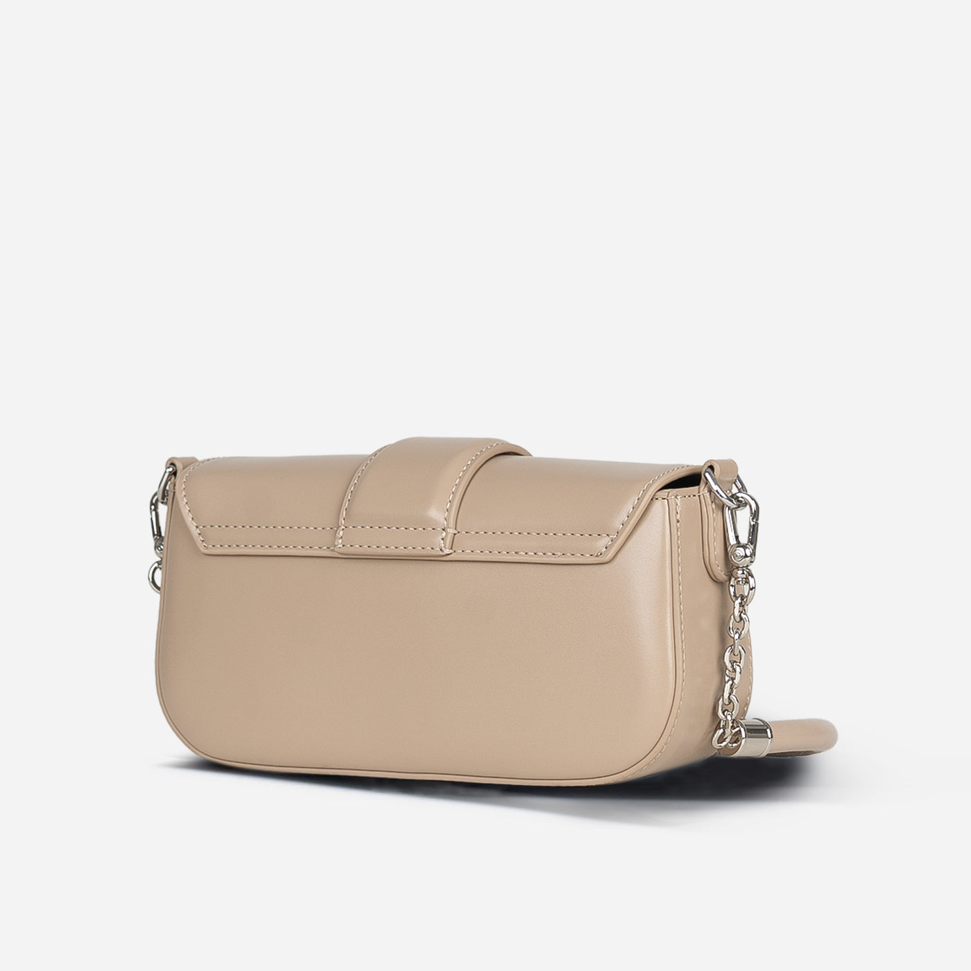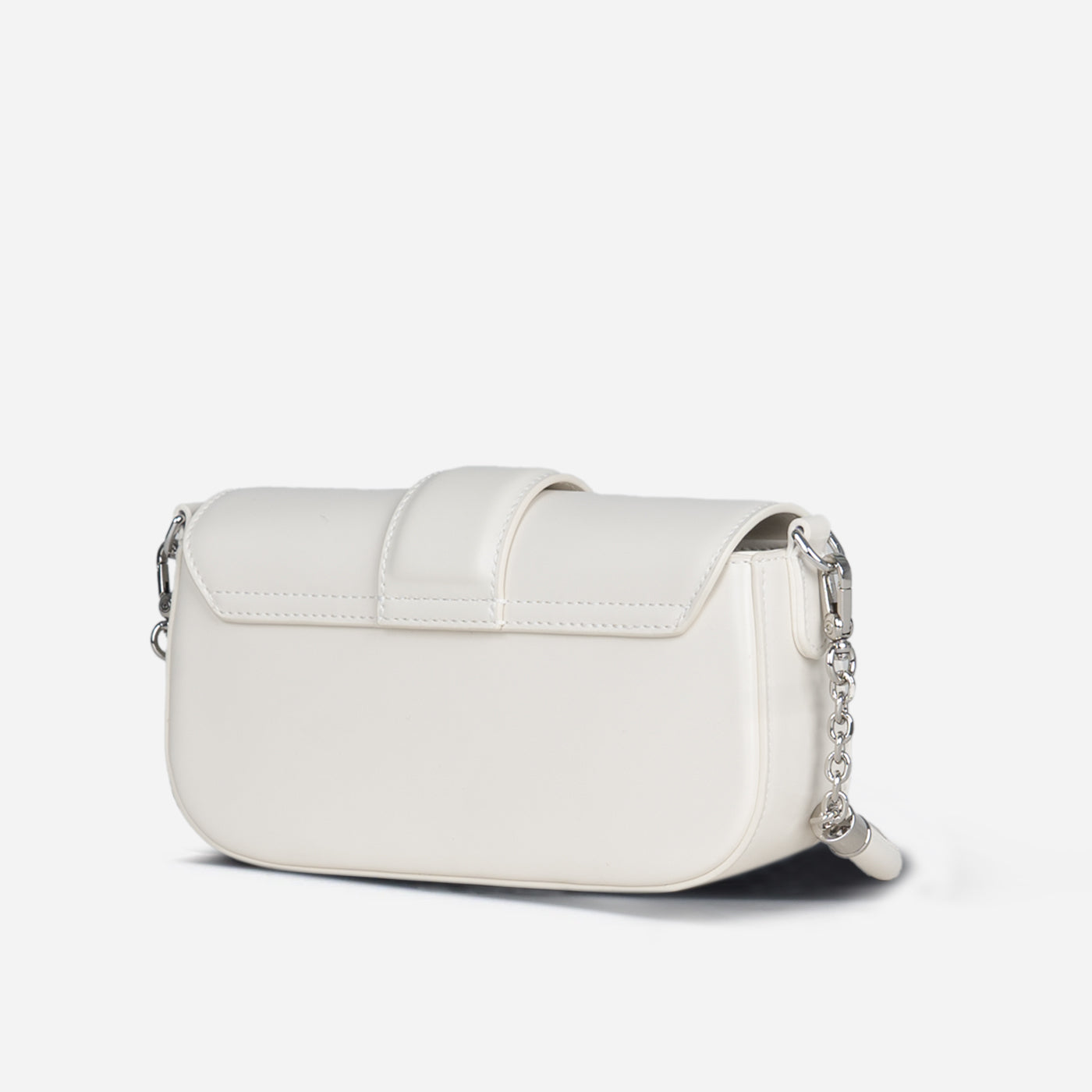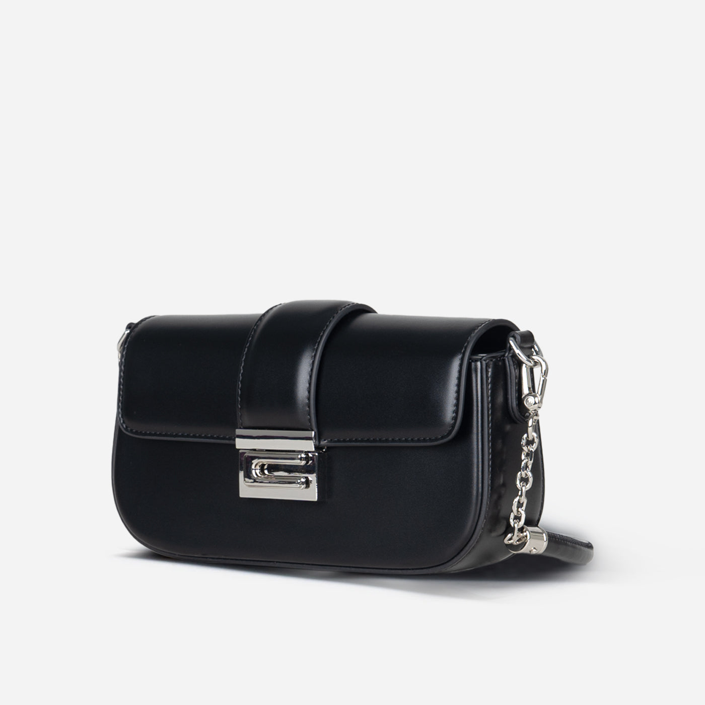 Sleek sophistication in a compact crossbody silhouette. This piece features smooth construction with structured flap closure secured by signature geometric hardware clasp, creating modern architectural appeal. The chain and leather strap offers versatile wear from shoulder to crossbody, while the organized interior accommodates essentials with ease.