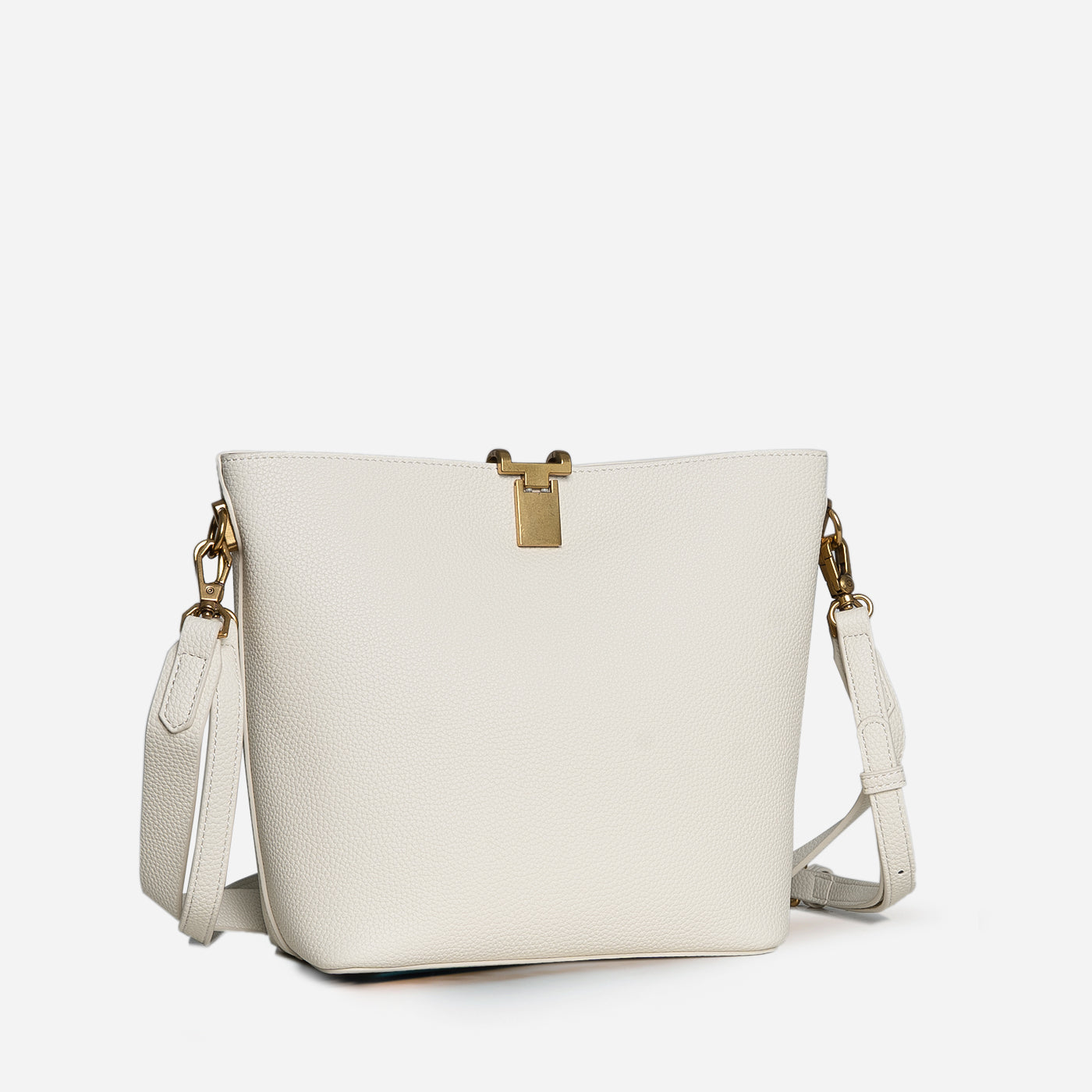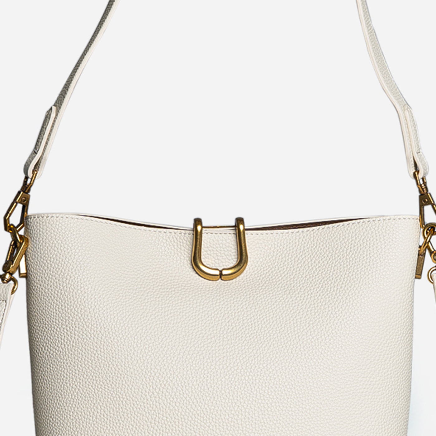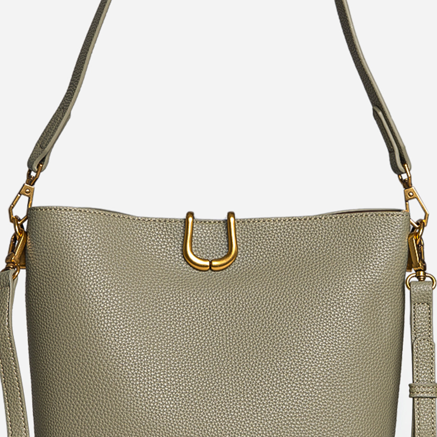 The Classic Chic Bucket is a timeless accessory crafted for women who appreciate understated elegance with modern practicality. Its structured bucket silhouette offers a clean, polished look, while the pebbled textured finish and metallic accent elevate it with subtle sophistication. Designed for everyday versatility, this bag features a detachable shoulder strap and a sturdy top handle, allowing you to switch seamlessly between casual crossbody wear and refined handheld style. With a spacious interior and thoughtful slip pocket, it ensures your essentials stay organized while you move through your day in style. A perfect blend of fashion and function, the Classic Chic Bucket is your go-to choice for effortless elegance.