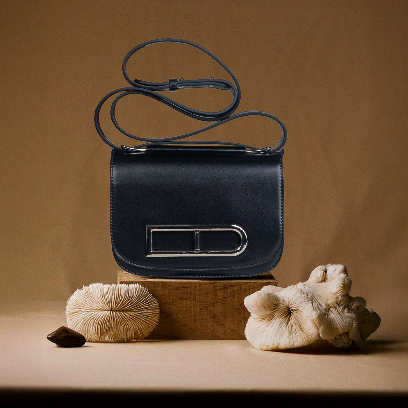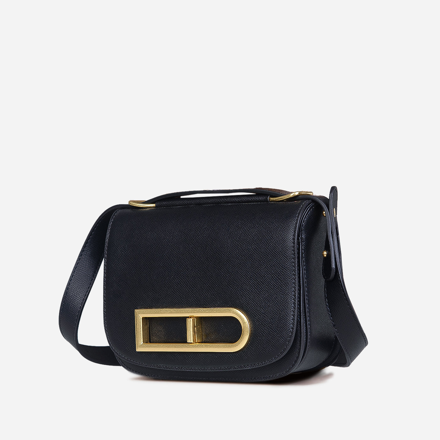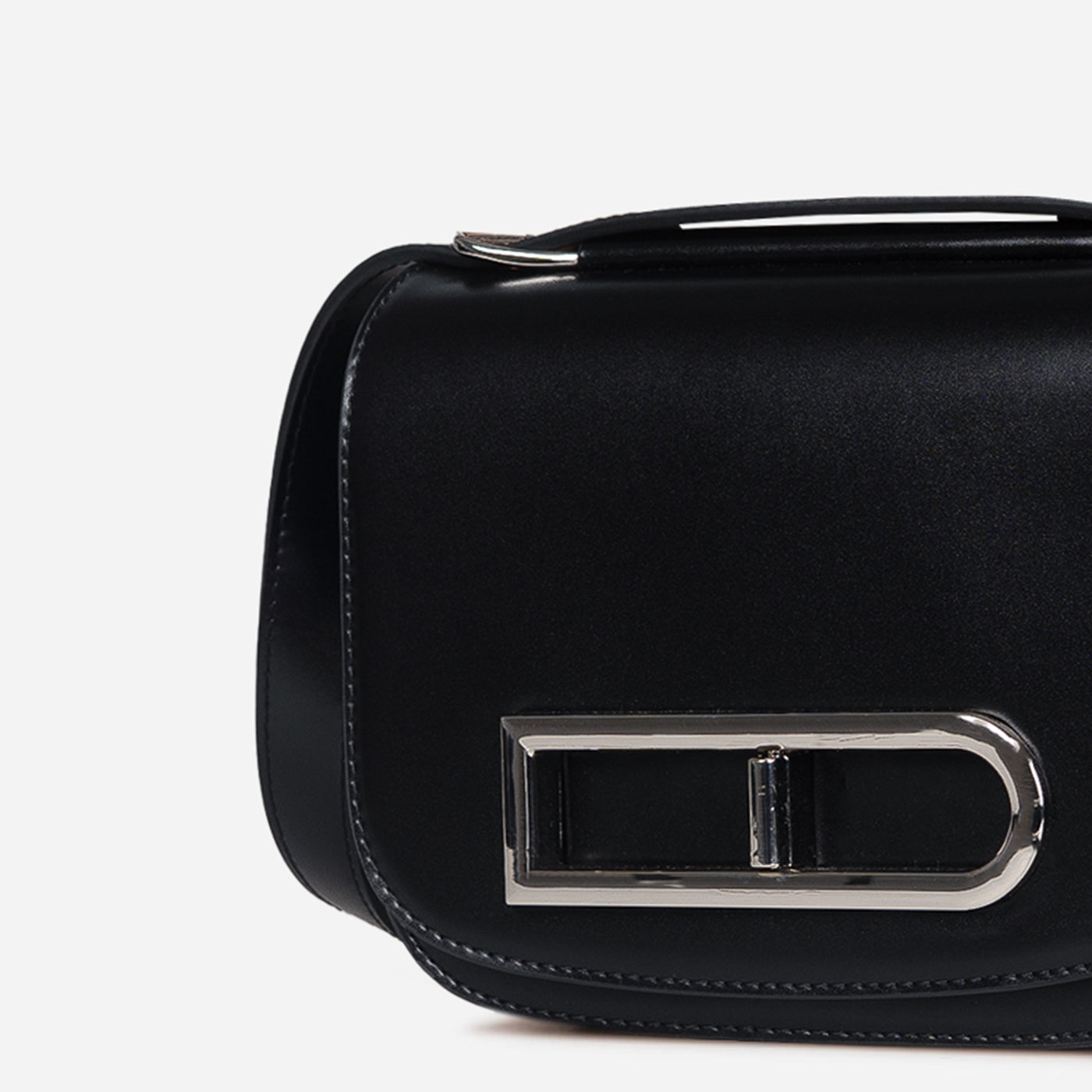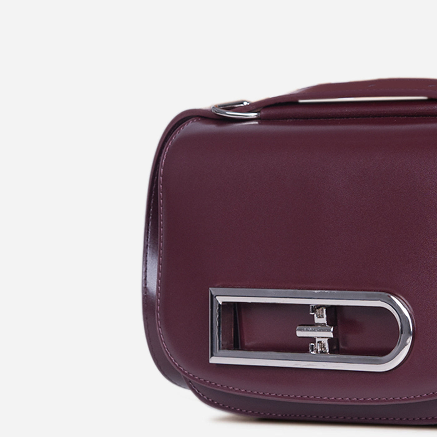 This compact crossbody bag is designed to make a statement through clean lines and thoughtful detail. The structured silhouette is balanced by a smooth finish, while the bold metallic buckle accent adds a distinctive, contemporary edge. A sleek shoulder strap ensures comfortable wear, keeping the look practical yet polished.