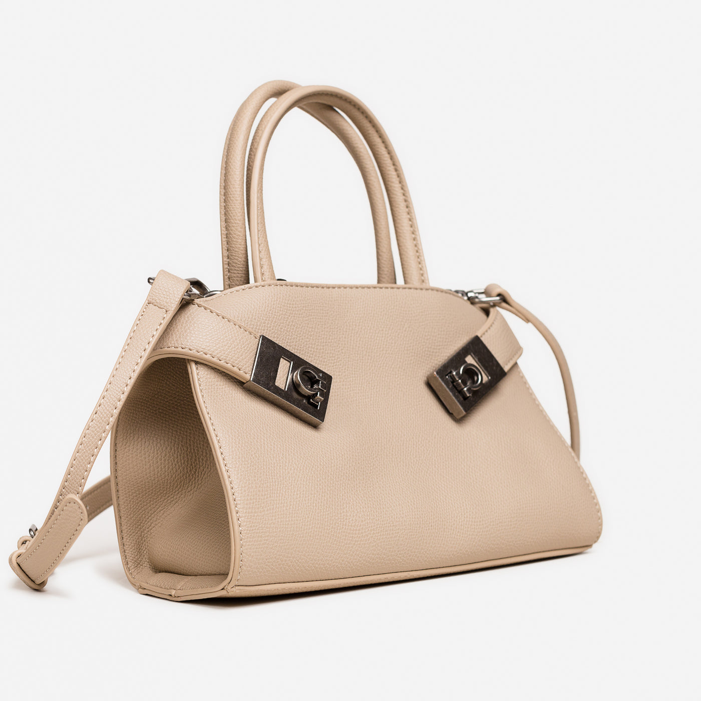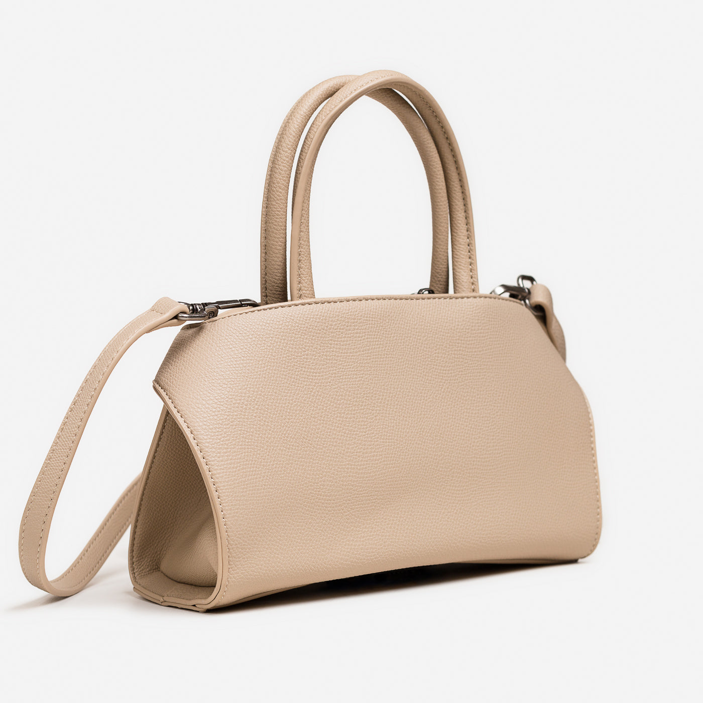 This satchel combines timeless structure with contemporary refinement. Made from supple, textured leather, it features sleek metal detailing and graceful handles that enhance its minimalist design. A roomy interior keeps essentials organized, while the detachable strap offers multiple carrying options. Sophisticated yet practical, it’s an ideal companion for both professional and casual settings.