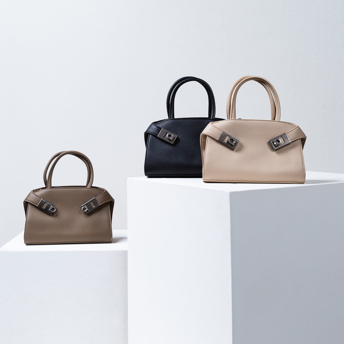 The Prestige Satchel embodies modern form and refined functionality. Crafted in premium textured leather, its architectural silhouette is complemented by polished metallic hardware for a precise, confident look. Dual top handles ensure balance and ease, while the structured body maintains its shape through every wear.Prestige Satchel represents a timeless approach to design — minimal, versatile, and enduringly sophisticated.