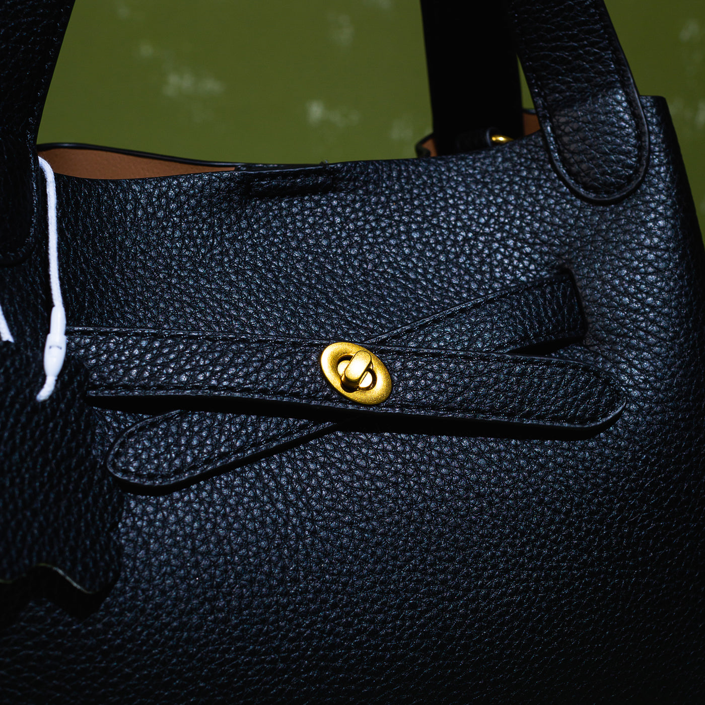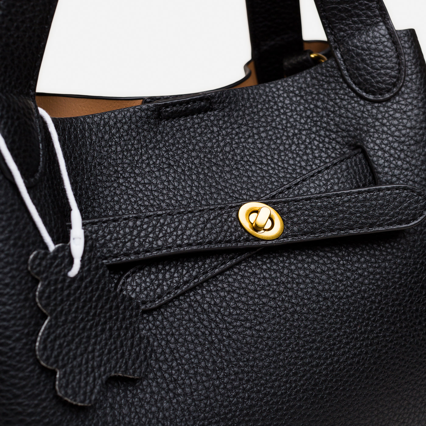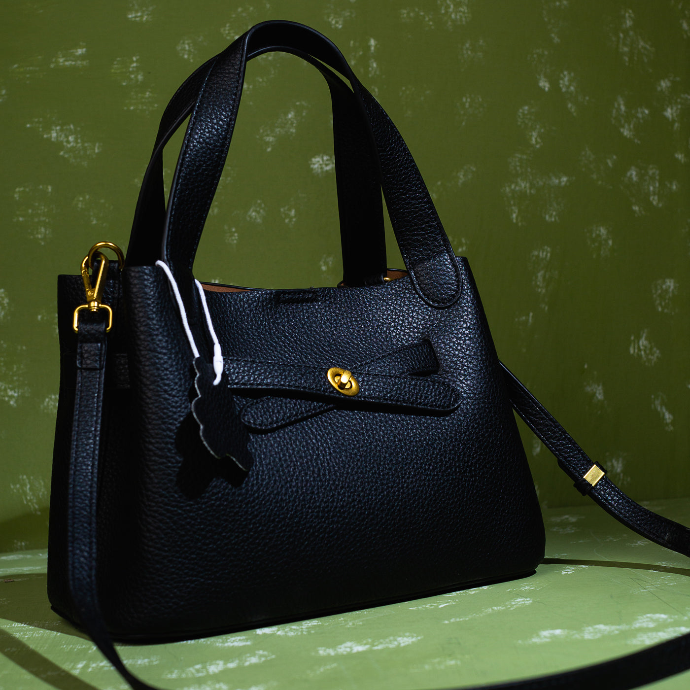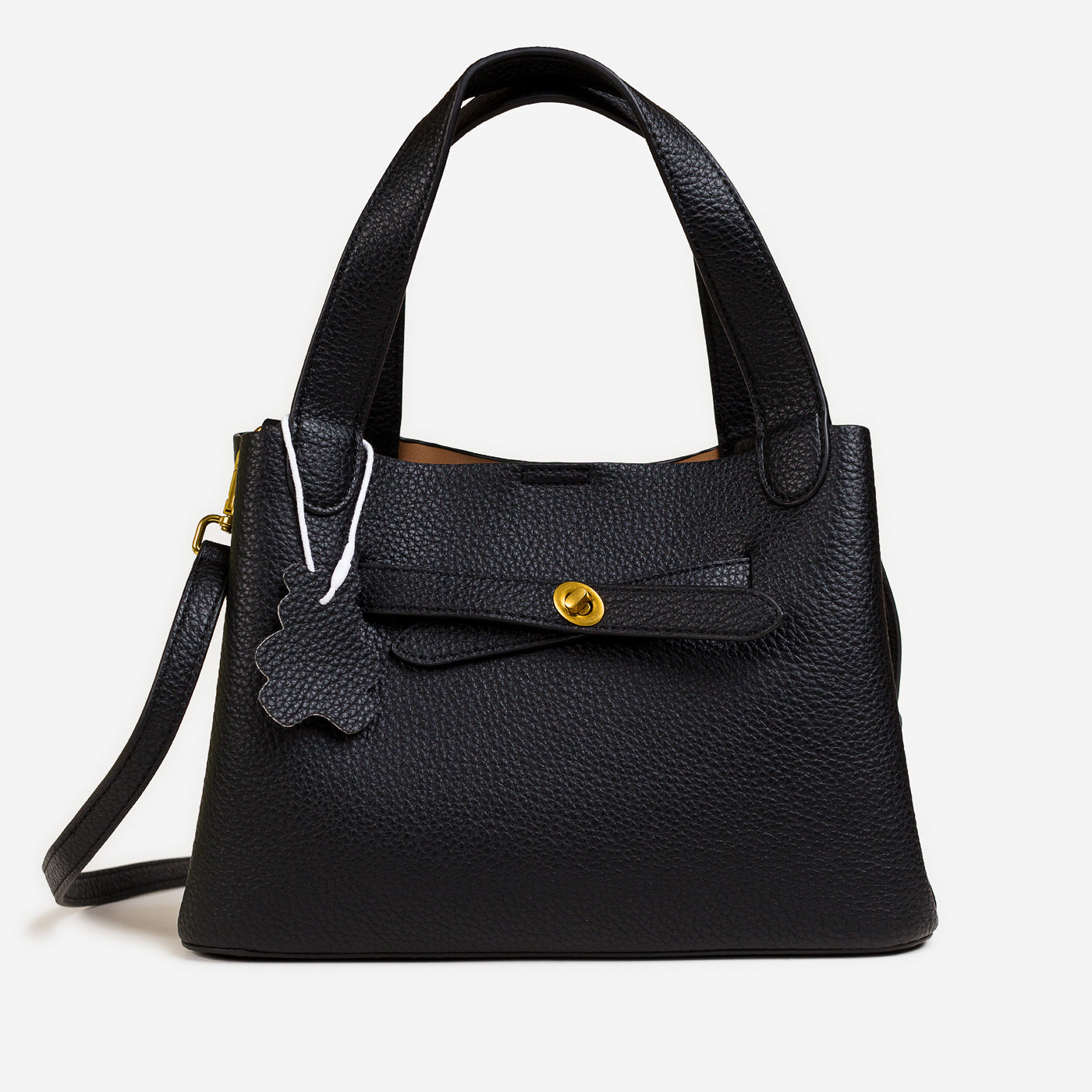 - Finish: Pebbled grain with gold-toned hardware