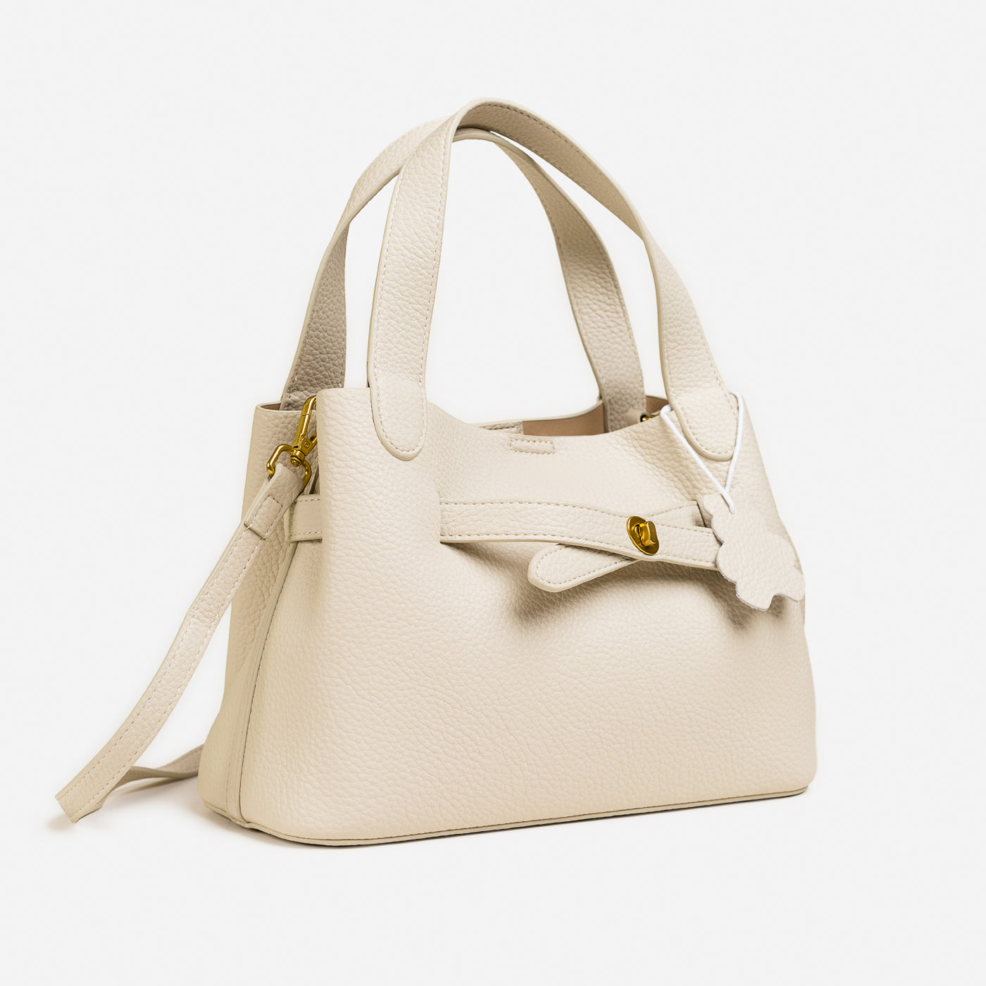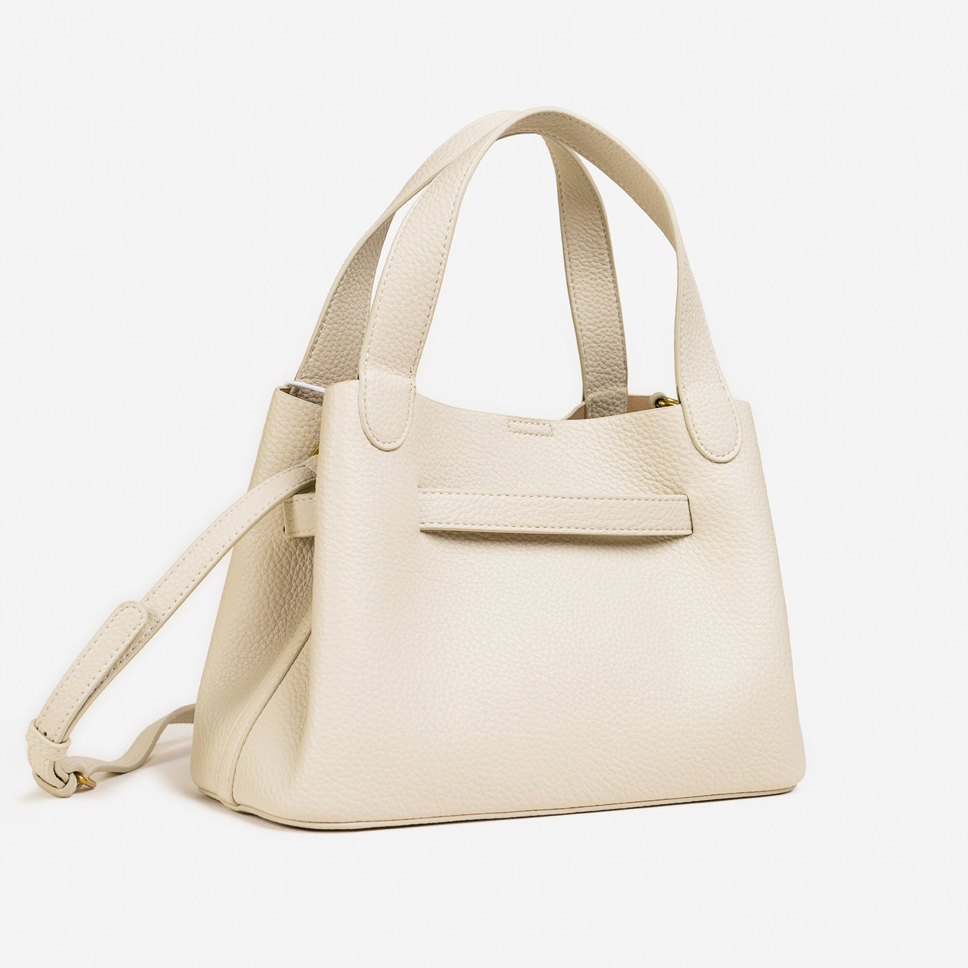 Sleek, structured, and effortlessly refined this compact carry-all is made for the modern minimalist. Its pebbled texture and sculpted handles bring quiet luxury, while the subtle hardware adds just the right touch of shine. Designed to elevate everyday looks, it’s the piece you reach for when sophistication needs to feel simple.