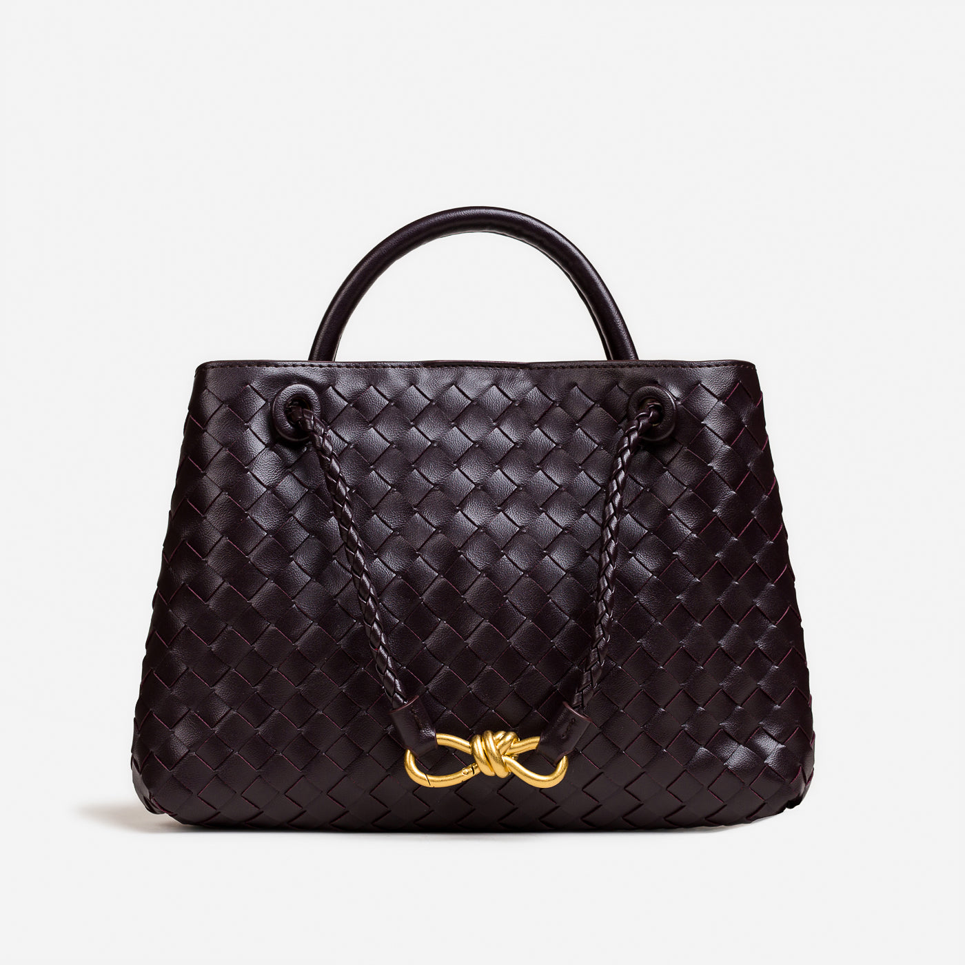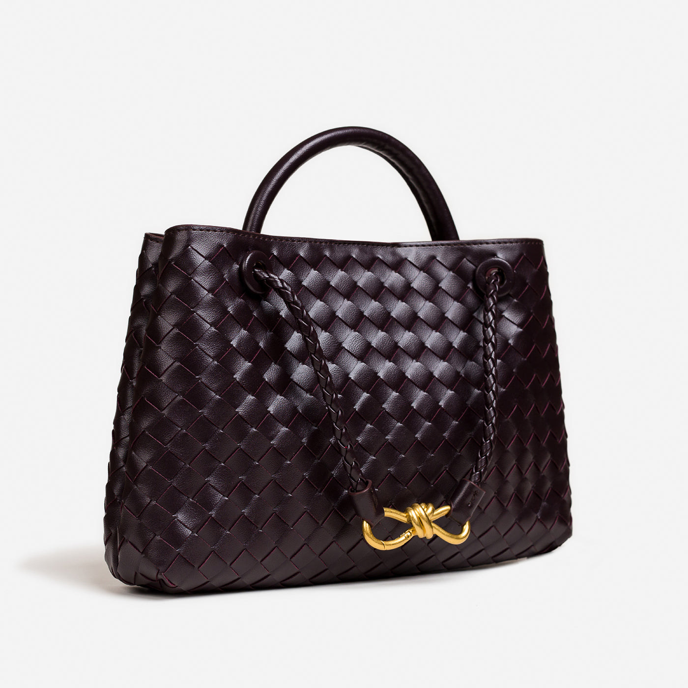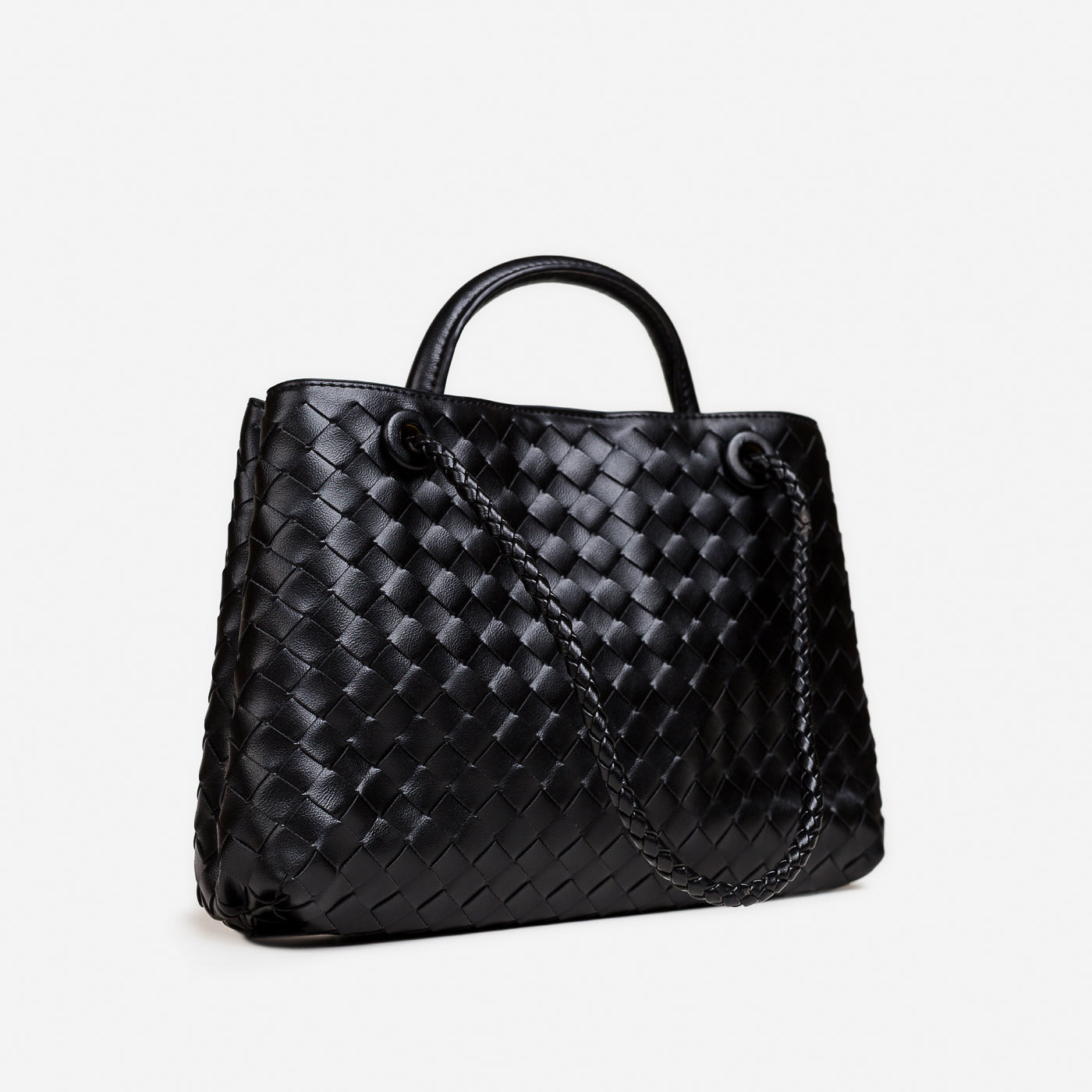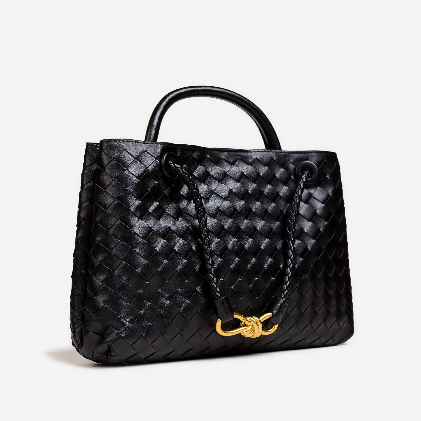 The Infinity Weave Tote is a statement of elegance and versatility, crafted with a refined woven texture that exudes sophistication. Its structured silhouette is beautifully complemented by braided rope-style straps and a striking gold-tone knot accent at the base, symbolizing timeless strength and style. Designed for the modern woman, this tote blends practicality with luxury, offering ample space while maintaining a chic appearance. Whether carried to work, a casual outing, or an evening engagement, the Infinity Weave Tote effortlessly enhances your ensemble with understated glamour.
