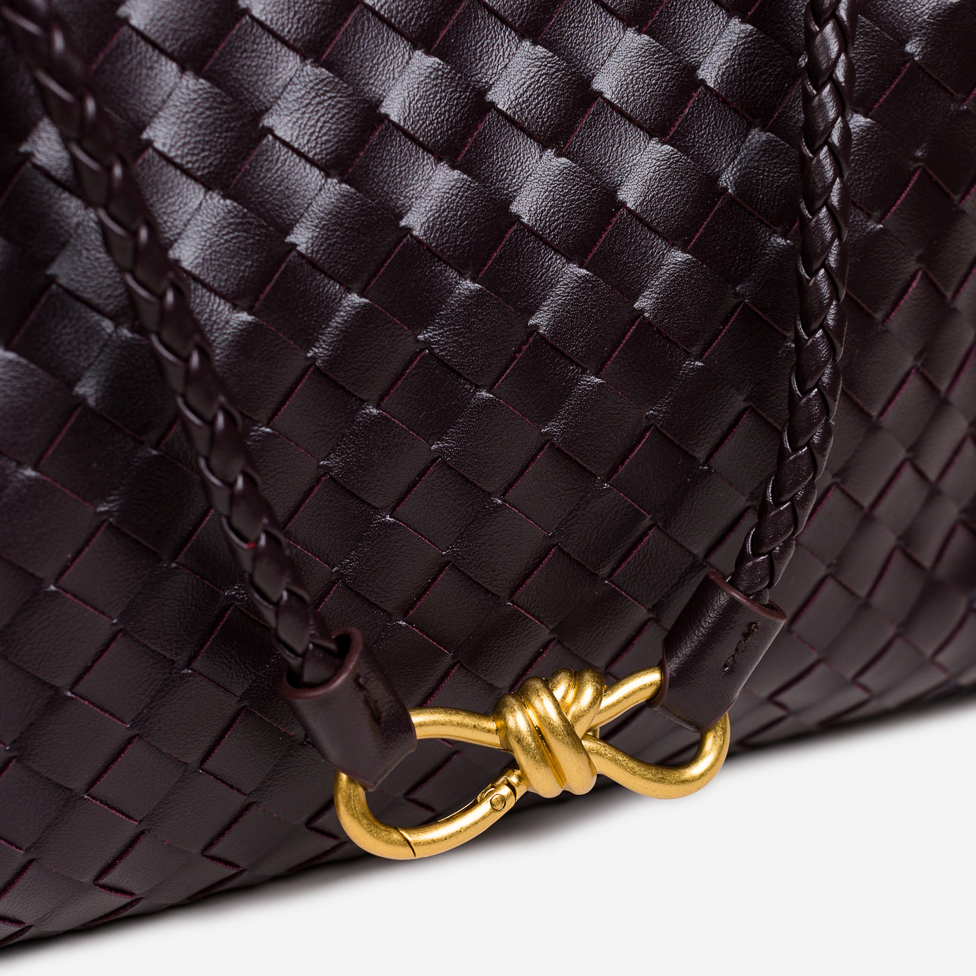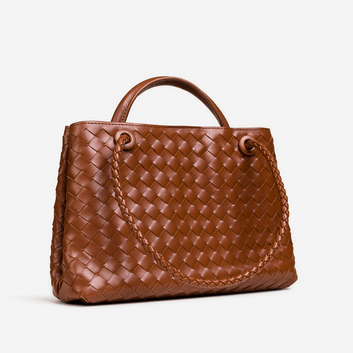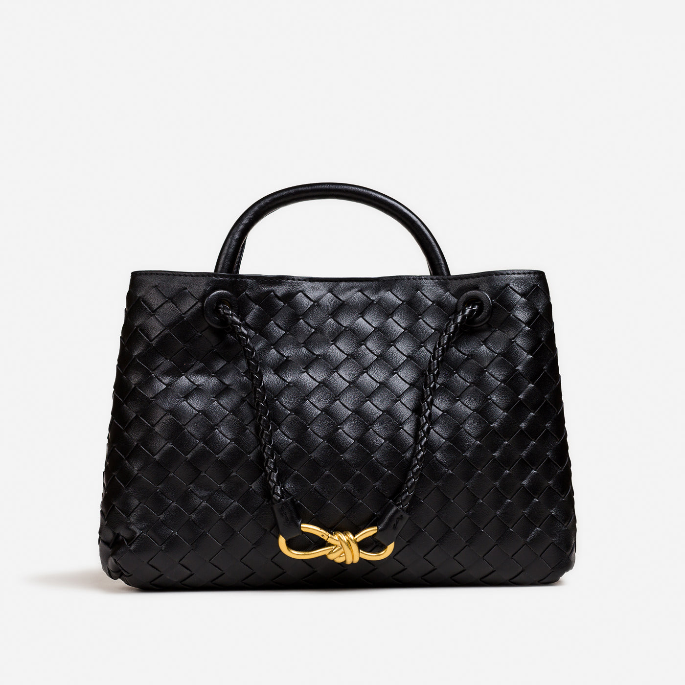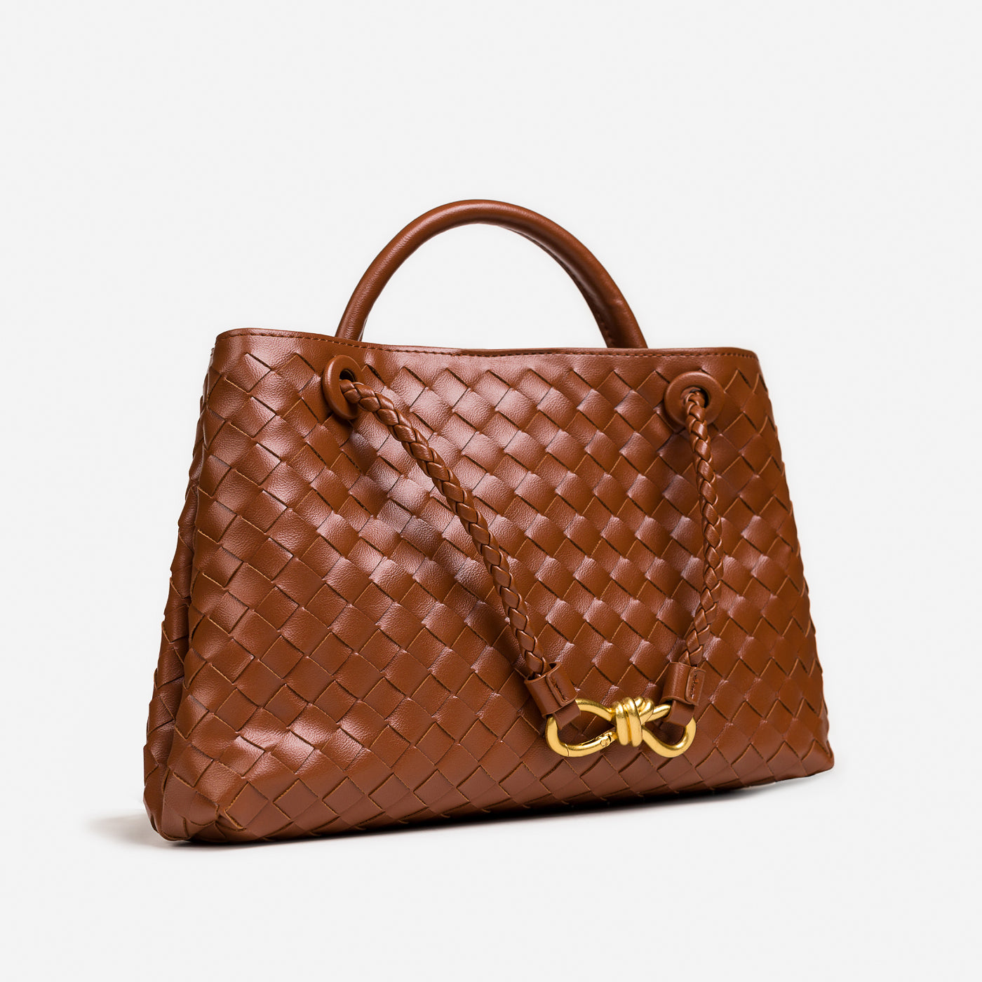 The Infinity Weave Tote is a statement of elegance and versatility, crafted with a refined woven texture that exudes sophistication. Its structured silhouette is beautifully complemented by braided rope-style straps and a striking gold-tone knot accent at the base, symbolizing timeless strength and style. Designed for the modern woman, this tote blends practicality with luxury, offering ample space while maintaining a chic appearance. Whether carried to work, a casual outing, or an evening engagement, the Infinity Weave Tote effortlessly enhances your ensemble with understated glamour.