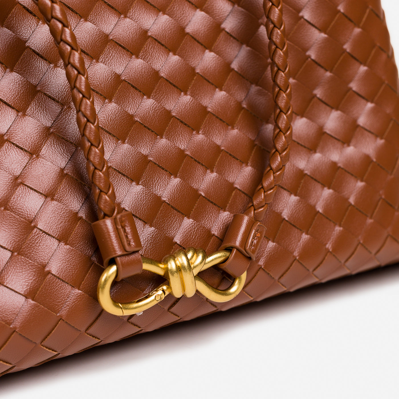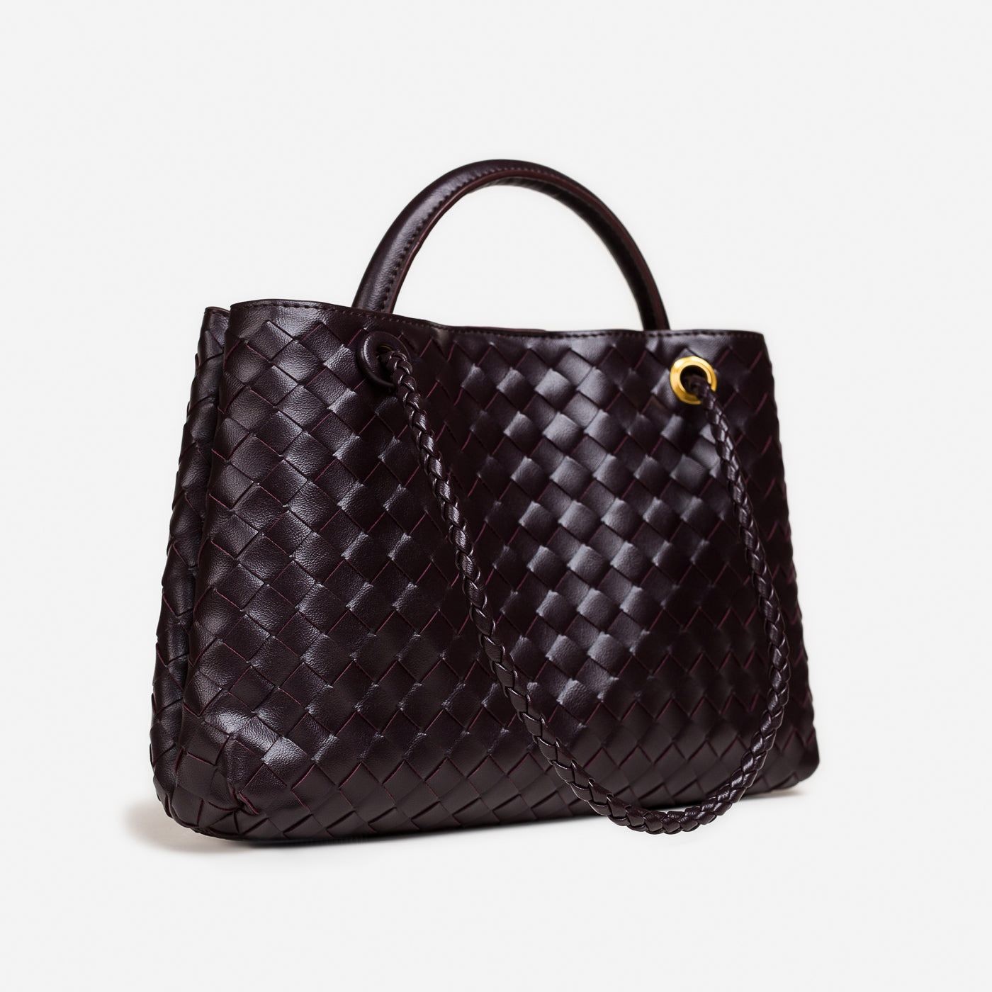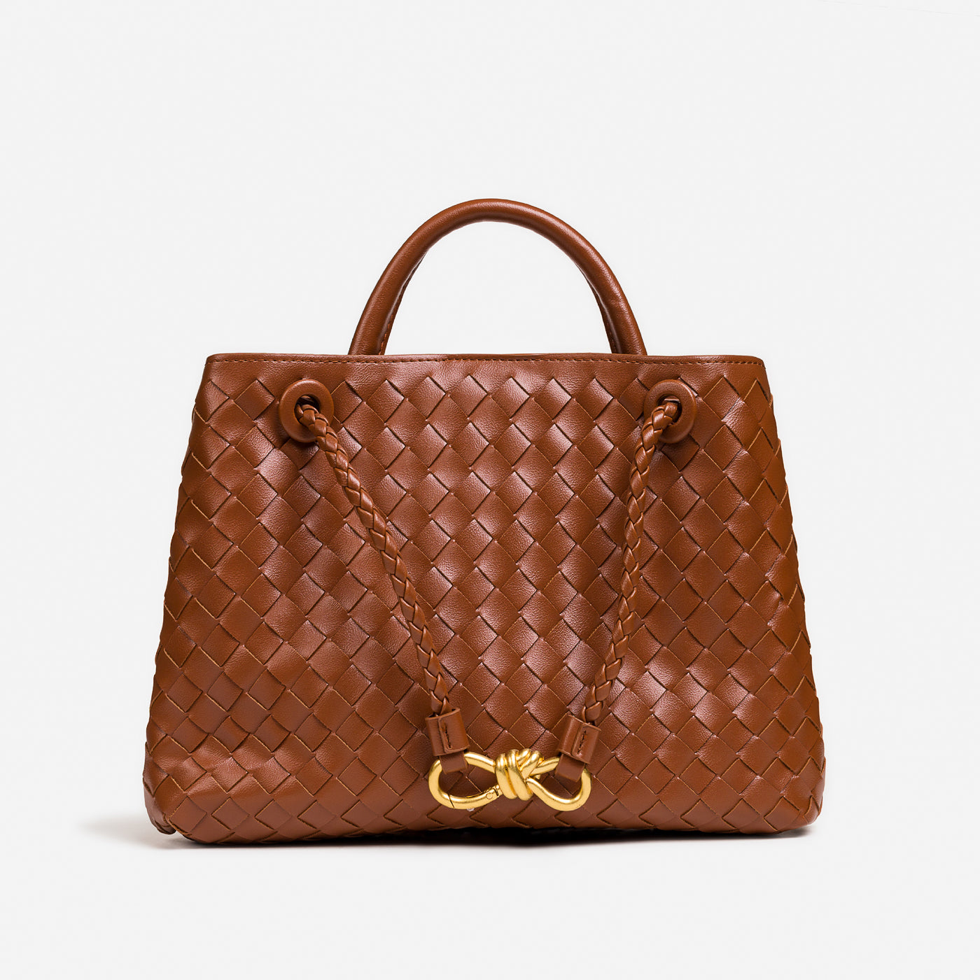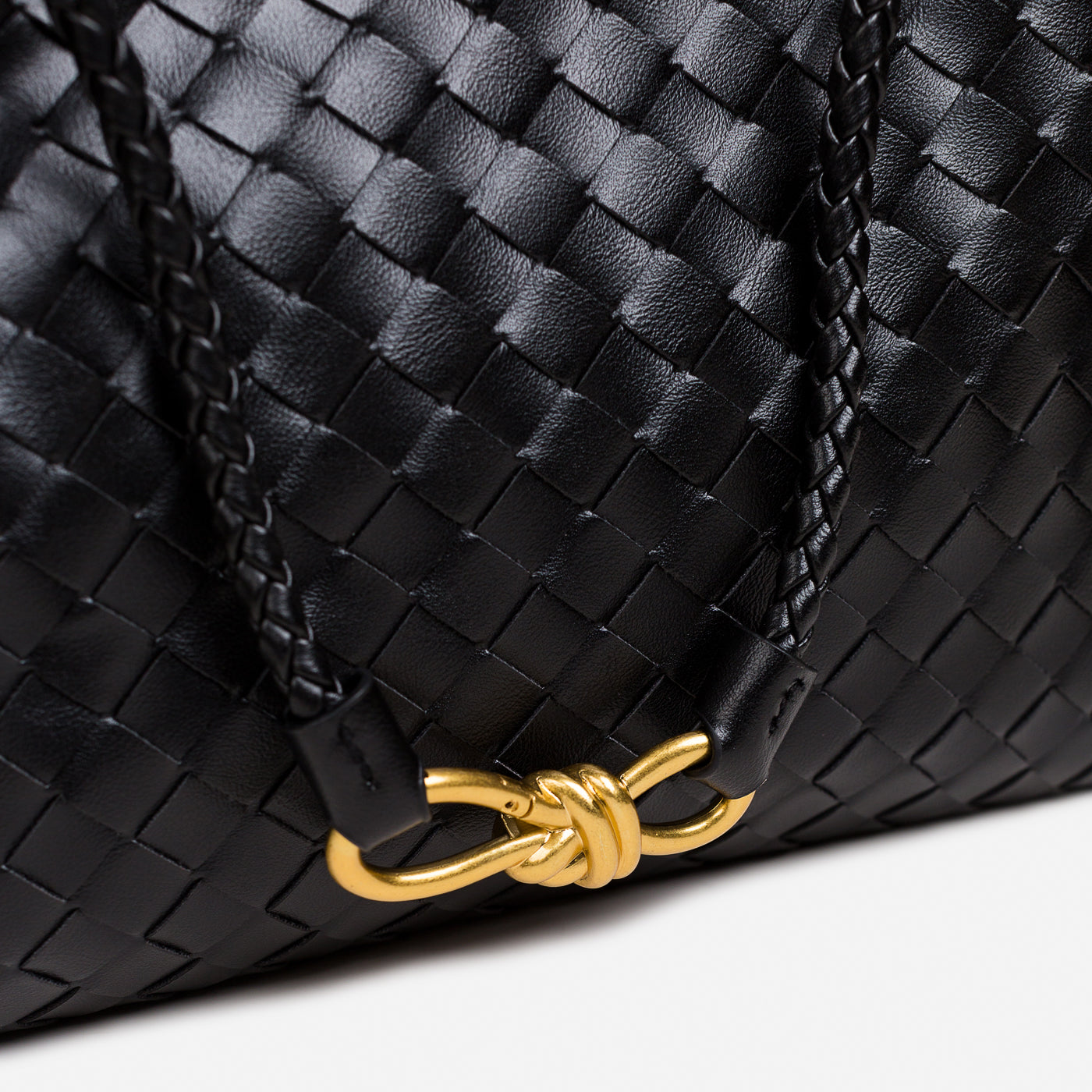 The Infinity Weave Tote is a statement of elegance and versatility, crafted with a refined woven texture that exudes sophistication. Its structured silhouette is beautifully complemented by braided rope-style straps and a striking gold-tone knot accent at the base, symbolizing timeless strength and style. Designed for the modern woman, this tote blends practicality with luxury, offering ample space while maintaining a chic appearance. Whether carried to work, a casual outing, or an evening engagement, the Infinity Weave Tote effortlessly enhances your ensemble with understated glamour.