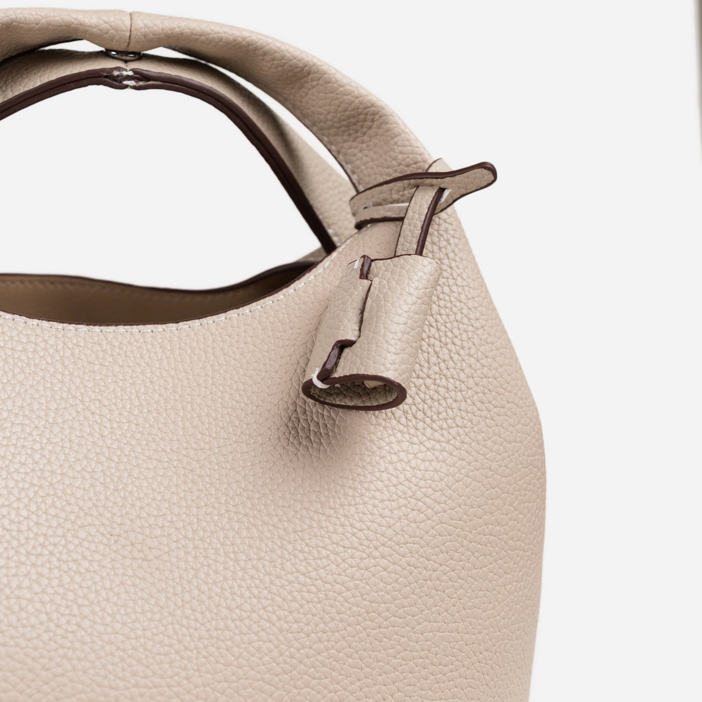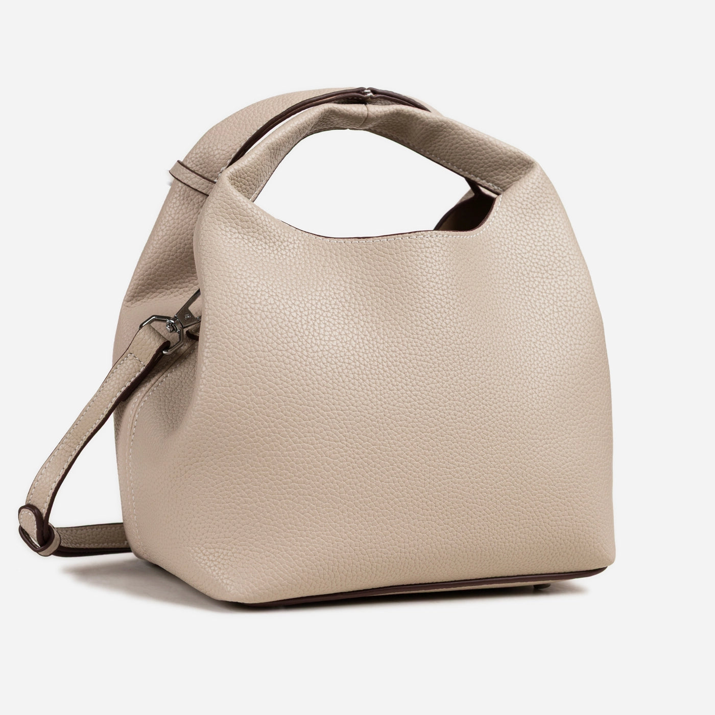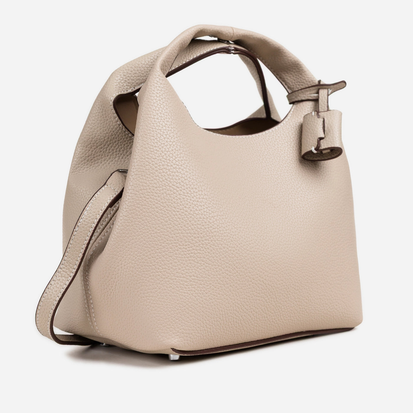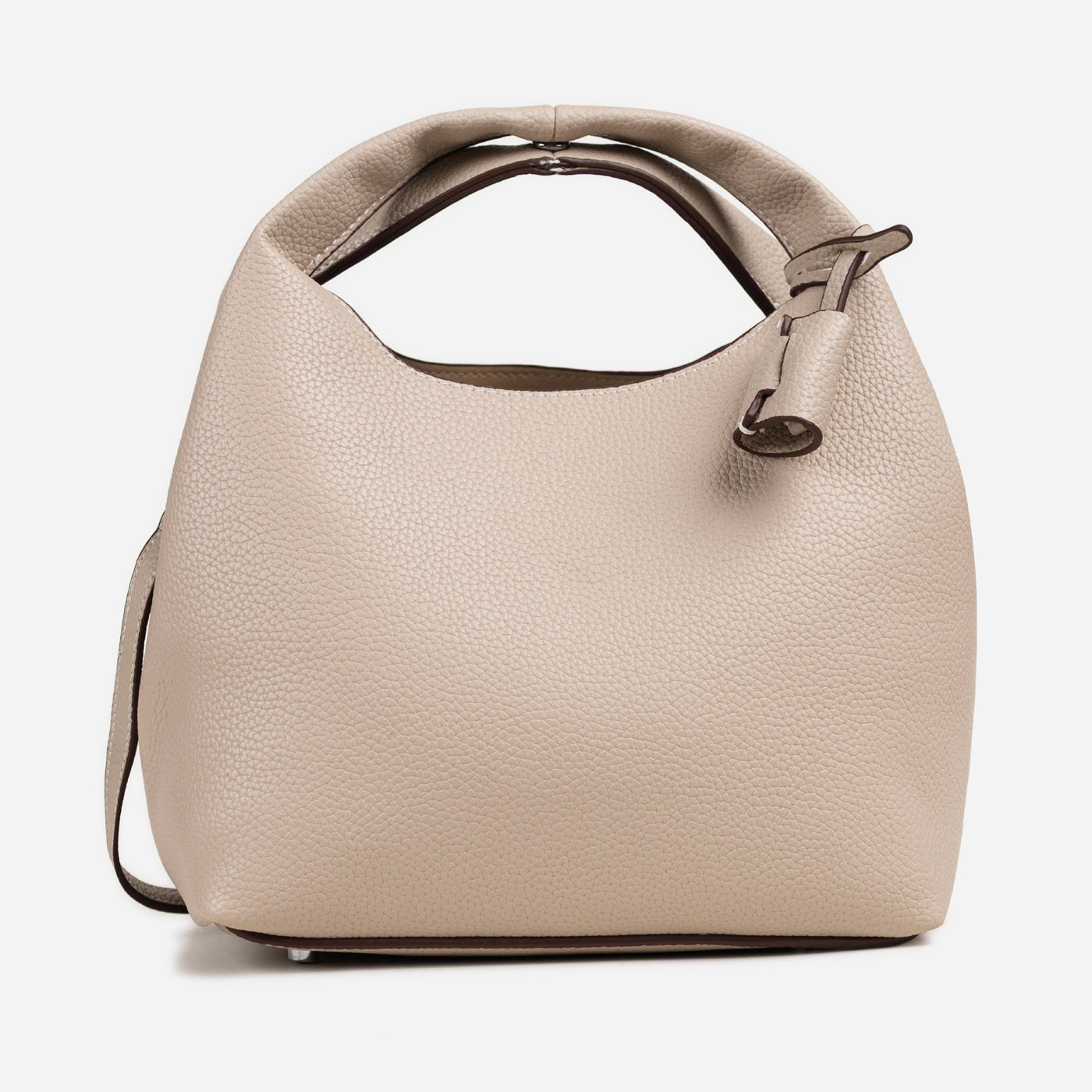 Relaxed sophistication in a slouchy hobo silhouette. This piece features textured leather construction with distinctive pebbled finish creating refined dimensional appeal. The signature knotted handle adds artisanal detail, while the adjustable crossbody strap ensures versatile comfortable carry. Spacious interior provides generous storage for daily essentials with effortless accessibility.