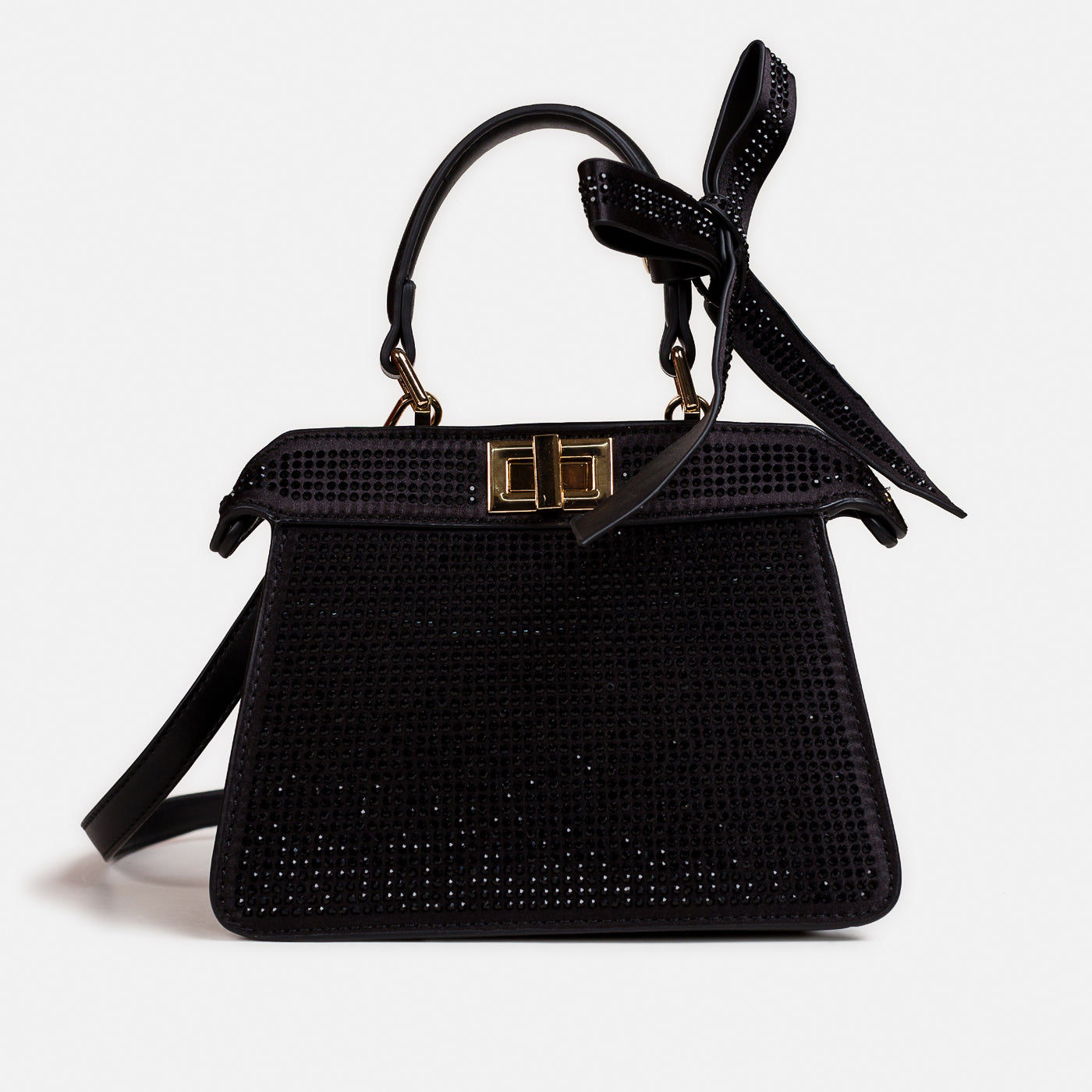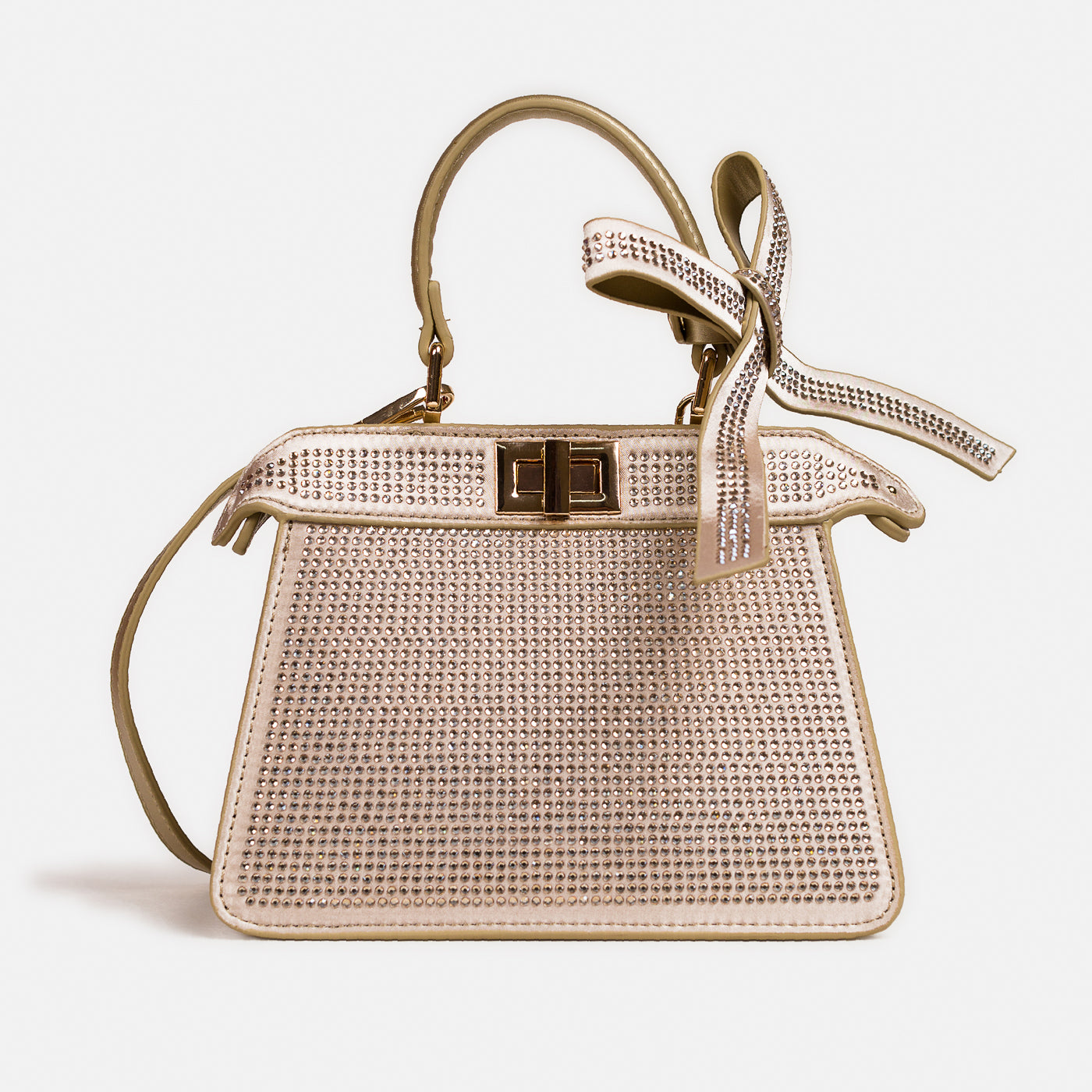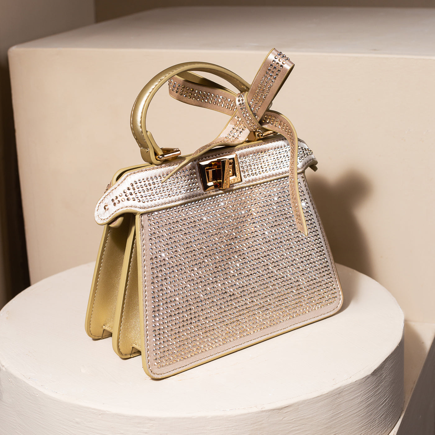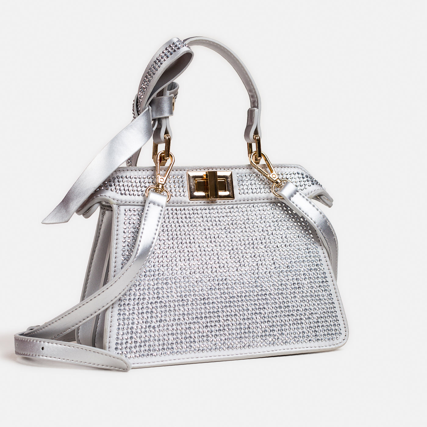 The Gleam & Grace Satchel embodies timeless elegance with a sparkling modern twist. Its structured frame is fully embellished with radiant crystals, creating a refined shimmer that instantly elevates any look. The standout bow accent along the handle adds a graceful charm, making it both feminine and sophisticated. Designed with versatility in mind, it features a classic top handle for a chic carry and a detachable strap for hands-free ease. The secure twist-lock closure and spacious interior ensure practicality without compromising style. Whether for festive evenings, weddings, or a glamorous night out, this satchel is your perfect companion to shine with confidence and grace.