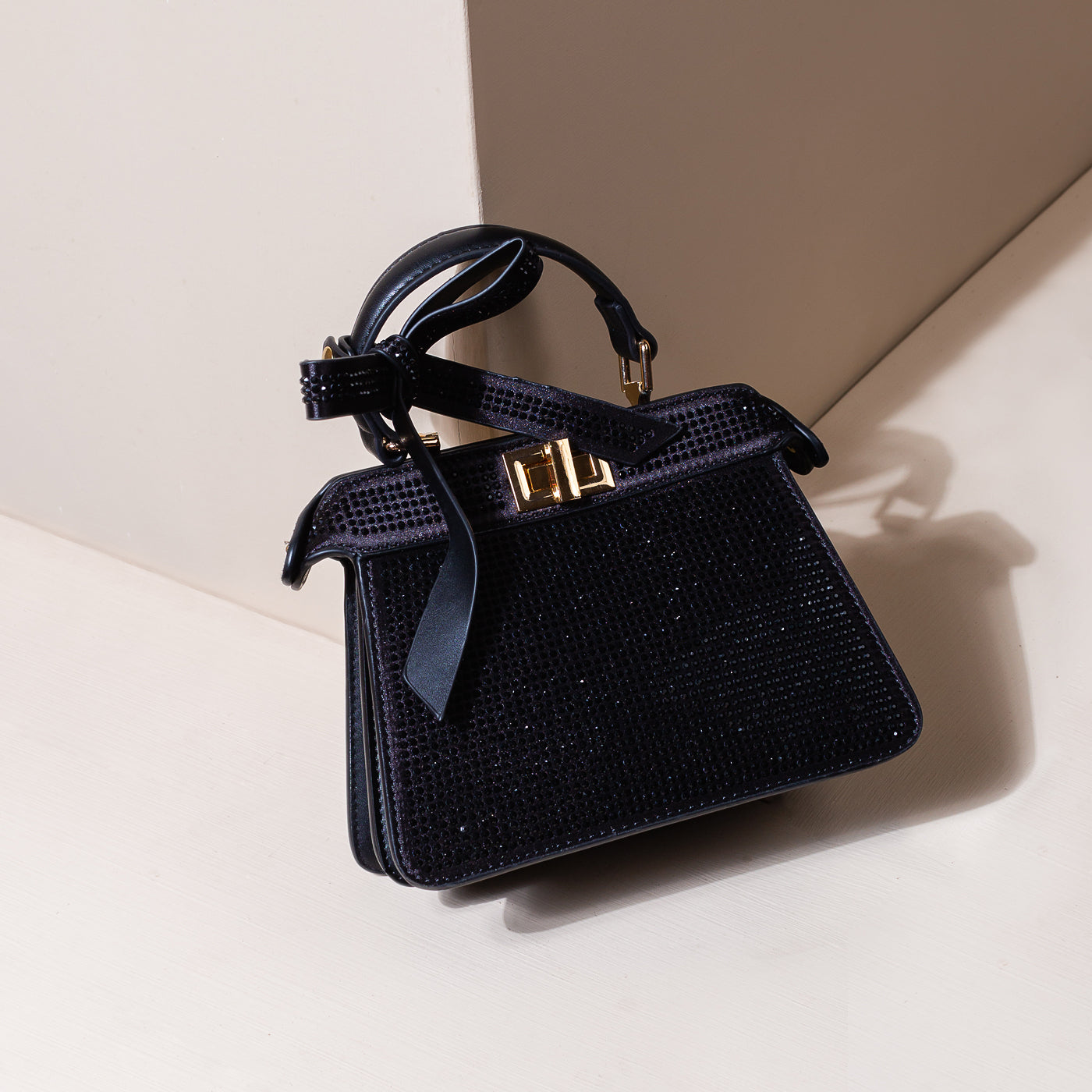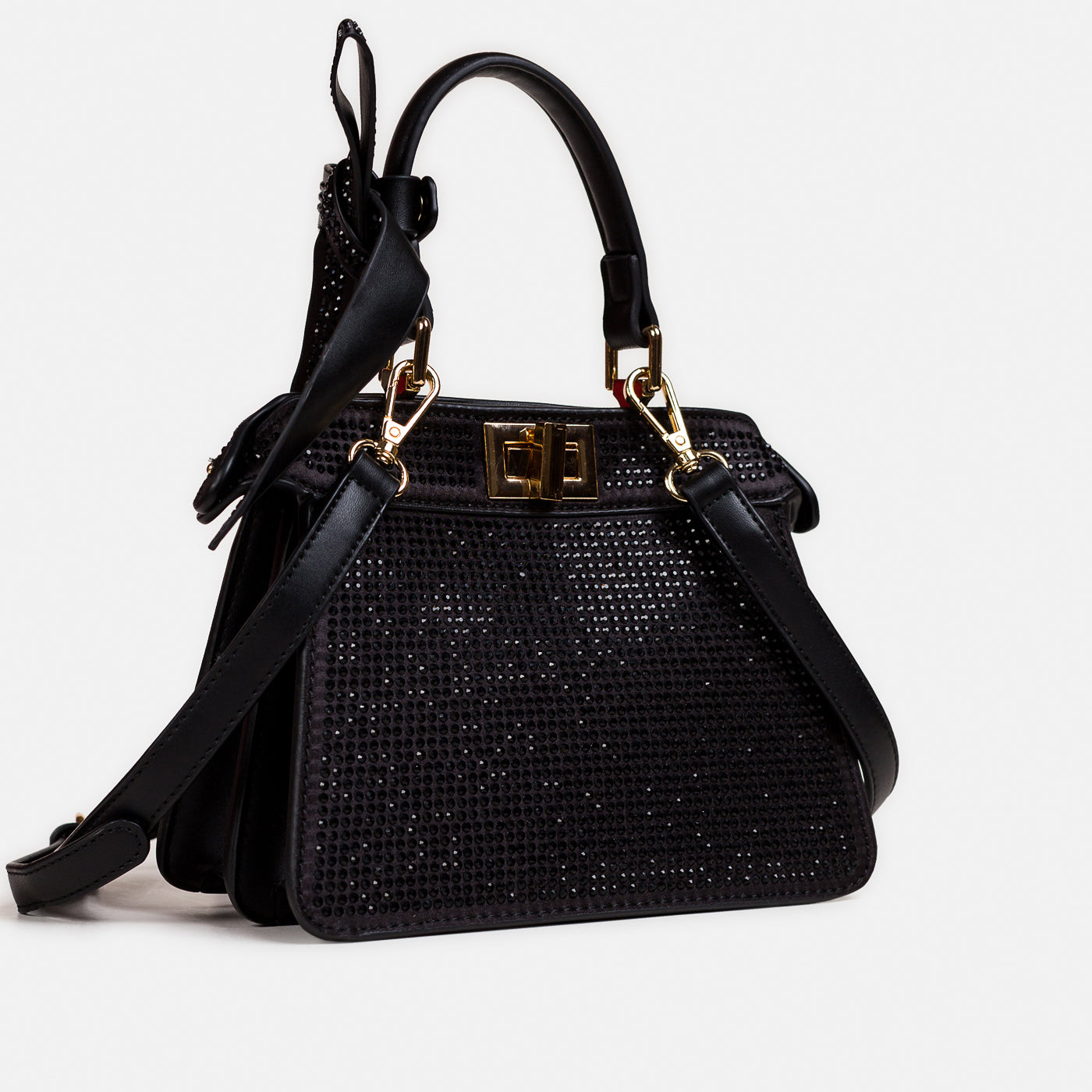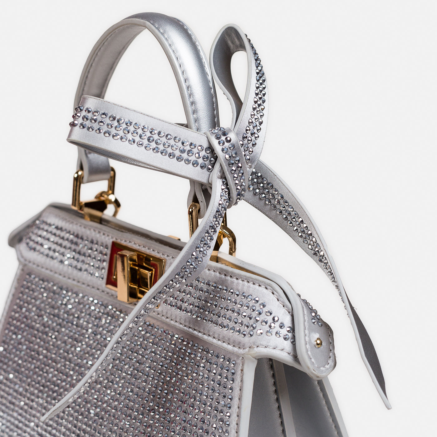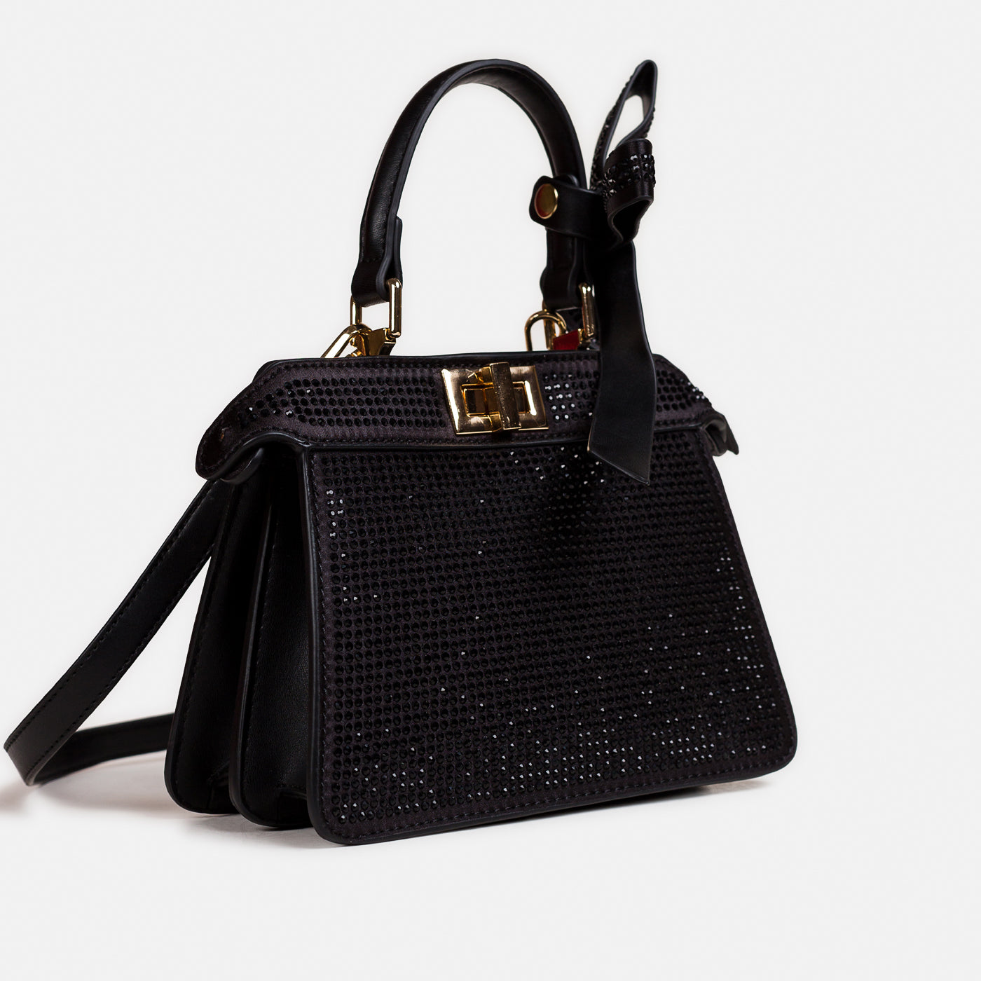 The Gleam & Grace Satchel embodies timeless elegance with a sparkling modern twist. Its structured frame is fully embellished with radiant crystals, creating a refined shimmer that instantly elevates any look. The standout bow accent along the handle adds a graceful charm, making it both feminine and sophisticated. Designed with versatility in mind, it features a classic top handle for a chic carry and a detachable strap for hands-free ease. The secure twist-lock closure and spacious interior ensure practicality without compromising style. Whether for festive evenings, weddings, or a glamorous night out, this satchel is your perfect companion to shine with confidence and grace.