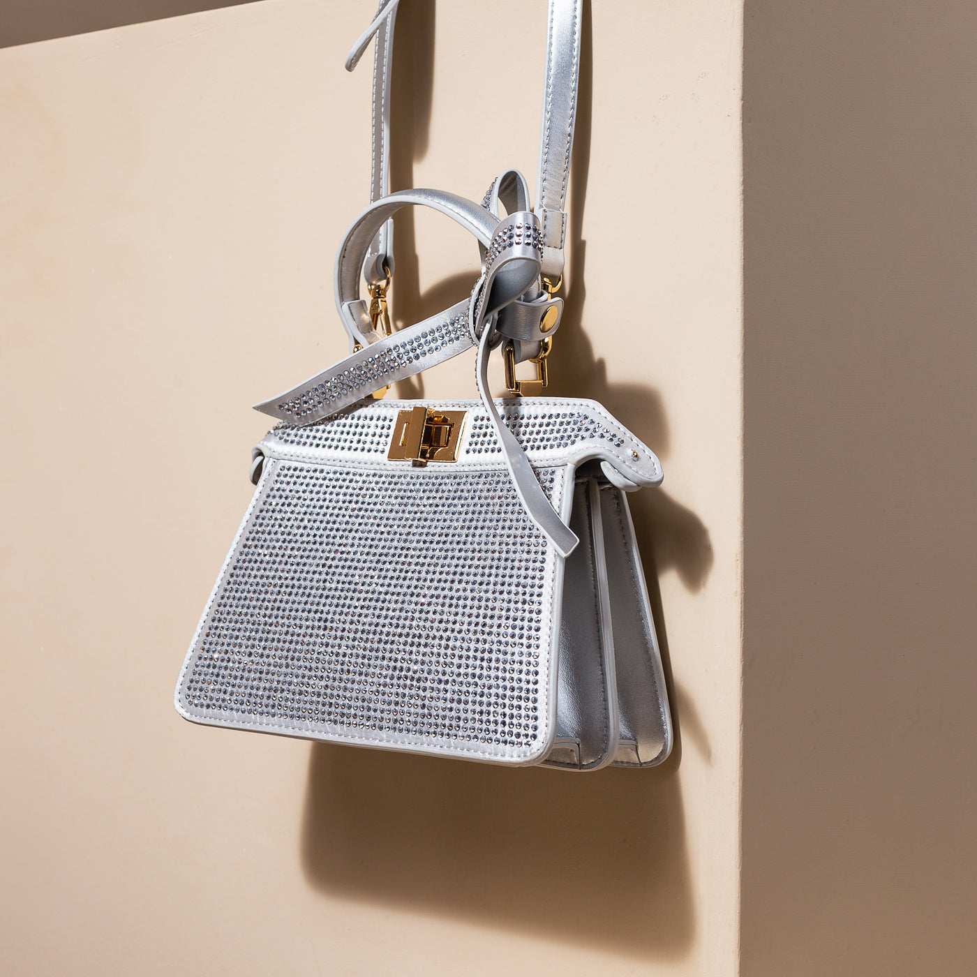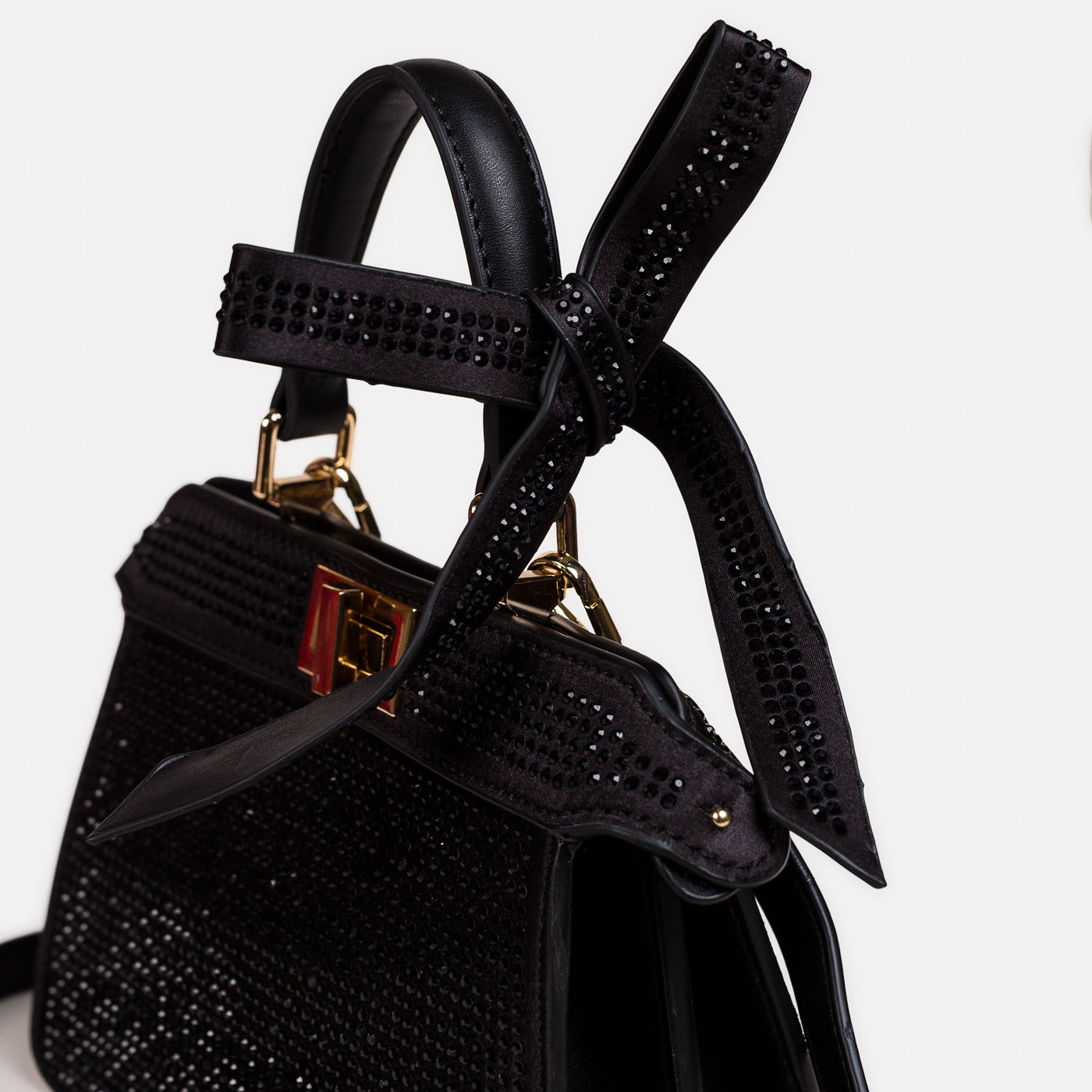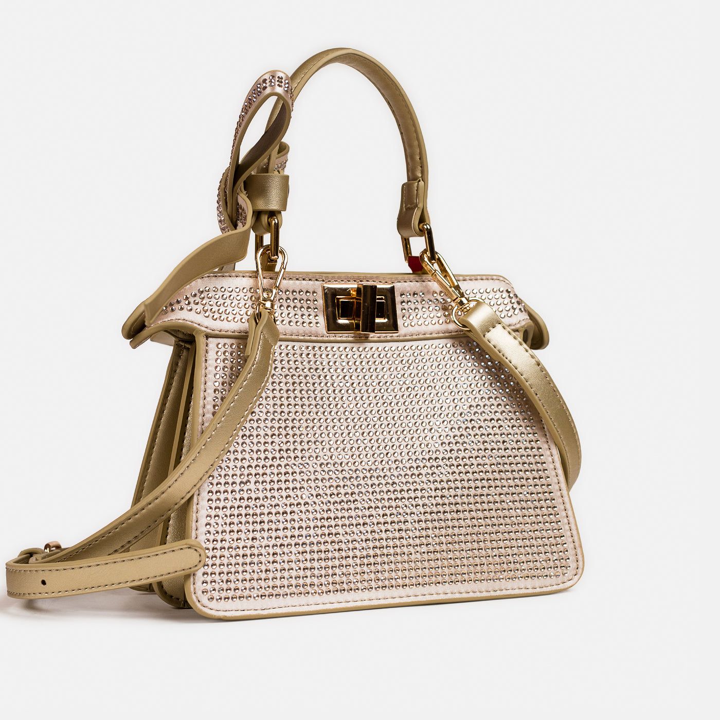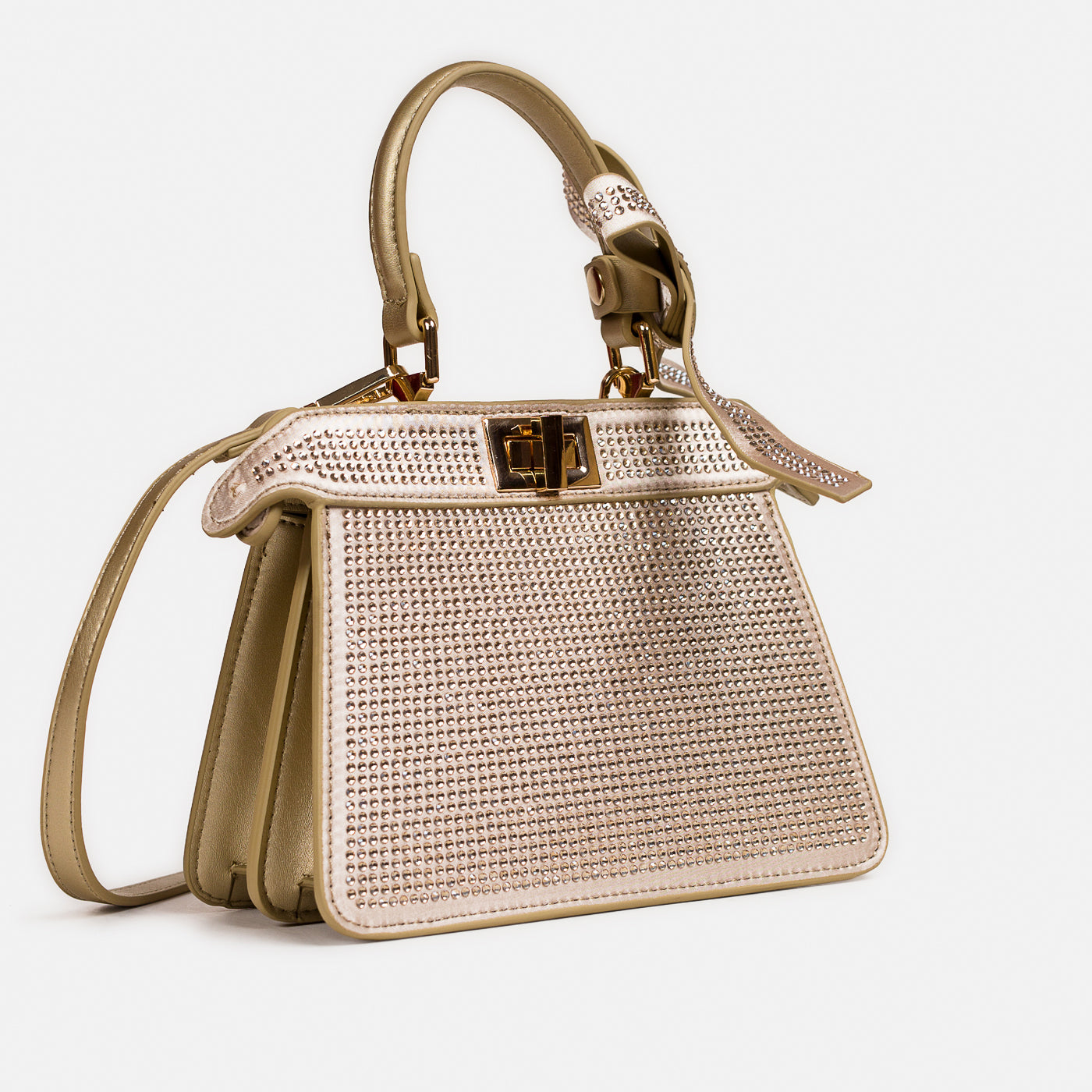 The Gleam & Grace Satchel embodies timeless elegance with a sparkling modern twist. Its structured frame is fully embellished with radiant crystals, creating a refined shimmer that instantly elevates any look. The standout bow accent along the handle adds a graceful charm, making it both feminine and sophisticated. Designed with versatility in mind, it features a classic top handle for a chic carry and a detachable strap for hands-free ease. The secure twist-lock closure and spacious interior ensure practicality without compromising style. Whether for festive evenings, weddings, or a glamorous night out, this satchel is your perfect companion to shine with confidence and grace.